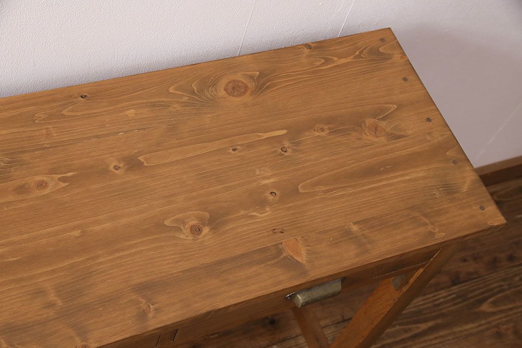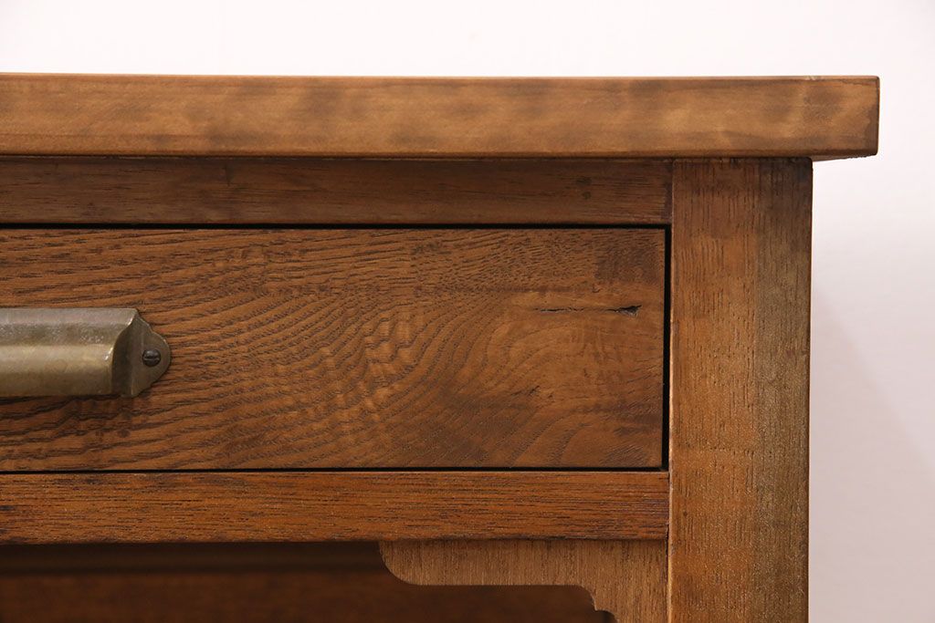 テーブル> サイドテーブル > 和製アンティーク 天板・ヒノキ無垢材 木の味わいを存分に感じられるリメイク作業台(コンソールテーブル、カウンター、引き出し)(R-049412)
