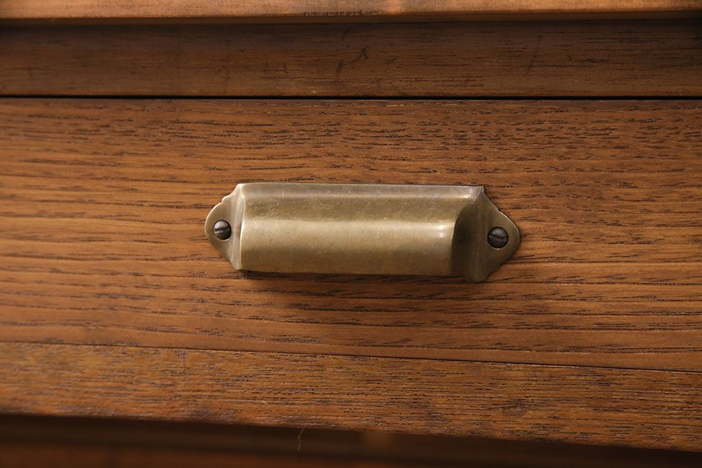 テーブル> カウンターテーブル > 和製アンティーク 天板・ヒノキ無垢材 木の味わいを存分に感じられるリメイク作業台(コンソールテーブル、カウンター、引き出し)(R-049412)