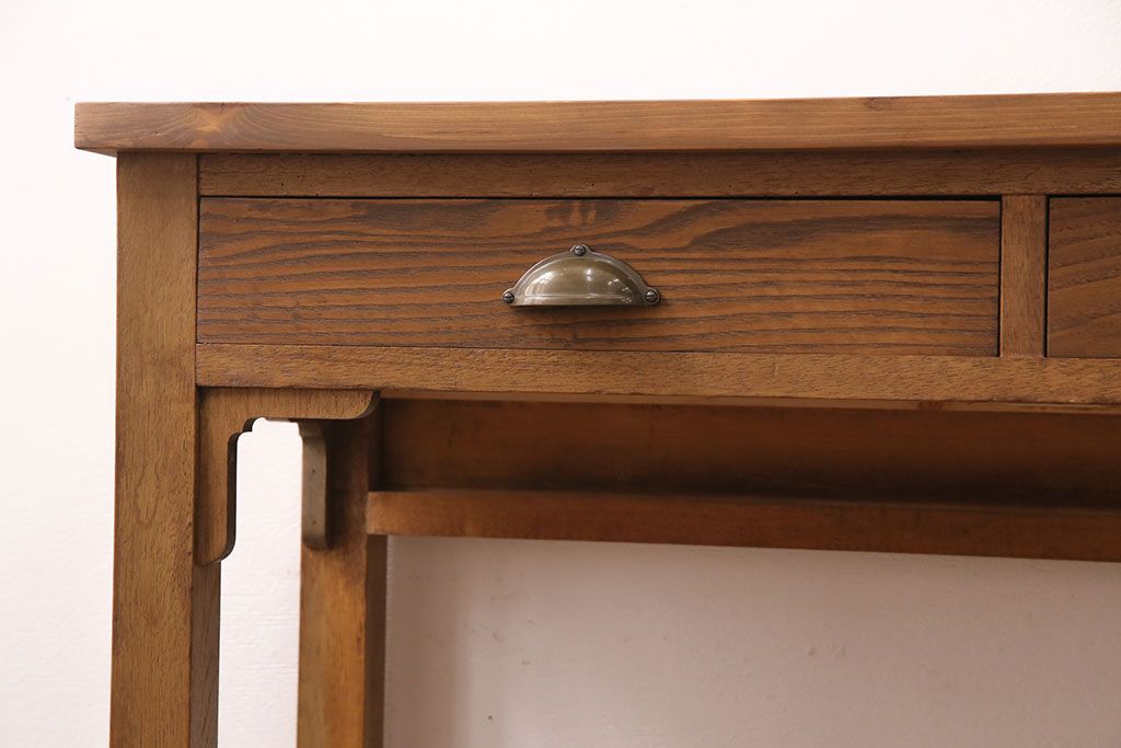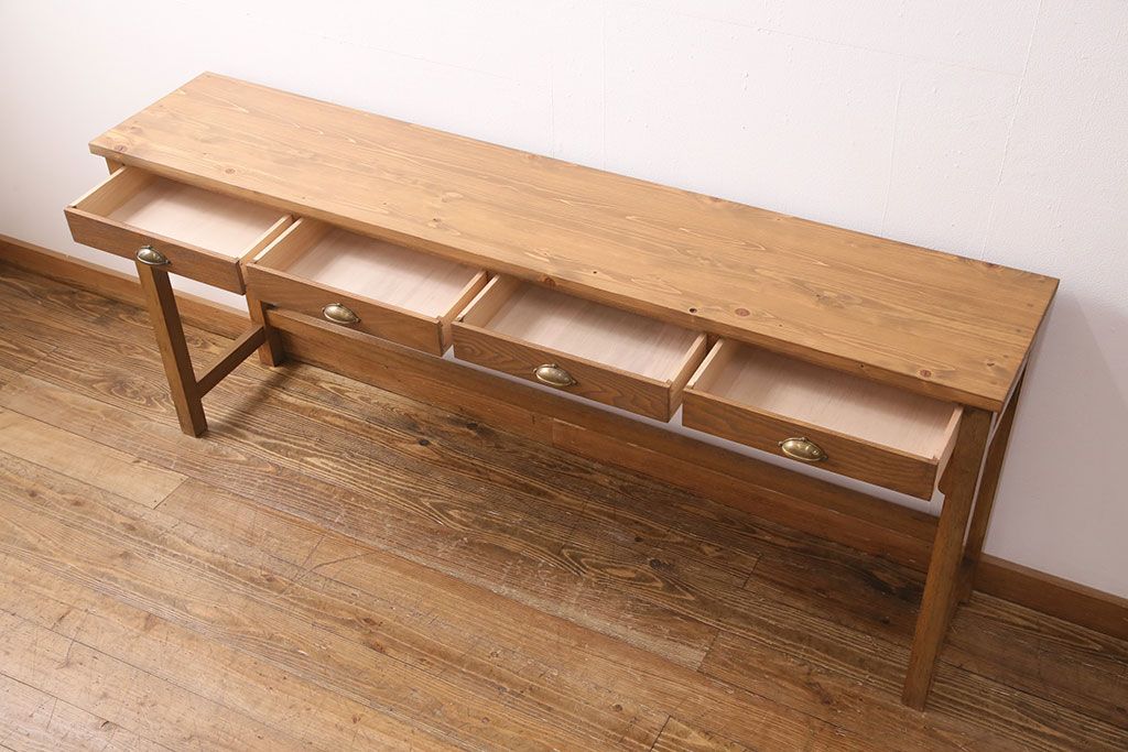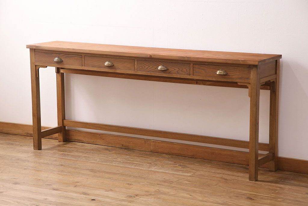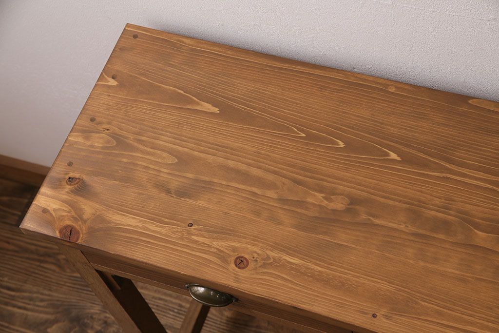 テーブル> コンソールテーブル > 和製アンティーク 天板・ヒノキ無垢材 ナチュラルスタイルにおすすめ!使い勝手の良いリメイク作業台(コンソールテーブル、カウンター、引き出し)(R-049413)
