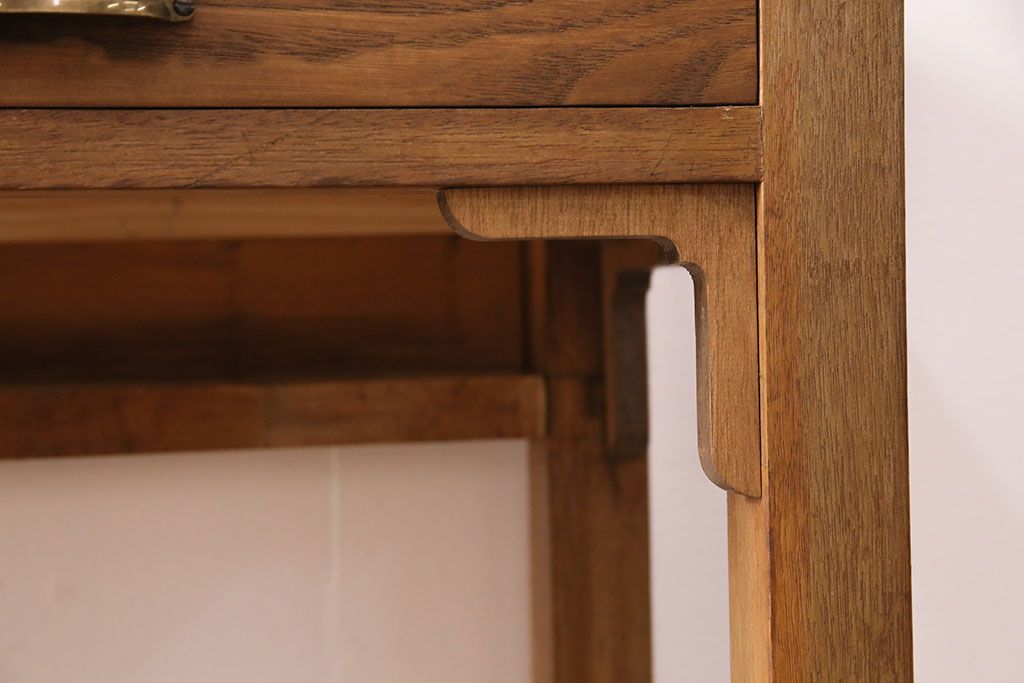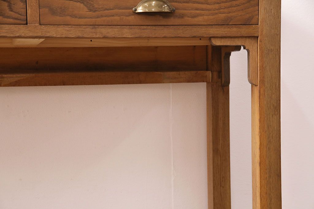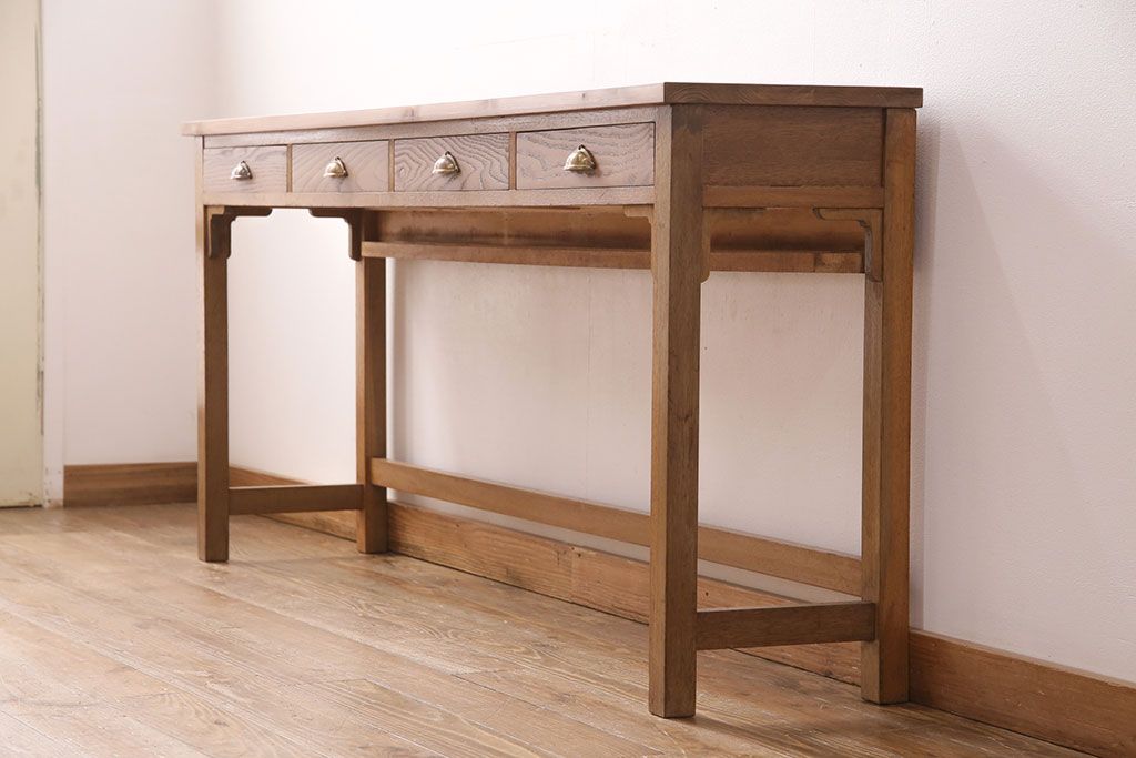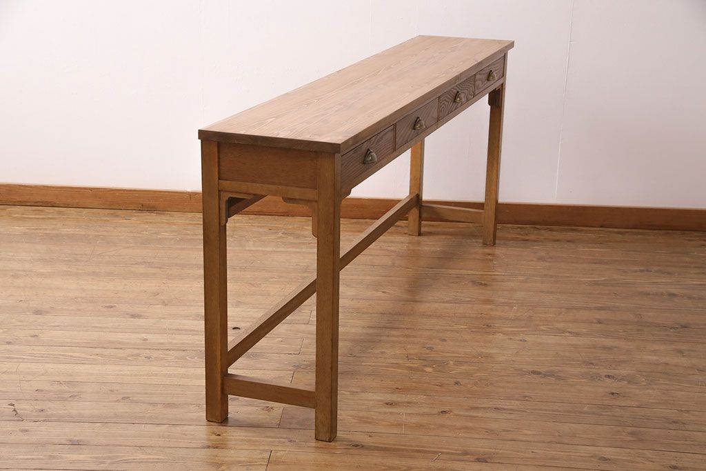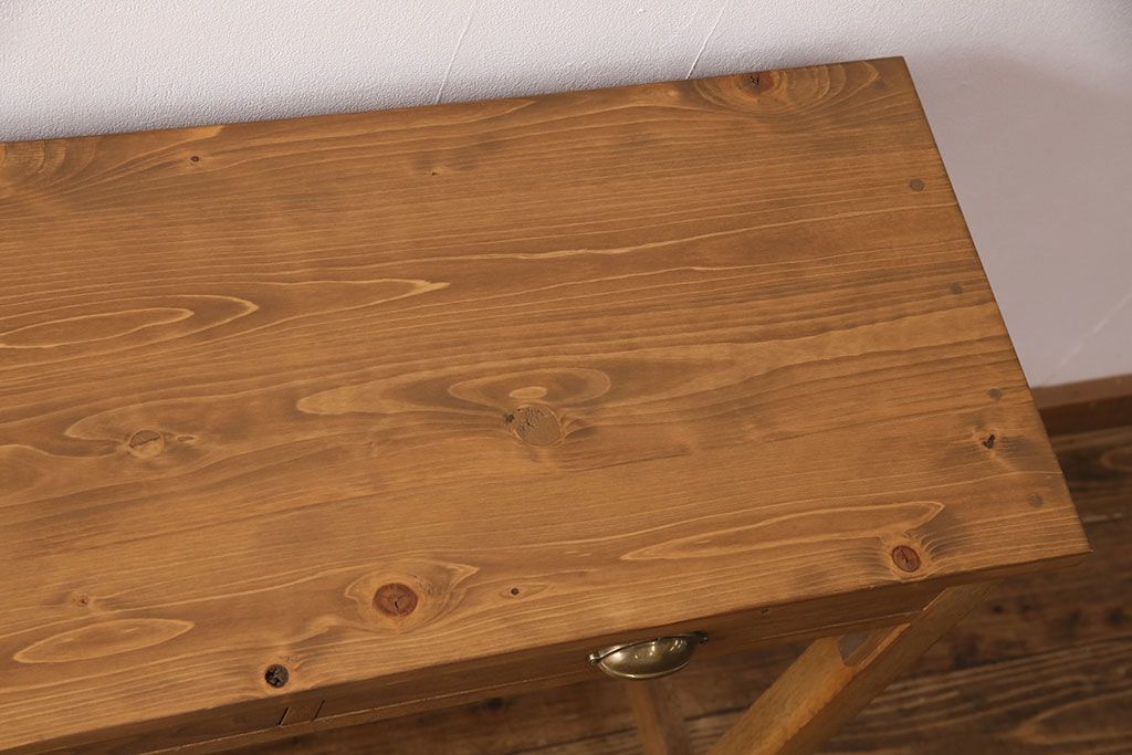 テーブル> コンソールテーブル > 和製アンティーク 天板・ヒノキ無垢材 ナチュラルスタイルにおすすめ!使い勝手の良いリメイク作業台(コンソールテーブル、カウンター、引き出し)(R-049413)