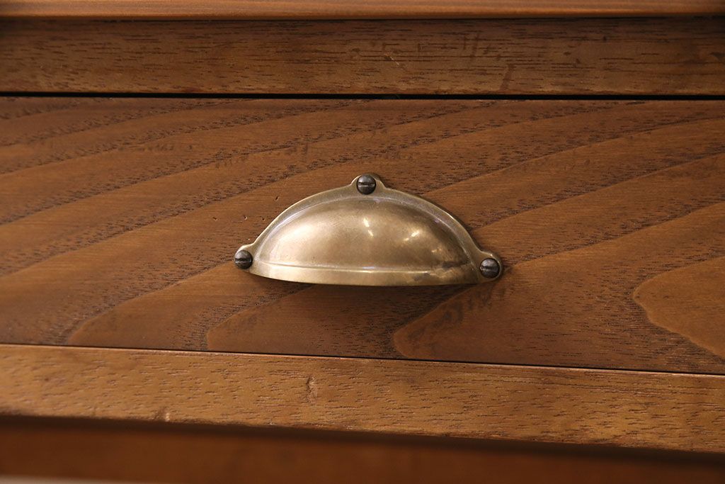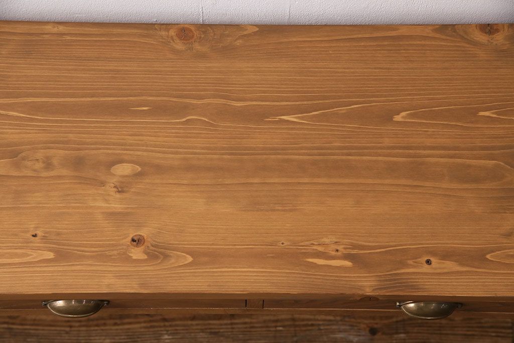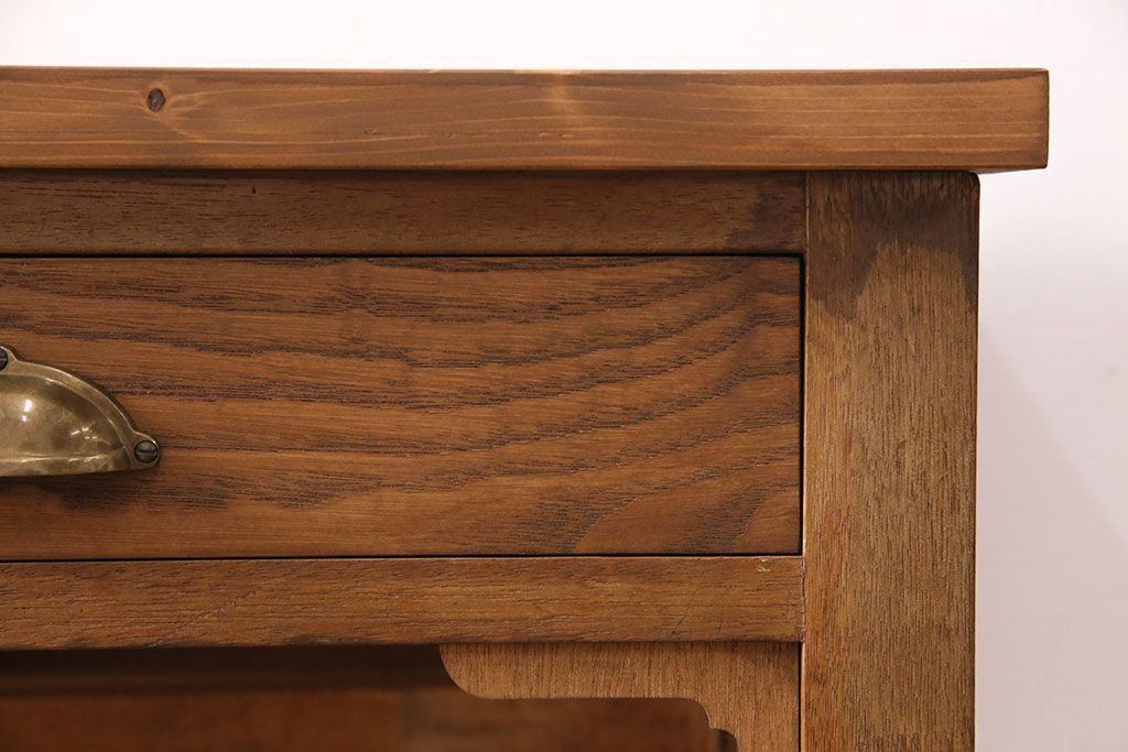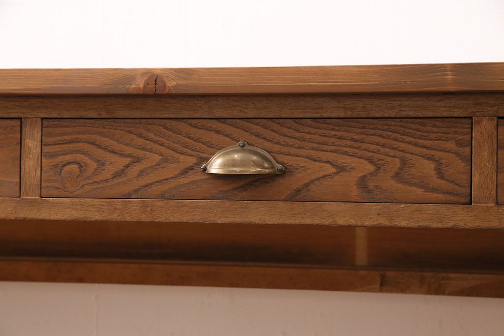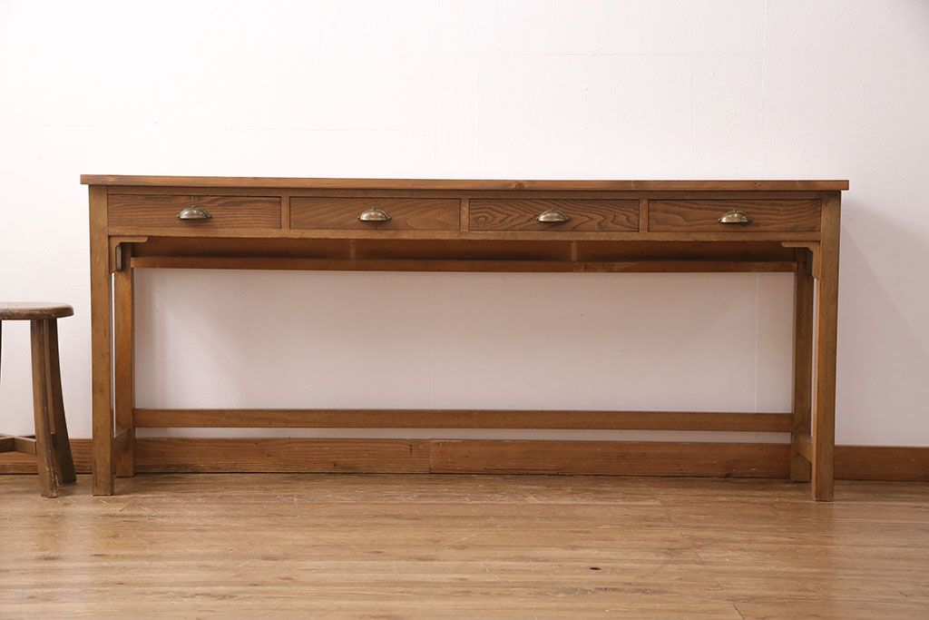 テーブル> カウンターテーブル > 和製アンティーク 天板・ヒノキ無垢材 ナチュラルスタイルにおすすめ!使い勝手の良いリメイク作業台(コンソールテーブル、カウンター、引き出し)(R-049413)
