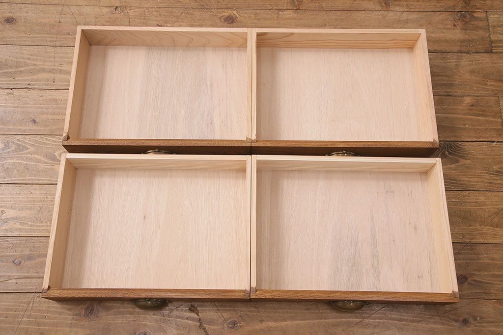 和製アンティーク 天板・ヒノキ無垢材 ナチュラルスタイルにおすすめ!使い勝手の良いリメイク作業台(コンソールテーブル、カウンター、引き出し)(R-049413)