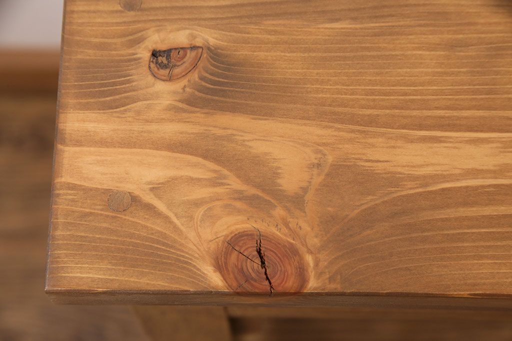 テーブル> 作業台 > 和製アンティーク 天板・ヒノキ無垢材 ナチュラルスタイルにおすすめ!使い勝手の良いリメイク作業台(コンソールテーブル、カウンター、引き出し)(R-049413)