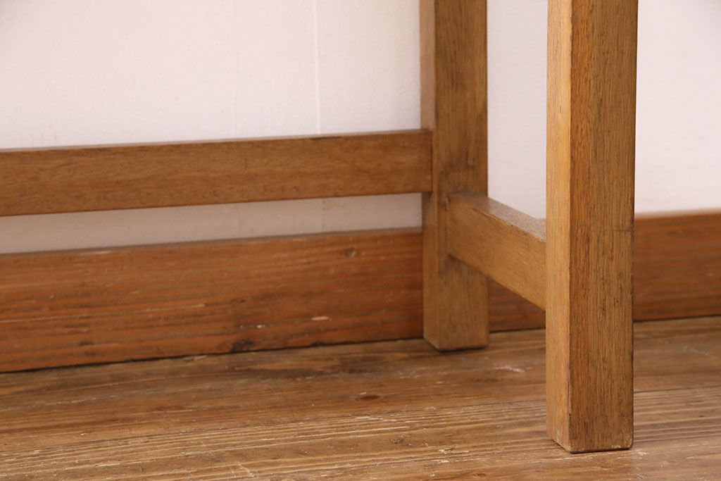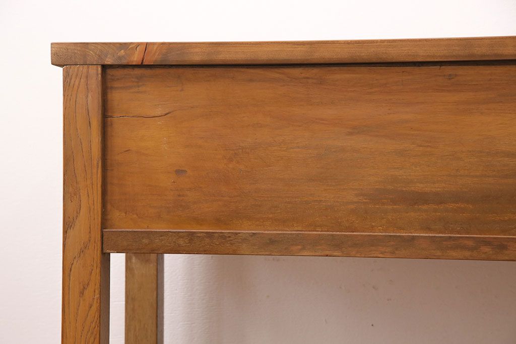 テーブル> サイドテーブル > 和製アンティーク 天板・ヒノキ無垢材 ナチュラルスタイルにおすすめ!使い勝手の良いリメイク作業台(コンソールテーブル、カウンター、引き出し)(R-049413)