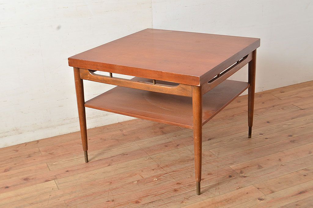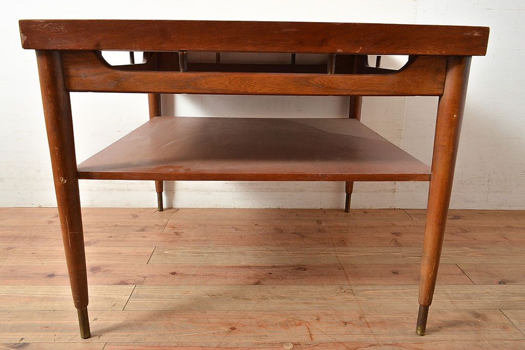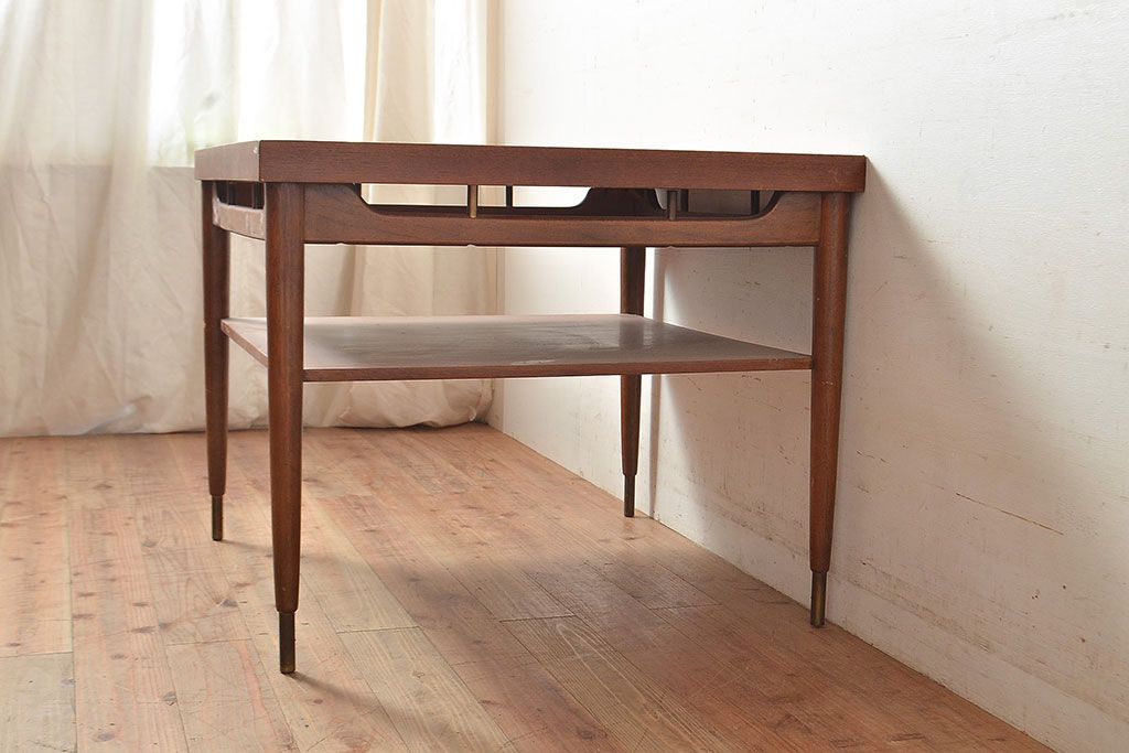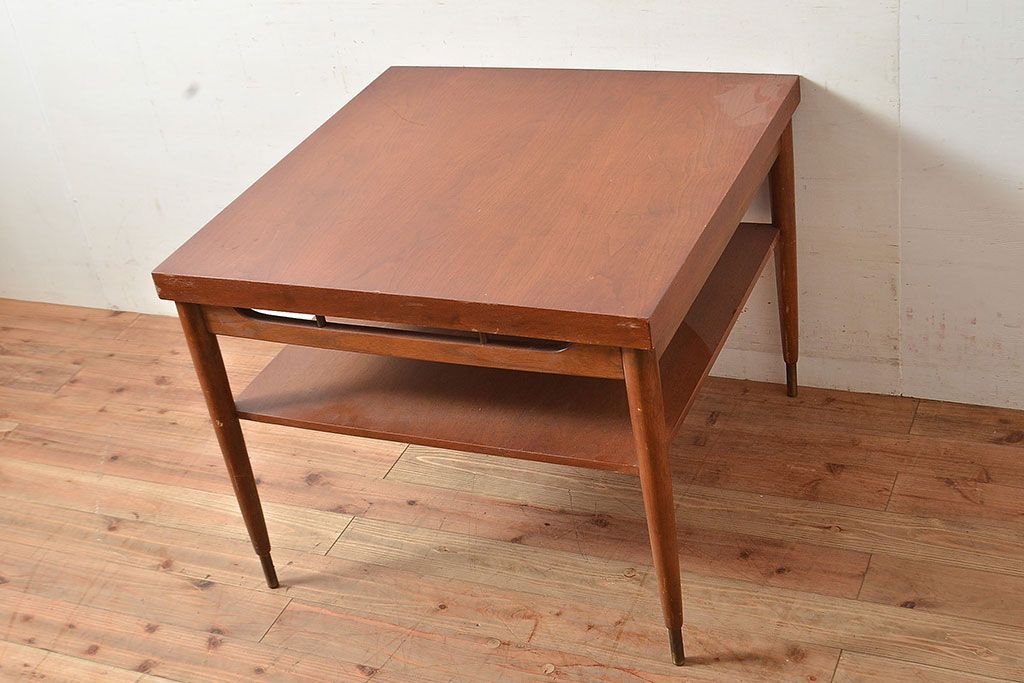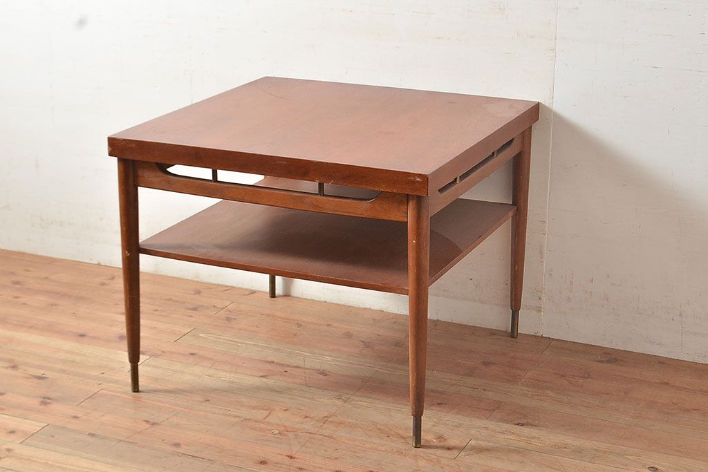 テーブル> カフェテーブル・コーヒーテーブル > アメリカヴィンテージ 荷物が置ける棚付き! 洗練されたデザインのチーク材製ダイニングテーブル(2人掛け、サイドテーブル、スクエアテーブル、カフェテーブル、コーヒーテーブル、ビンテージ)(R-048279)