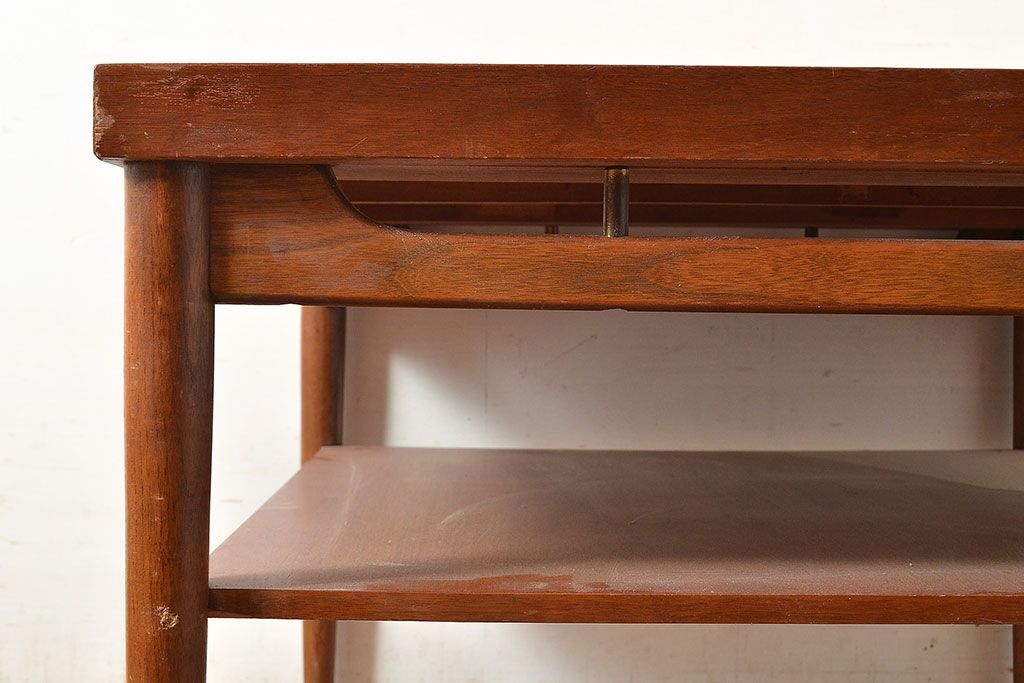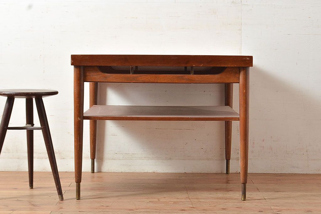 テーブル> サイドテーブル > アメリカヴィンテージ 荷物が置ける棚付き! 洗練されたデザインのチーク材製ダイニングテーブル(2人掛け、サイドテーブル、スクエアテーブル、カフェテーブル、コーヒーテーブル、ビンテージ)(R-048279)