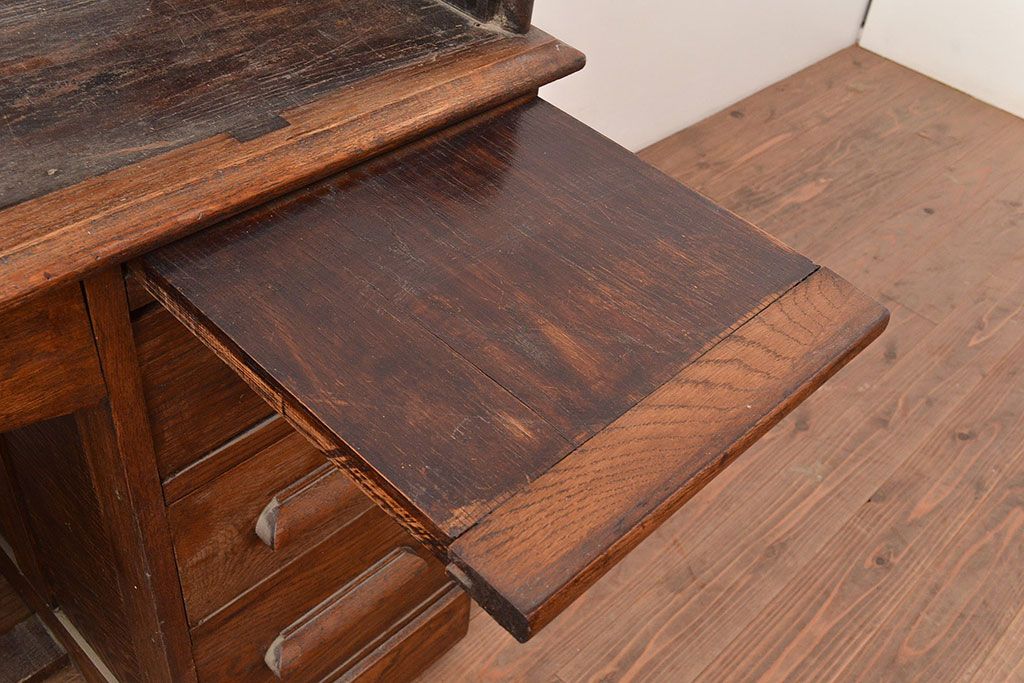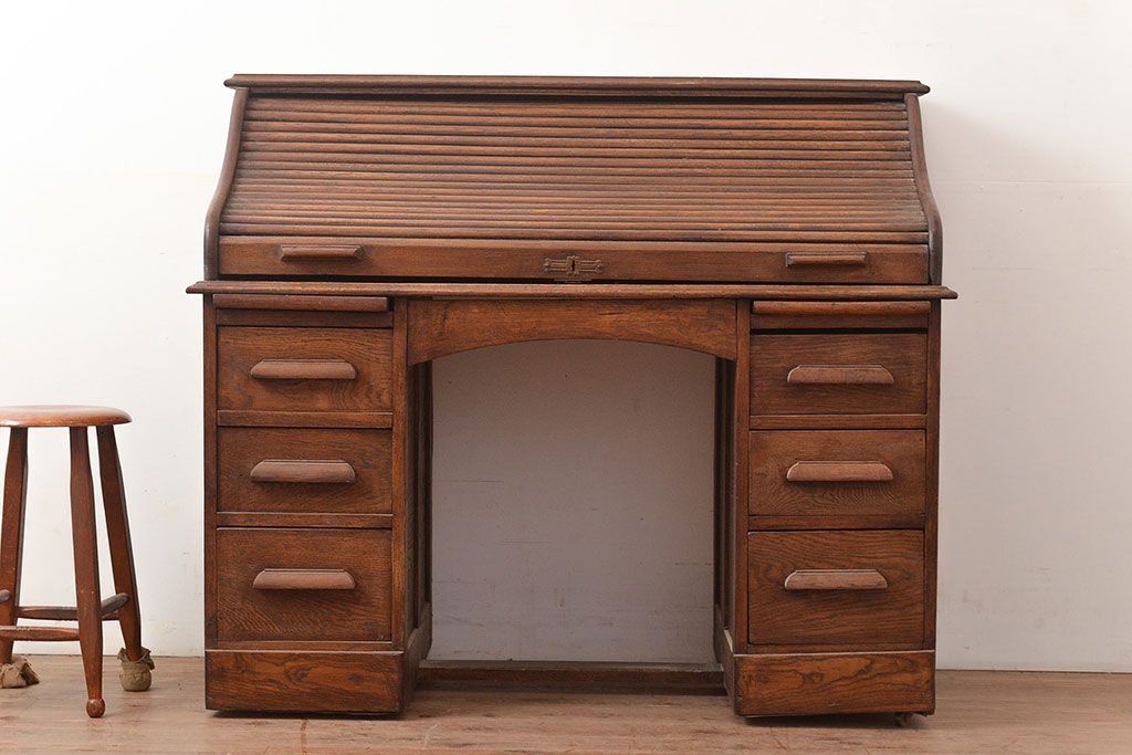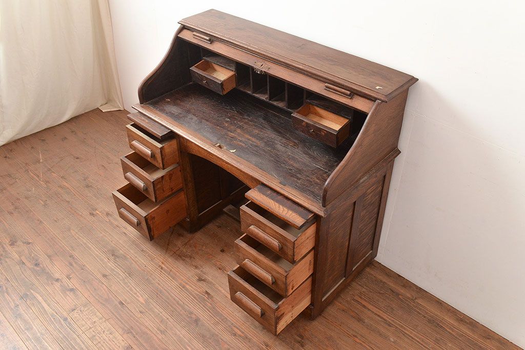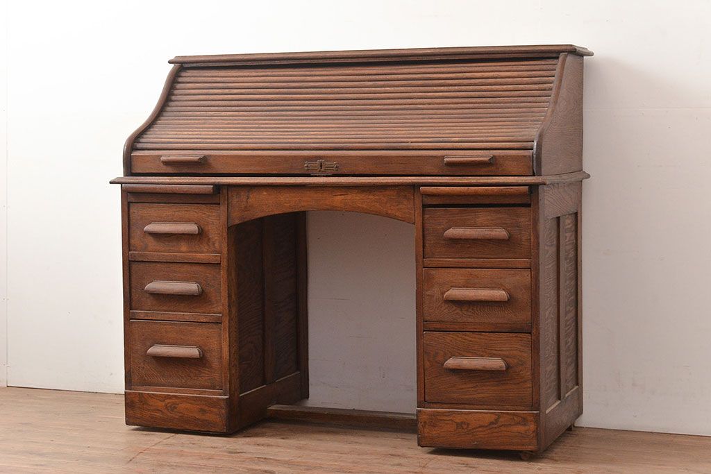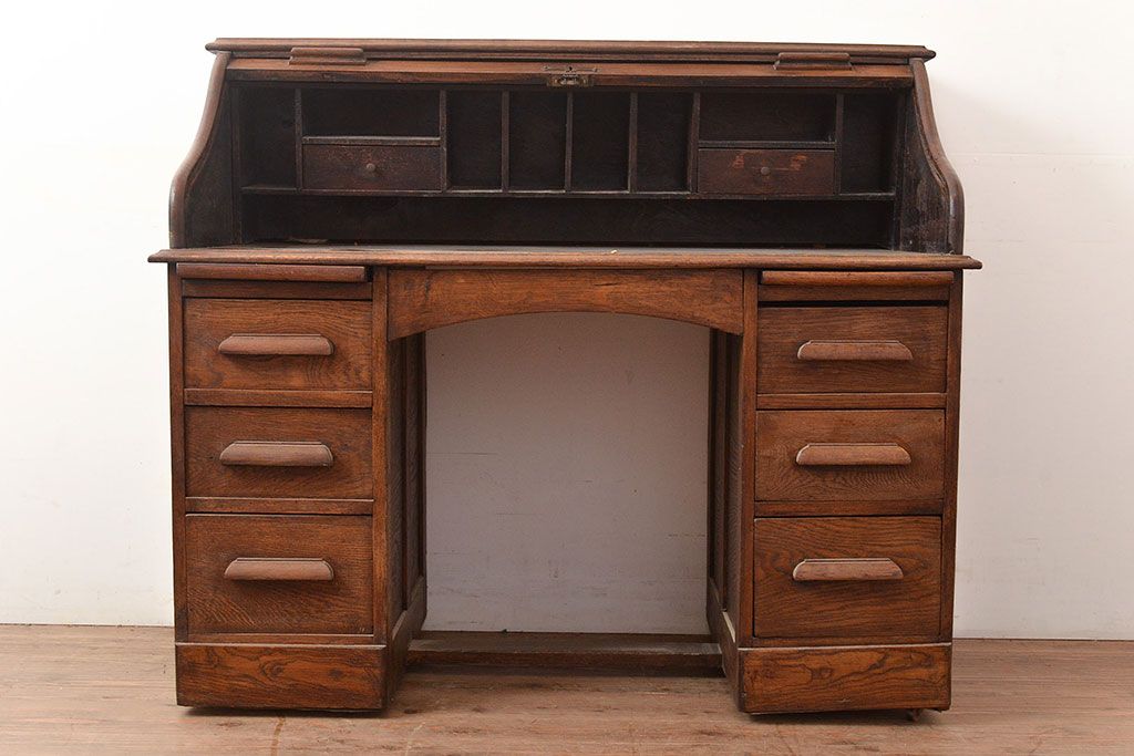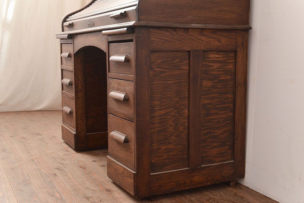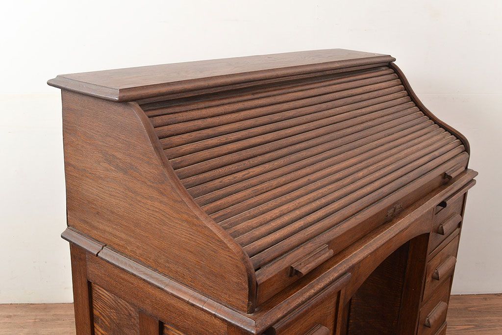 ラフジュ工房> デスク> ロールトップデスク > イギリスアンティーク オーク材の深みのある木色が素敵なロールトップデスク(机、在宅ワーク、在宅用両袖机、在宅ワーク、在宅用ワークデスク)(R-047963)