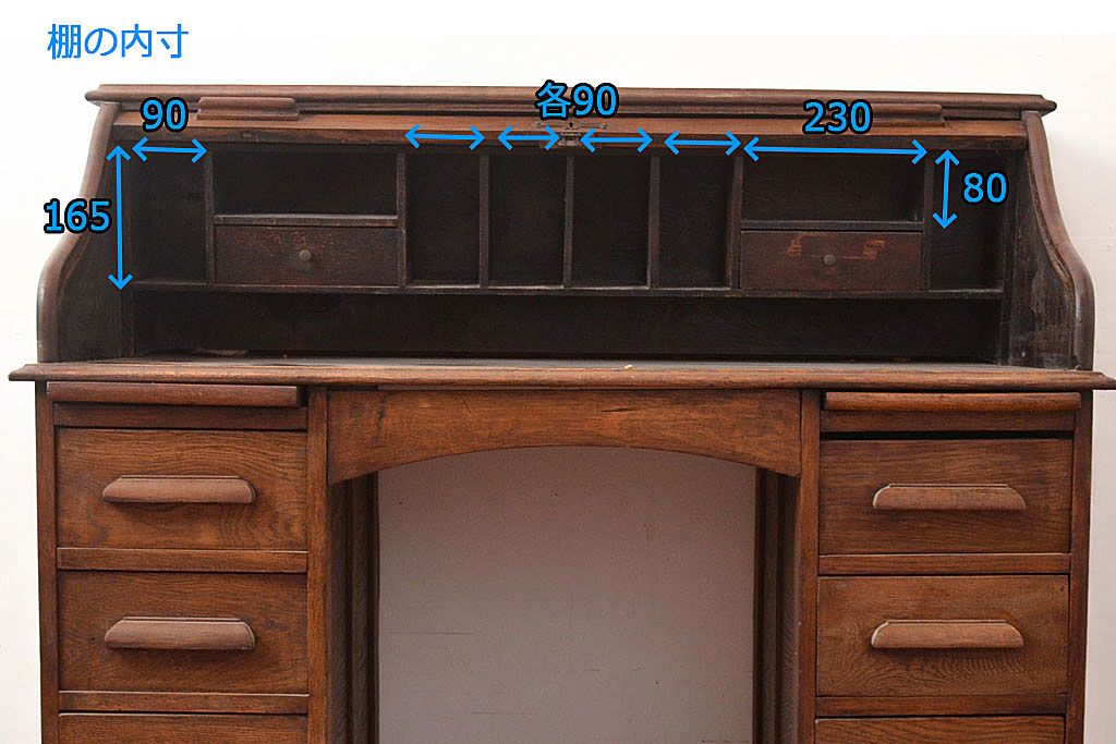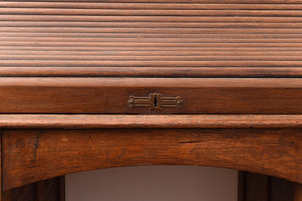 ラフジュ工房> デスク> ワークデスク > イギリスアンティーク オーク材の深みのある木色が素敵なロールトップデスク(机、在宅ワーク、在宅用両袖机、在宅ワーク、在宅用ワークデスク)(R-047963)