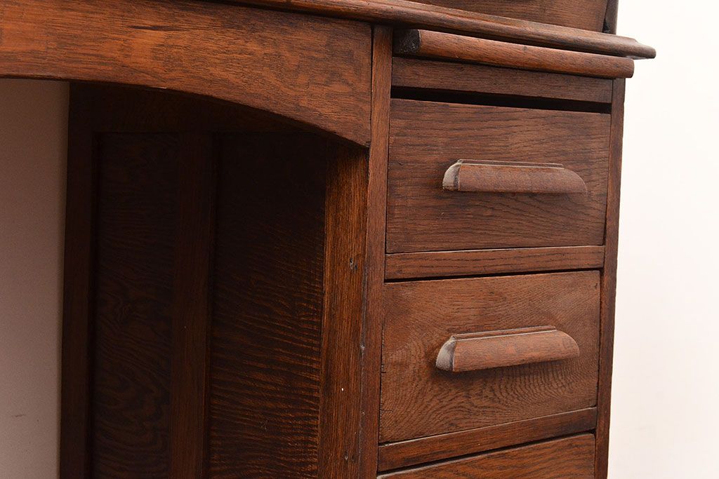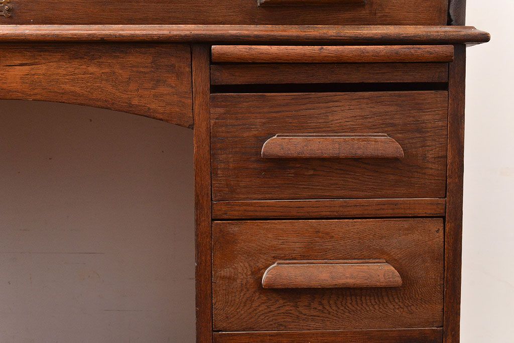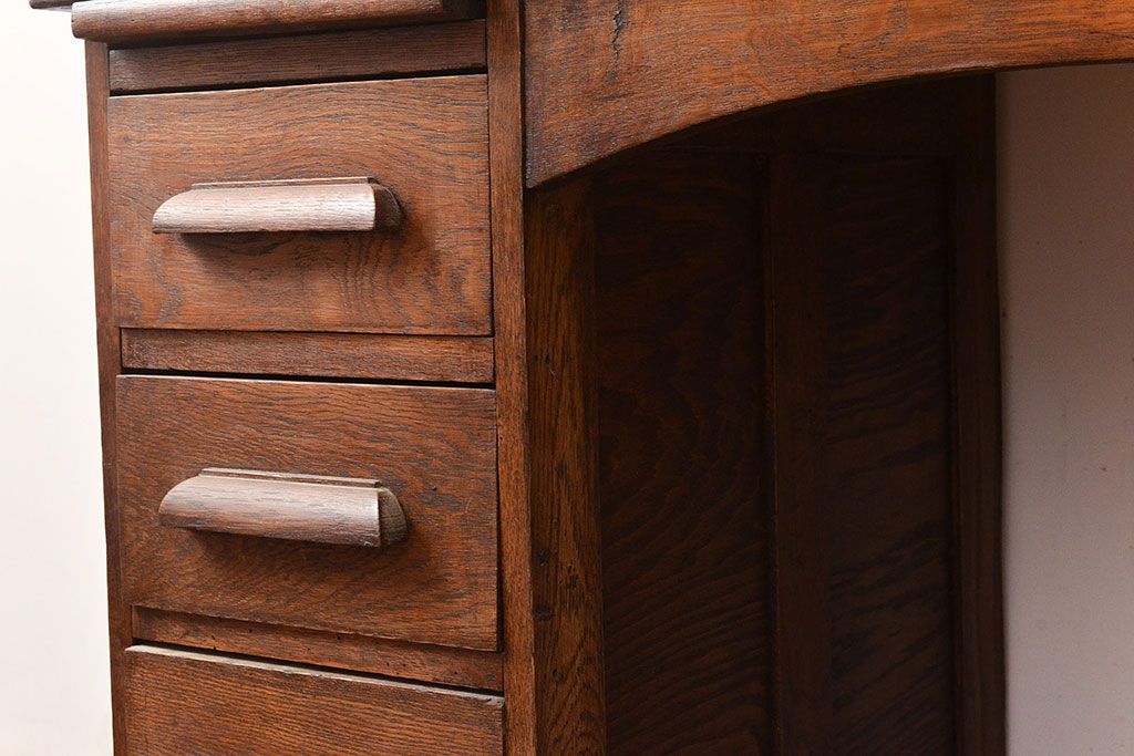 イギリスアンティーク オーク材の深みのある木色が素敵なロールトップデスク(机、在宅ワーク、在宅用両袖机、在宅ワーク、在宅用ワークデスク)(R-047963)
