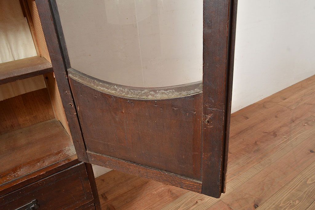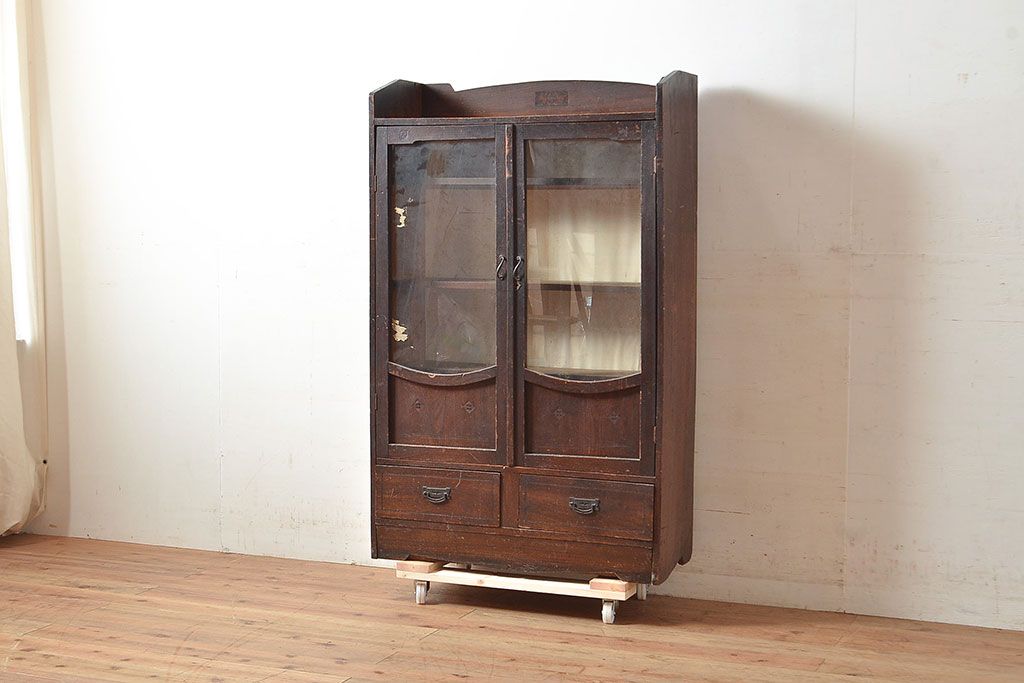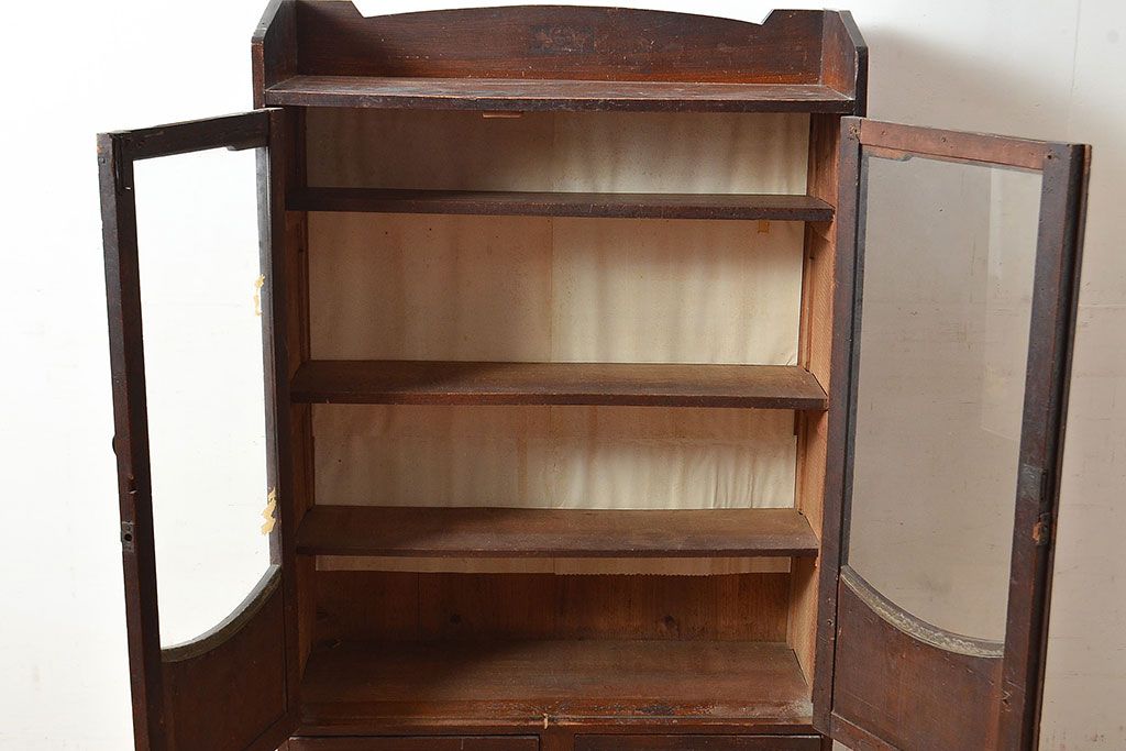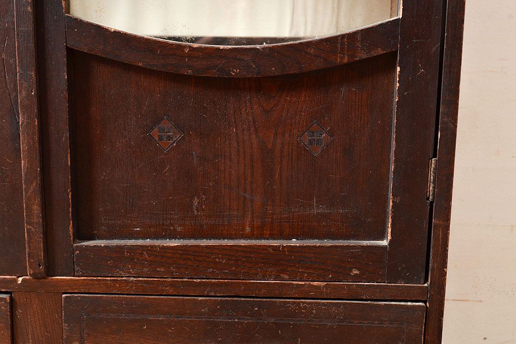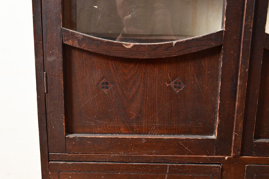 キャビネット・戸棚> 本箱 > 和製アンティーク 栓材製 大正ロマンやレトロスタイルに!扉のデザインと象嵌細工がお洒落な戸棚(収納棚、本箱、ブックケース)(R-048184)