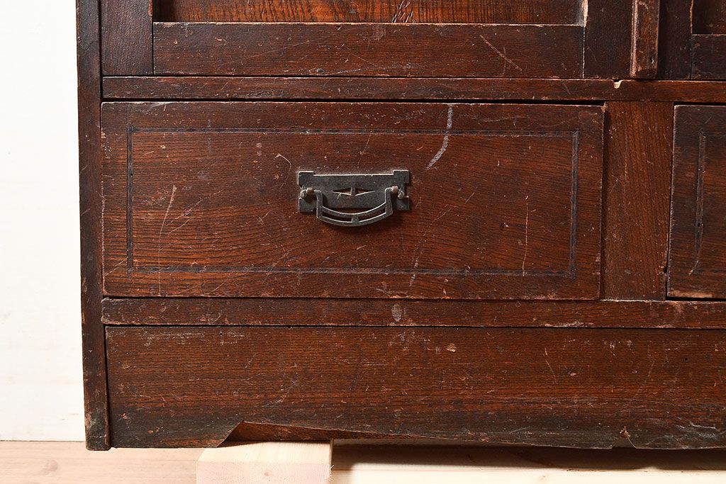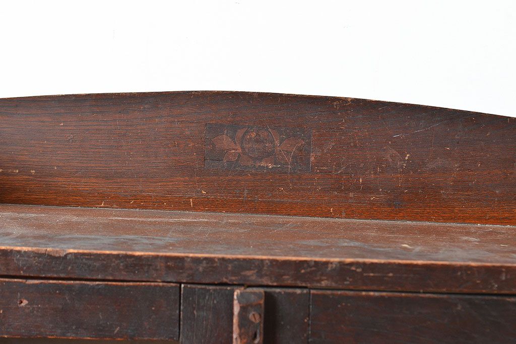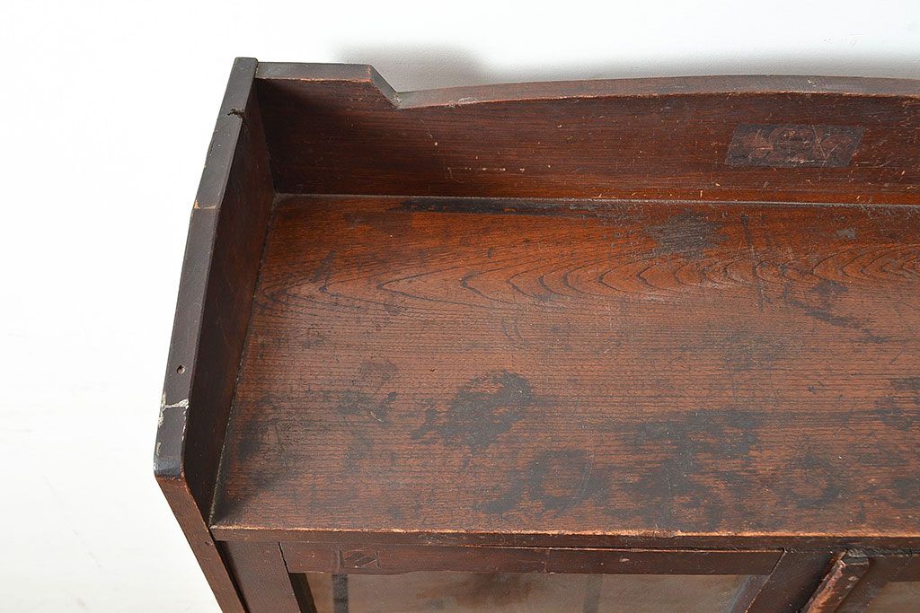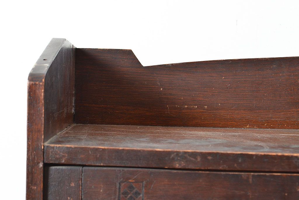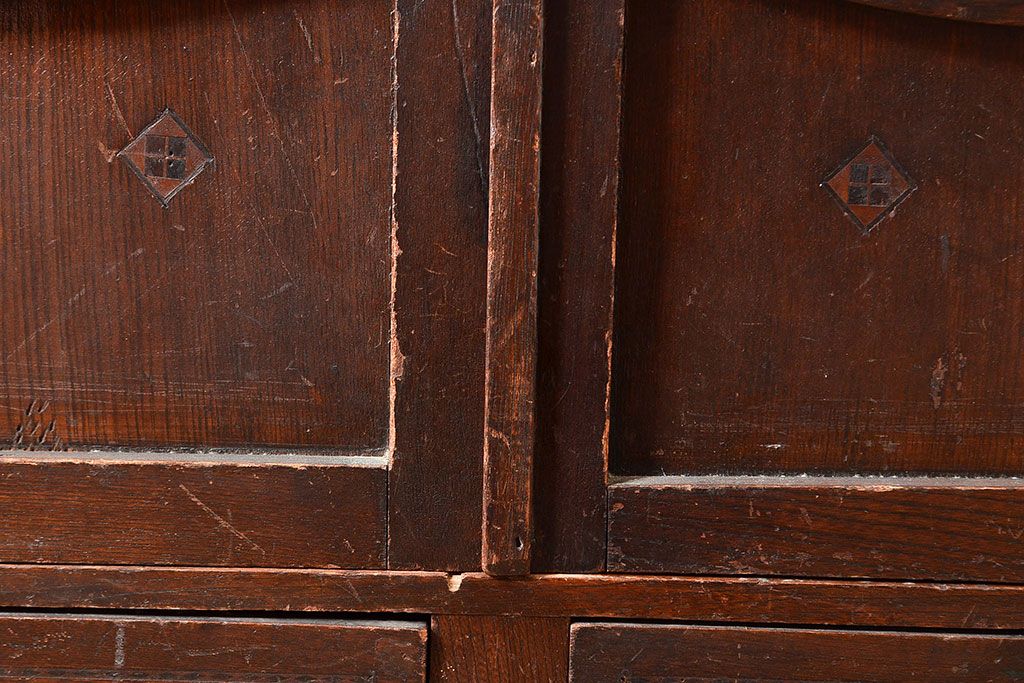 キャビネット・戸棚> 本箱 > 和製アンティーク 栓材製 大正ロマンやレトロスタイルに!扉のデザインと象嵌細工がお洒落な戸棚(収納棚、本箱、ブックケース)(R-048184)