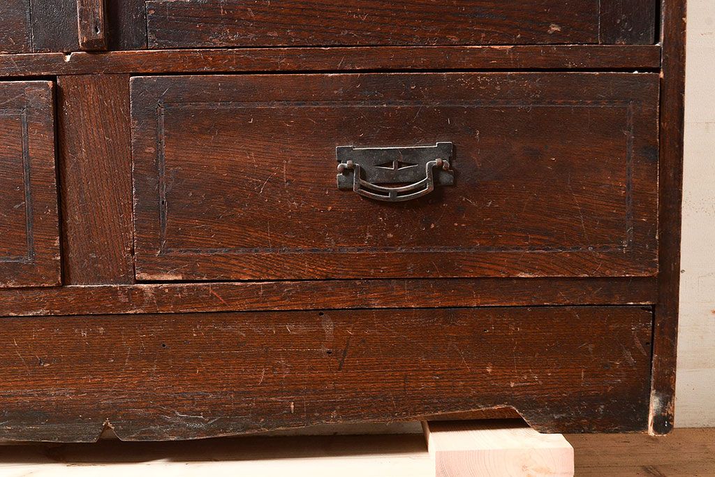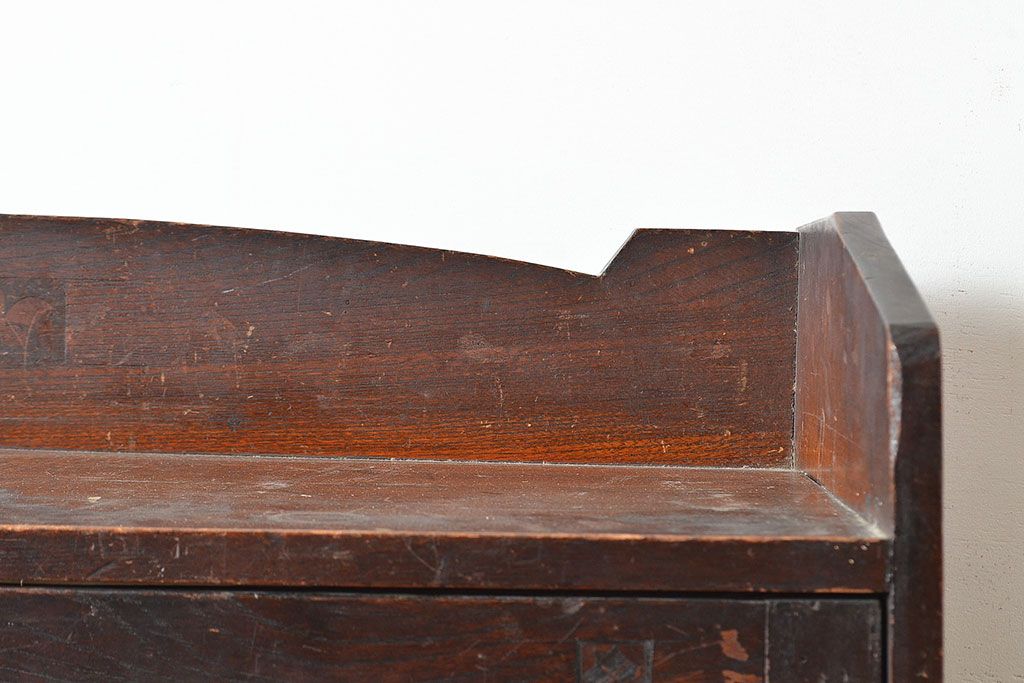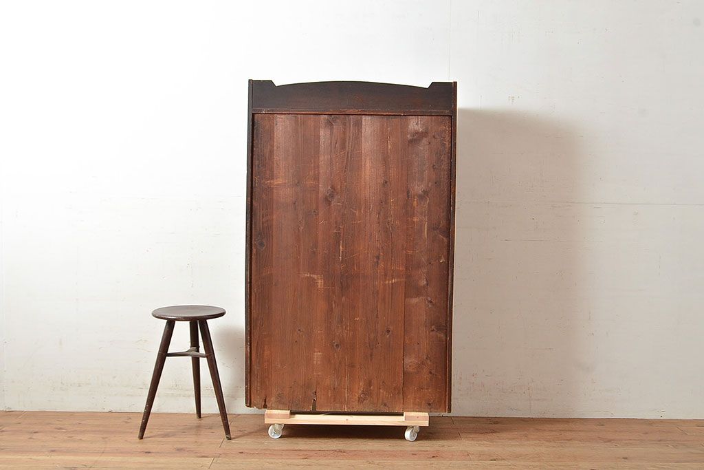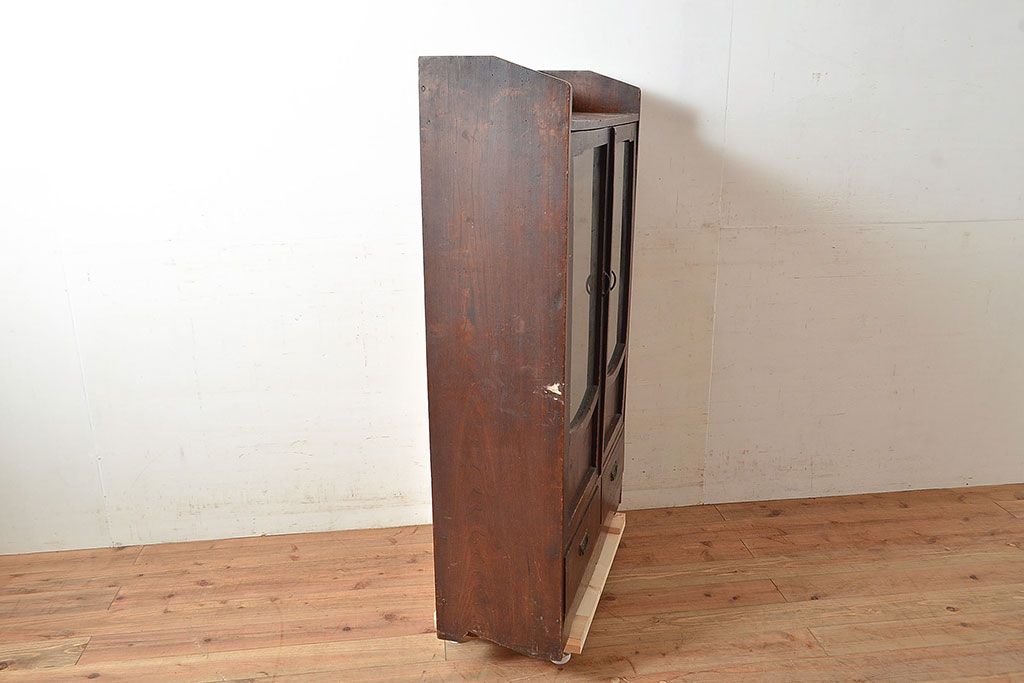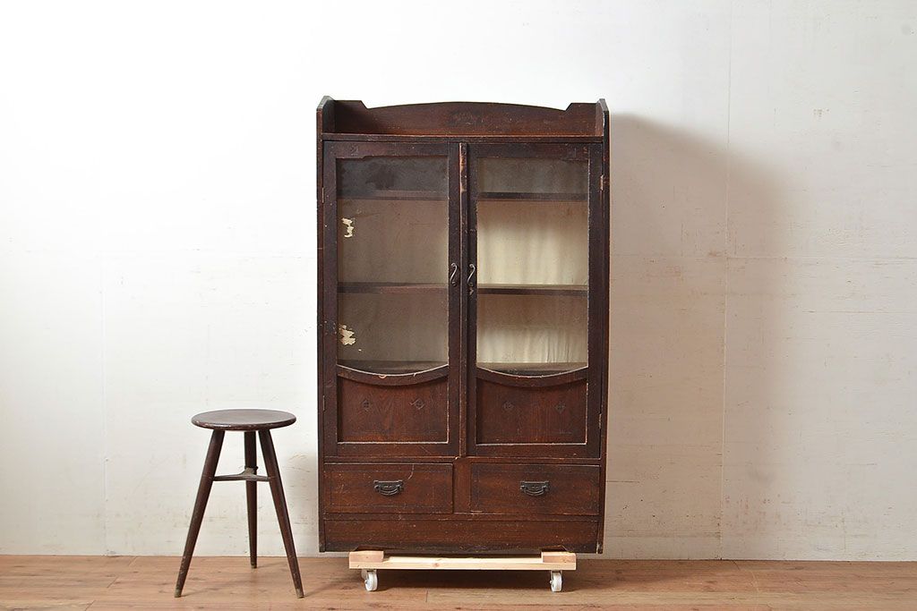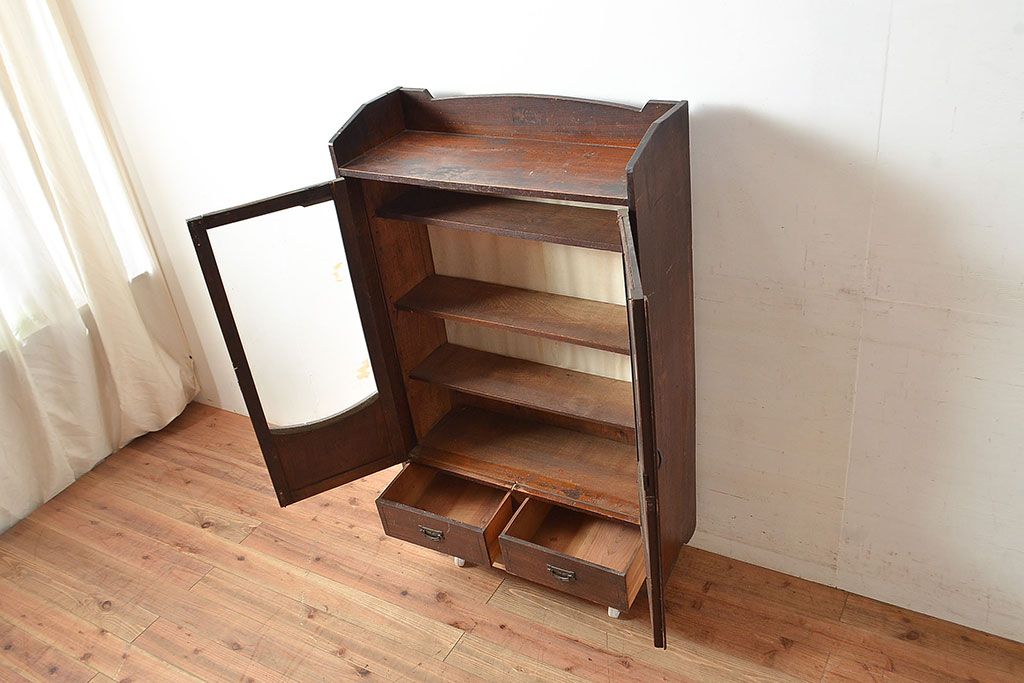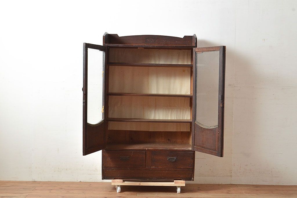 和製アンティーク 栓材製 大正ロマンやレトロスタイルに!扉のデザインと象嵌細工がお洒落な戸棚(収納棚、本箱、ブックケース)(R-048184)です。