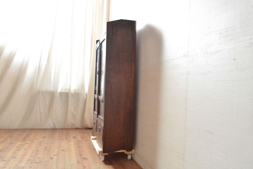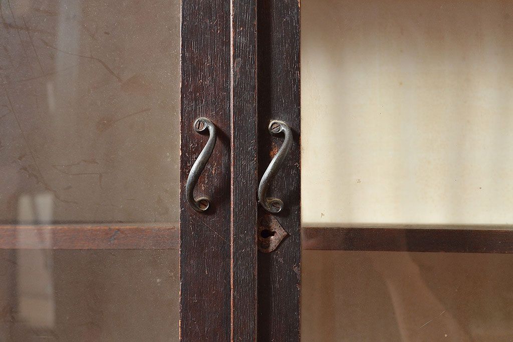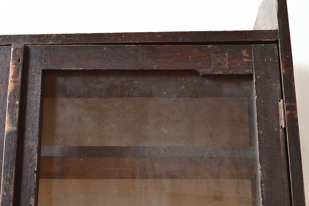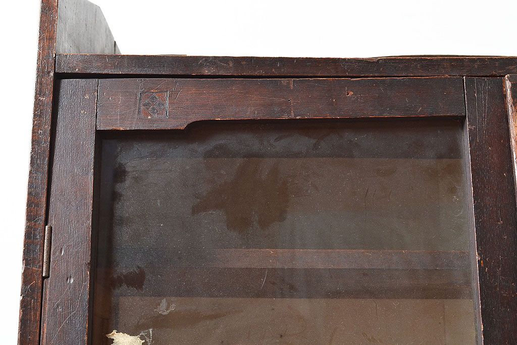 和製アンティーク 栓材製 大正ロマンやレトロスタイルに!扉のデザインと象嵌細工がお洒落な戸棚(収納棚、本箱、ブックケース)(R-048184)