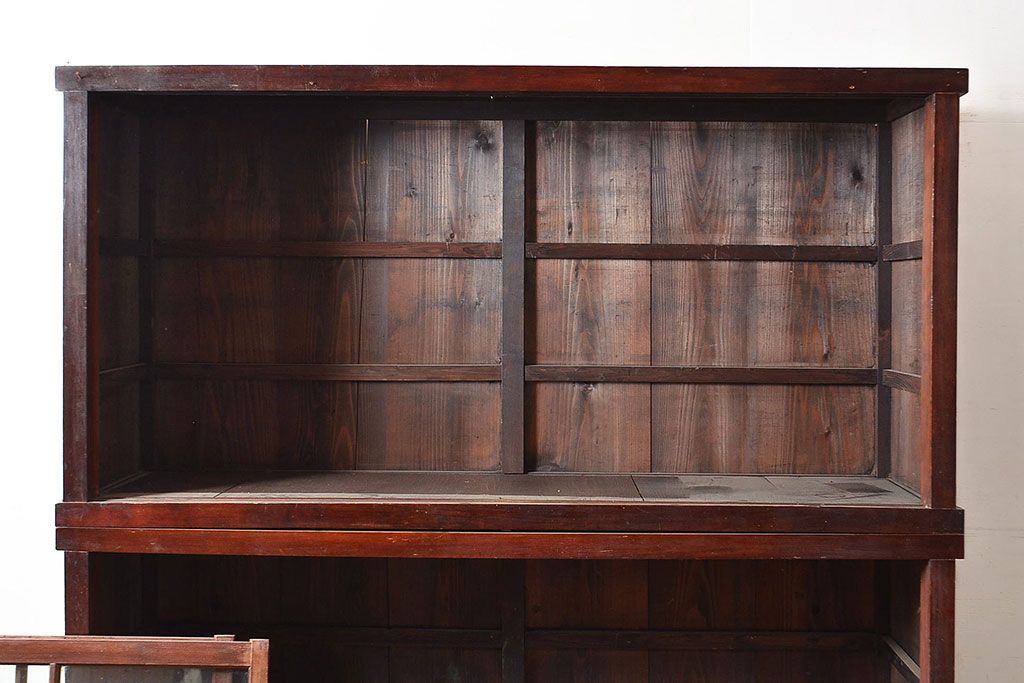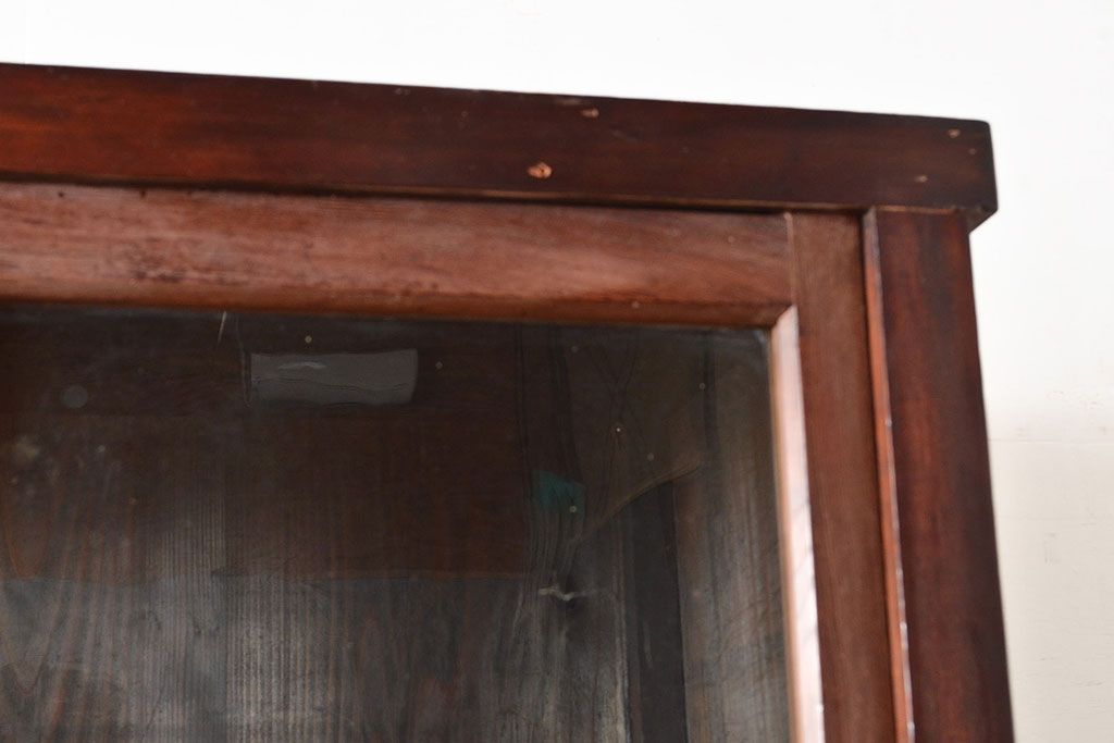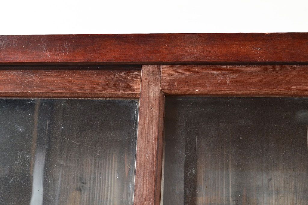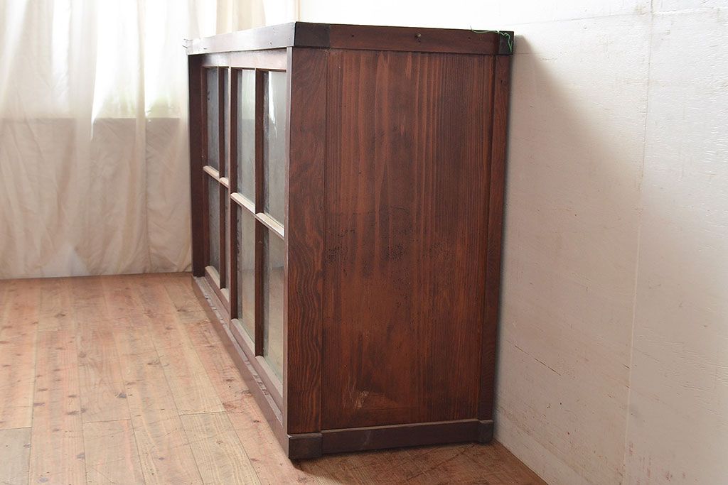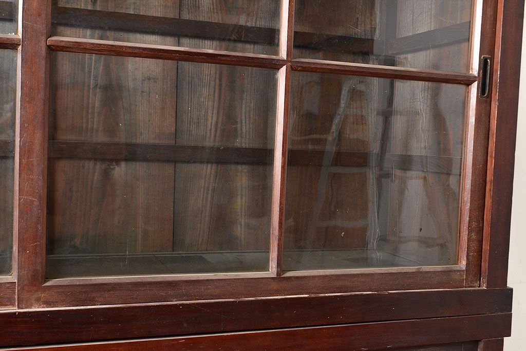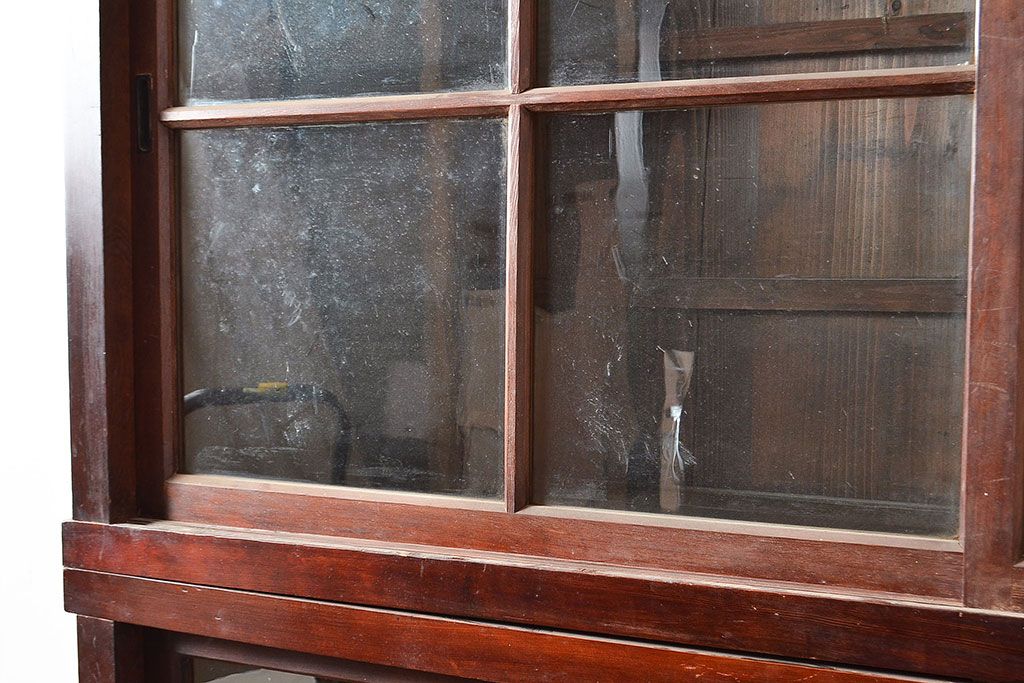 和製アンティーク 前面ヒノキ材 味のある木の風合いが魅力のレトロなガラス戸棚(キャビネット、ガラスケース、収納棚、サイドボード)(R-048025)