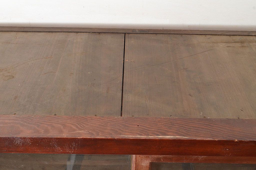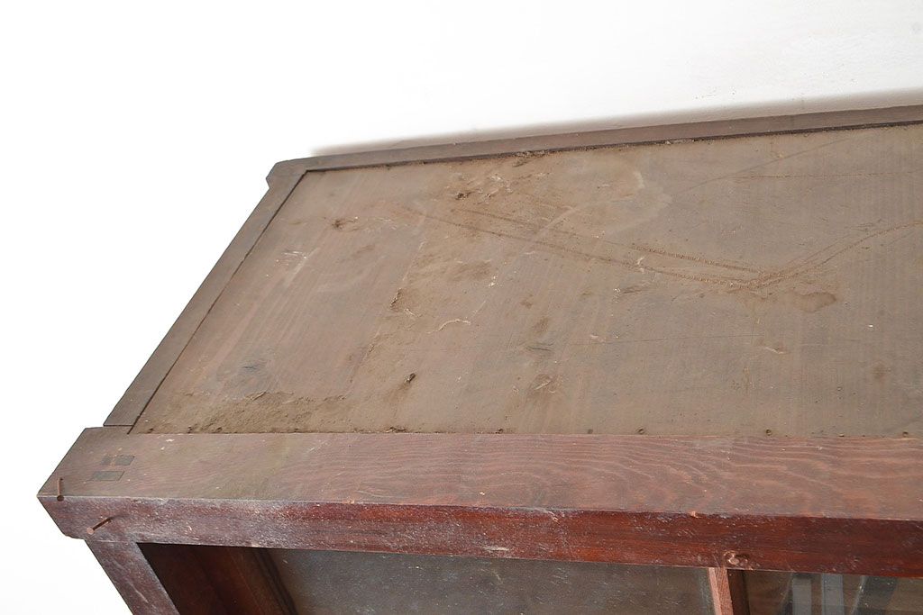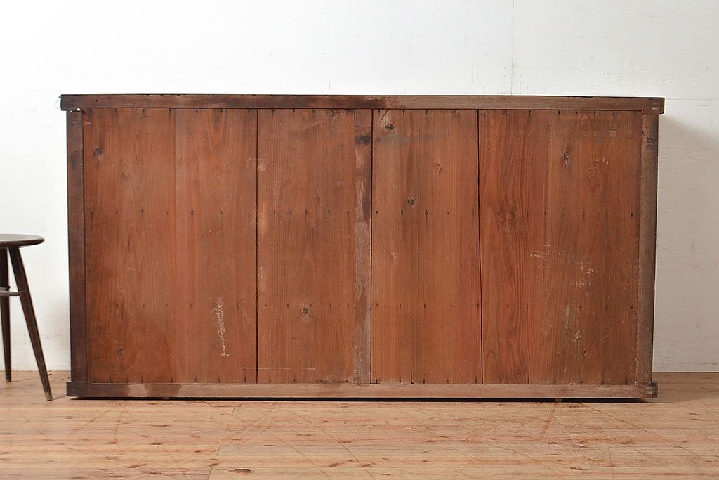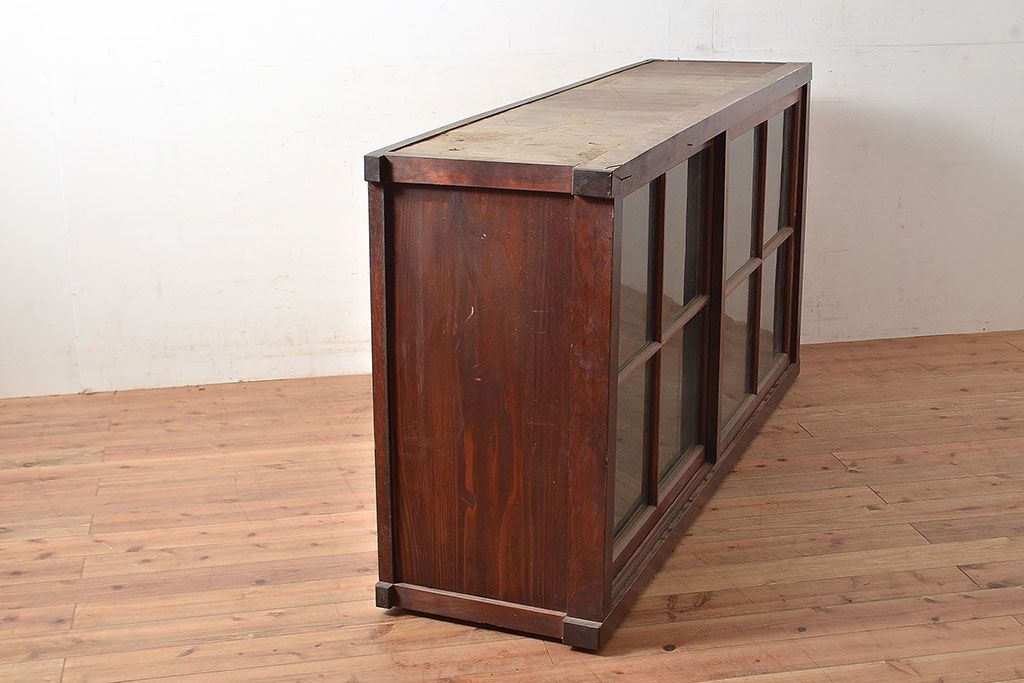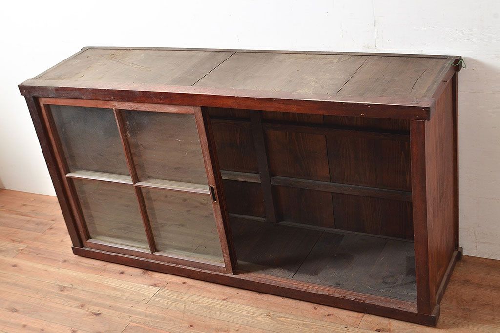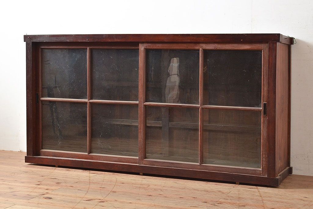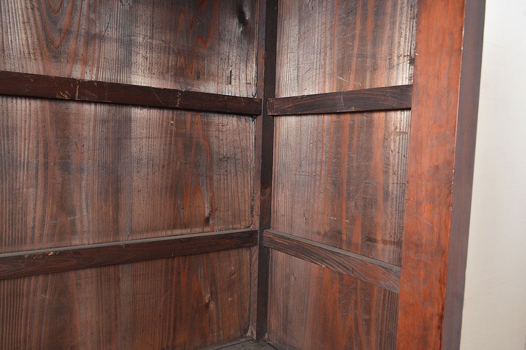 和製アンティーク 前面ヒノキ材 味のある木の風合いが魅力のレトロなガラス戸棚(キャビネット、ガラスケース、収納棚、サイドボード)(R-048025)
