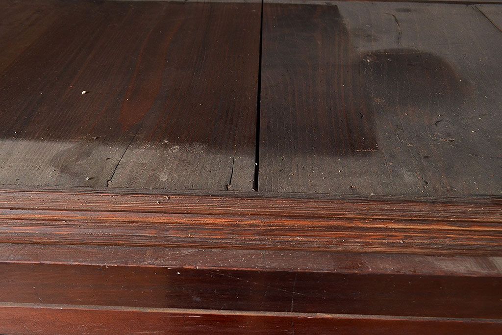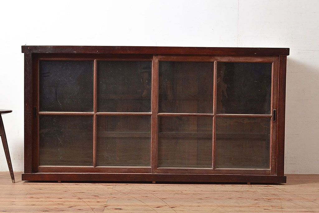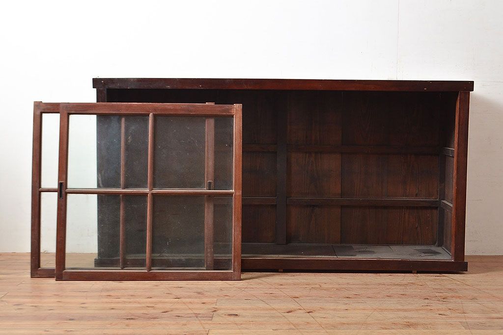 和製アンティーク 前面ヒノキ材 味のある木の風合いが魅力のレトロなガラス戸棚(キャビネット、ガラスケース、収納棚、サイドボード)(R-048025)です。