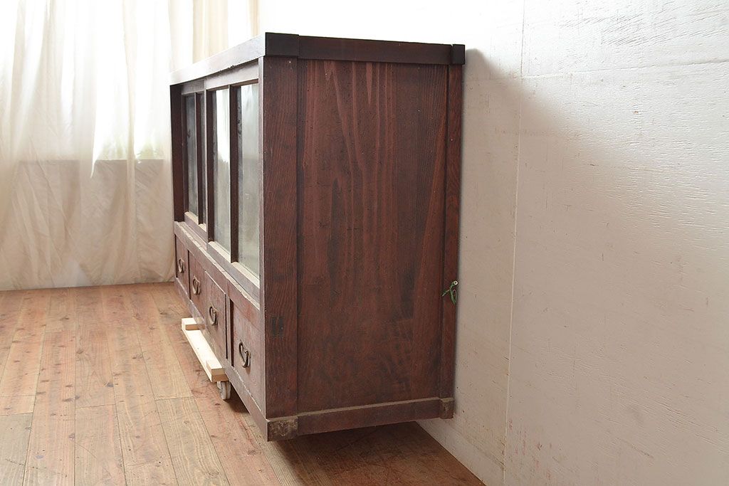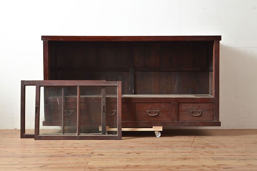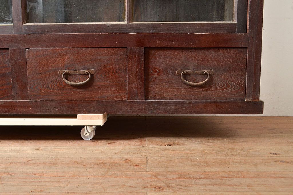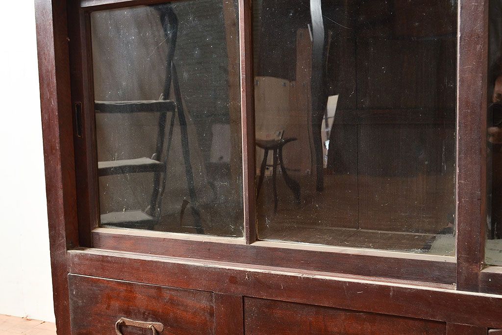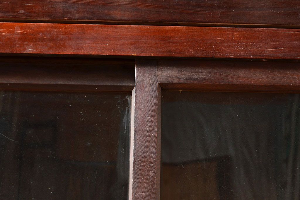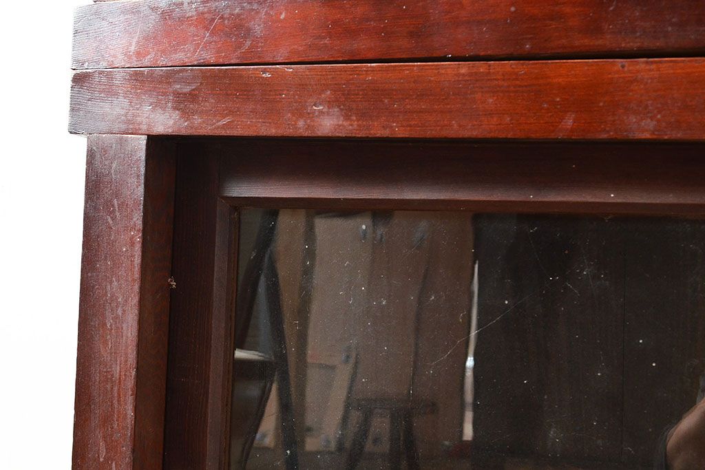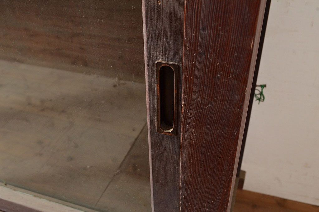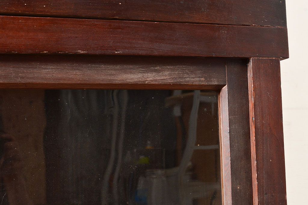 和製アンティーク 前面ヒノキ材 味のある木の風合いが魅力のレトロなガラス戸棚(キャビネット、ガラスケース、収納棚、サイドボード)(R-048026)