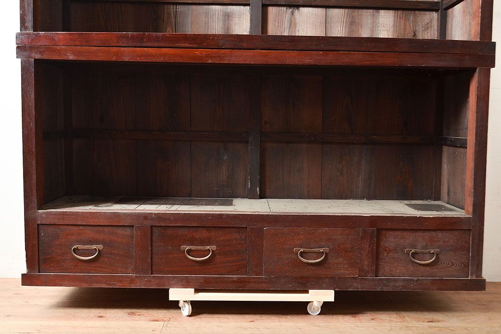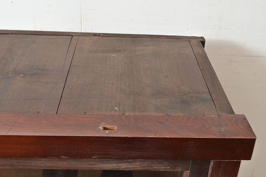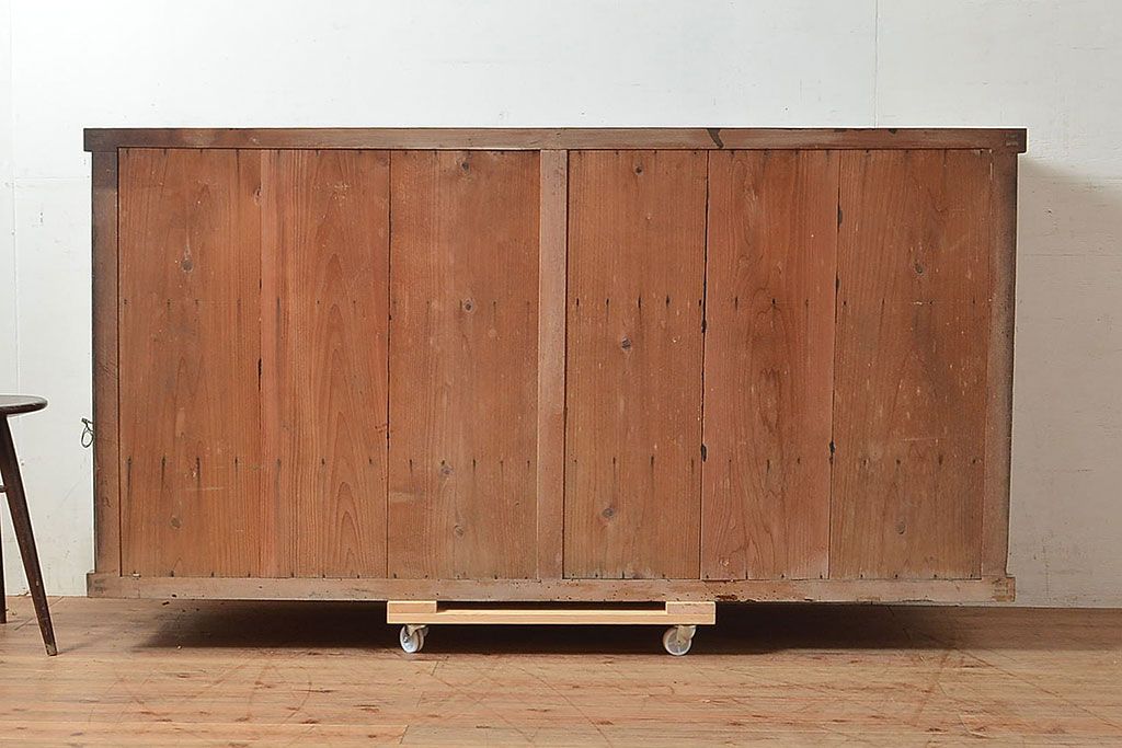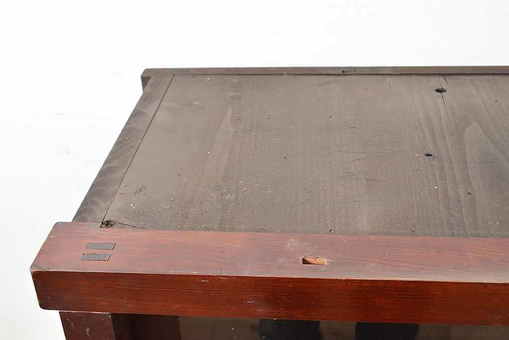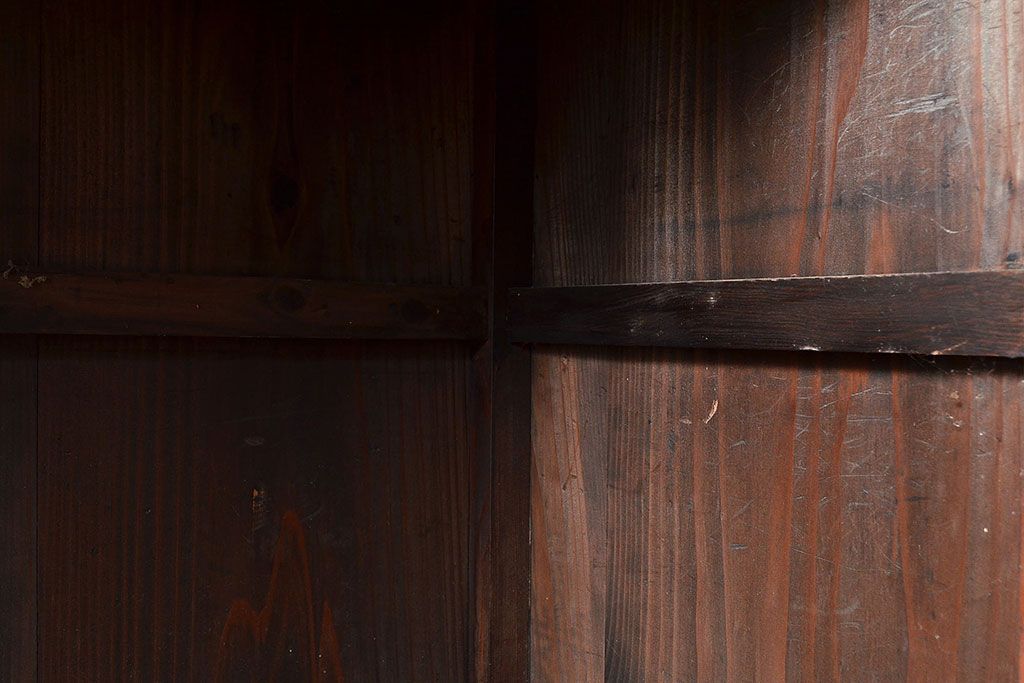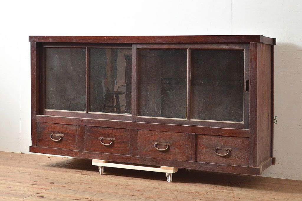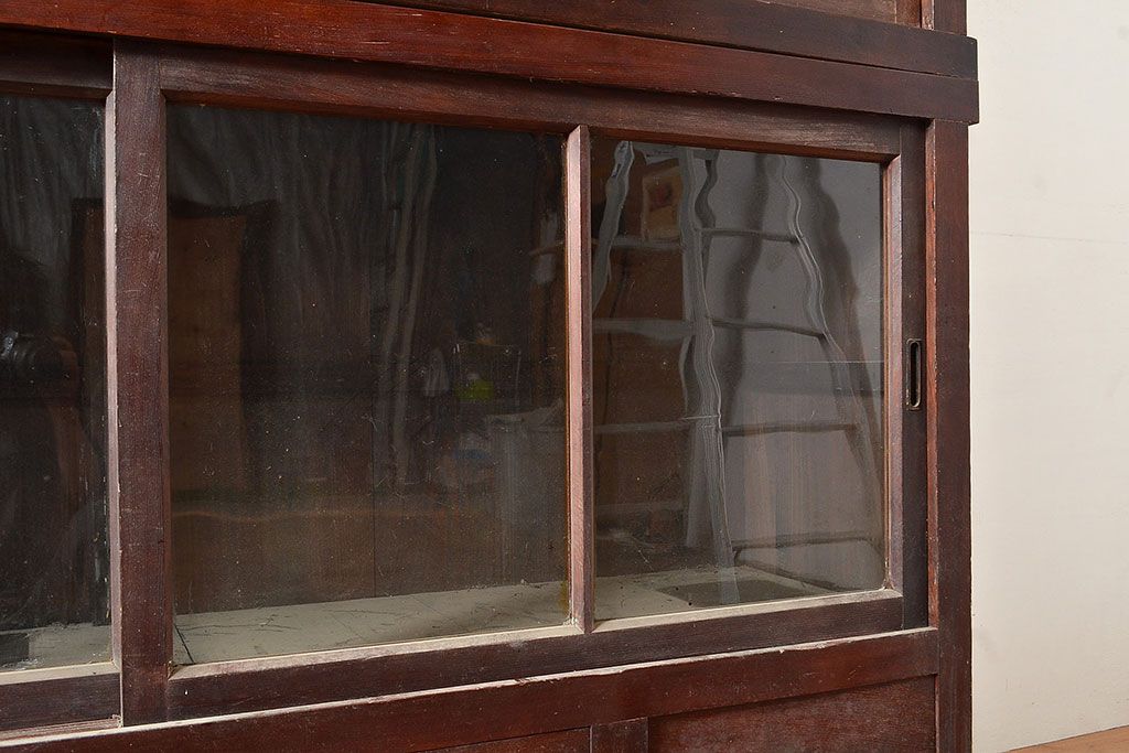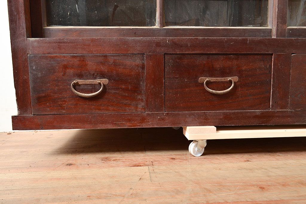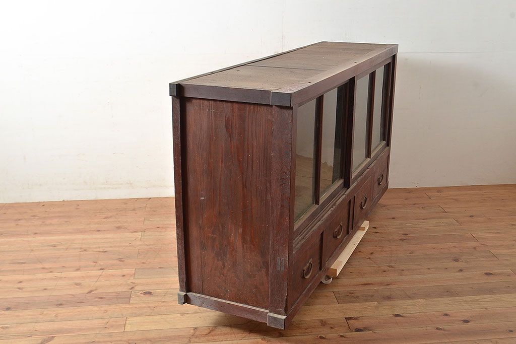 和製アンティーク 前面ヒノキ材 味のある木の風合いが魅力のレトロなガラス戸棚(キャビネット、ガラスケース、収納棚、サイドボード)(R-048026)