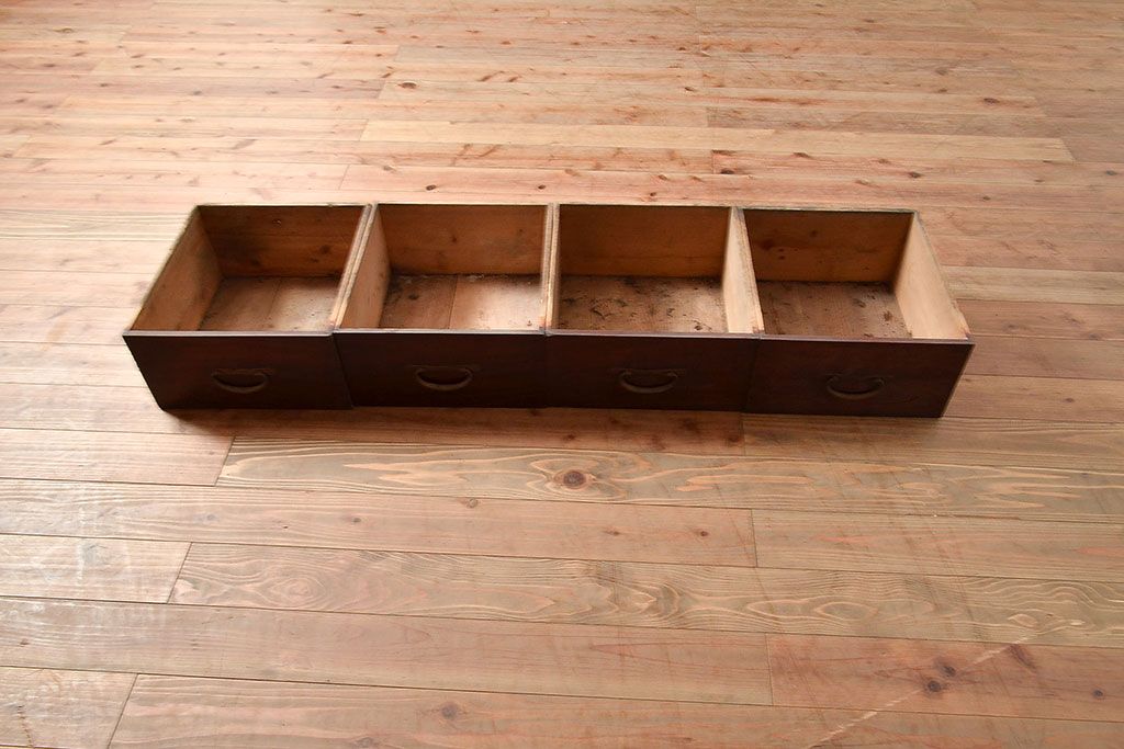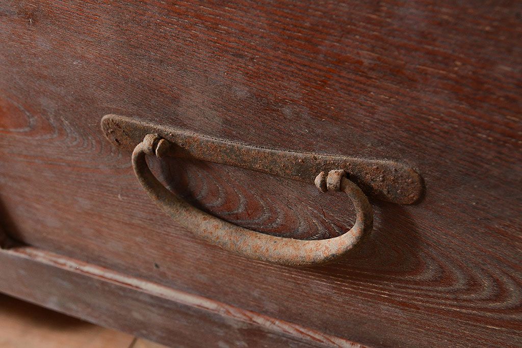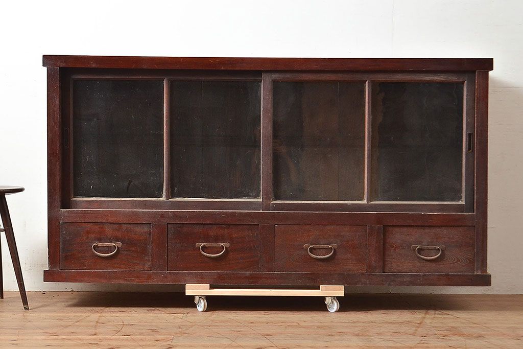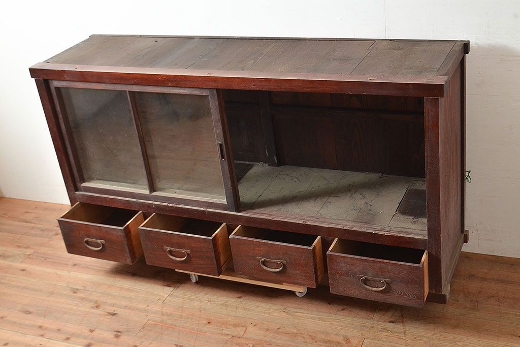 和製アンティーク 前面ヒノキ材 味のある木の風合いが魅力のレトロなガラス戸棚(キャビネット、ガラスケース、収納棚、サイドボード)(R-048026)です。