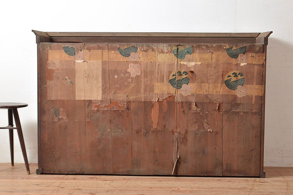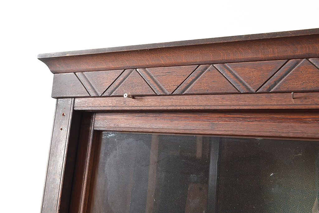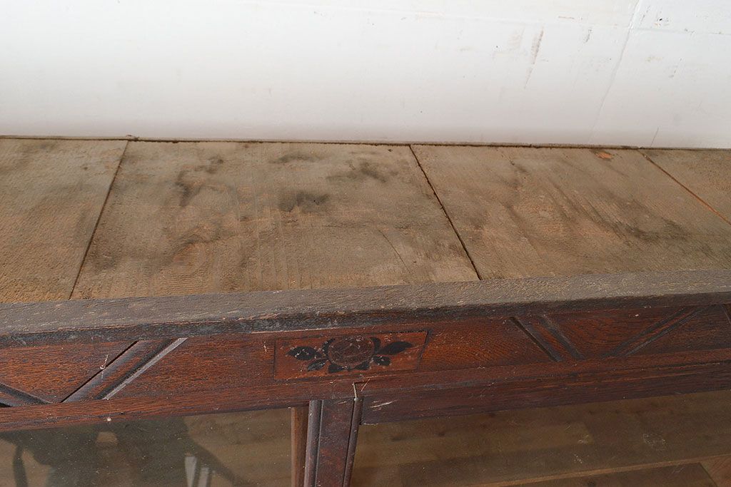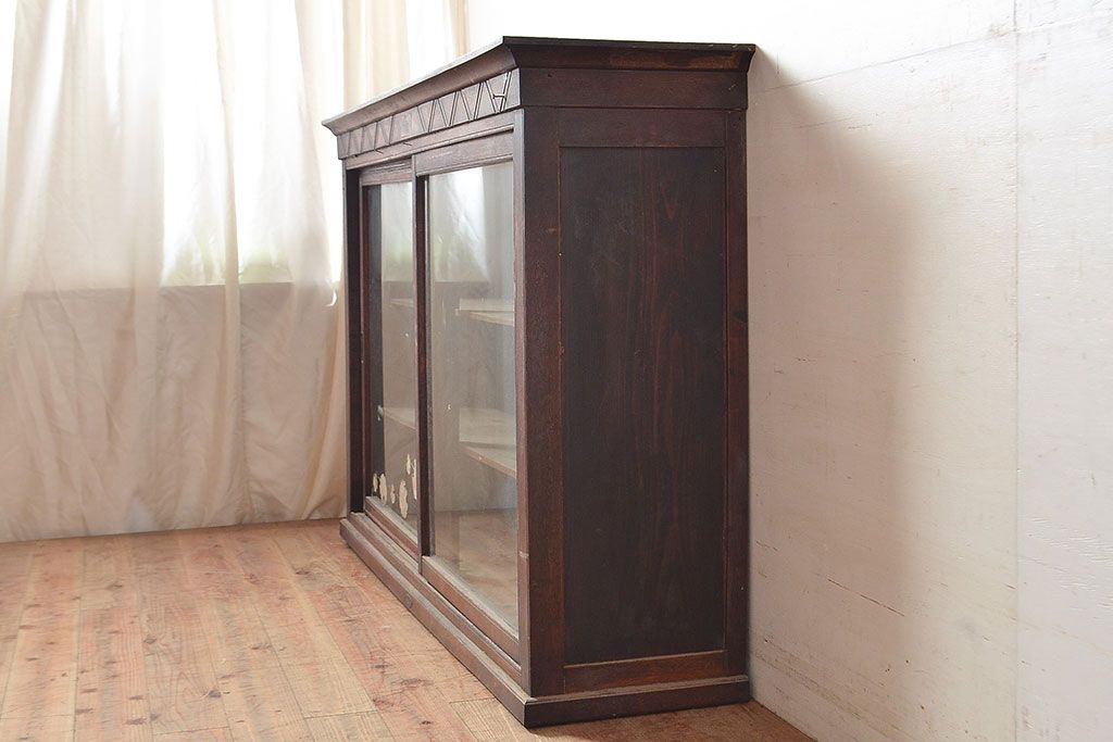 和製アンティーク 象嵌細工入り 大正ロマンにおすすめ!深みのある木色が素敵なガラス戸棚(キャビネット、ガラスケース、収納棚、サイドボード)(R-048028)です。