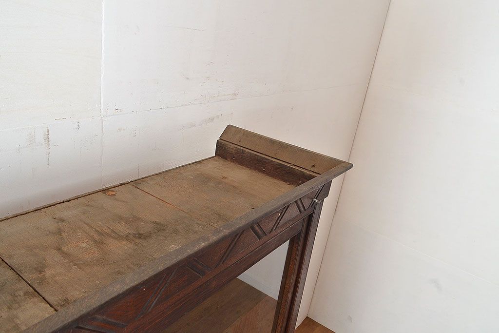 和製アンティーク 象嵌細工入り 大正ロマンにおすすめ!深みのある木色が素敵なガラス戸棚(キャビネット、ガラスケース、収納棚、サイドボード)(R-048028)