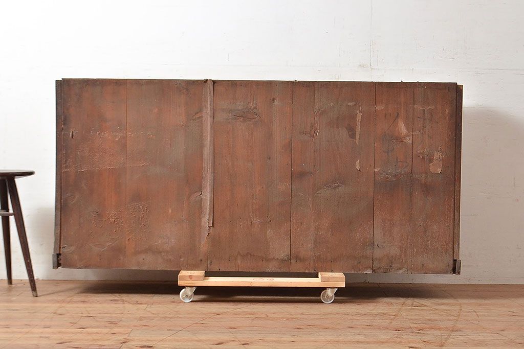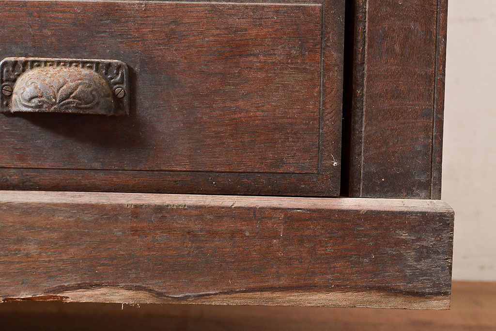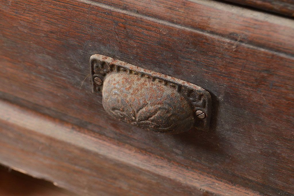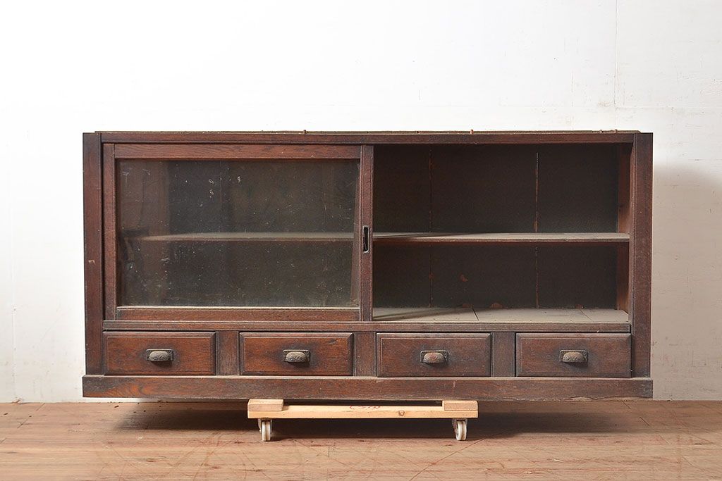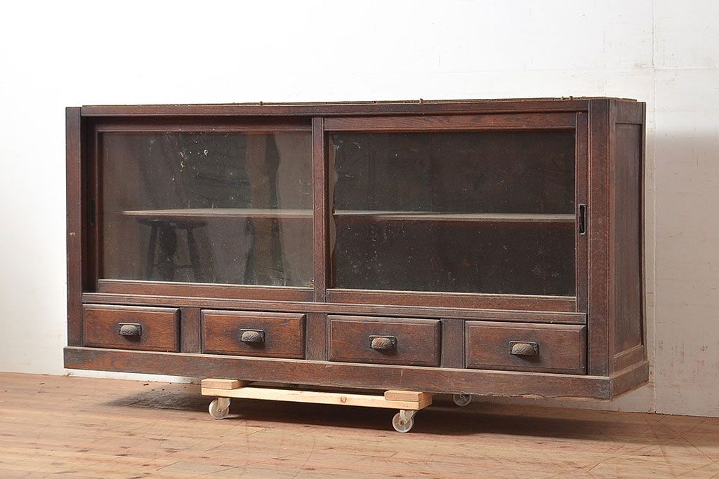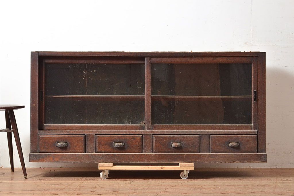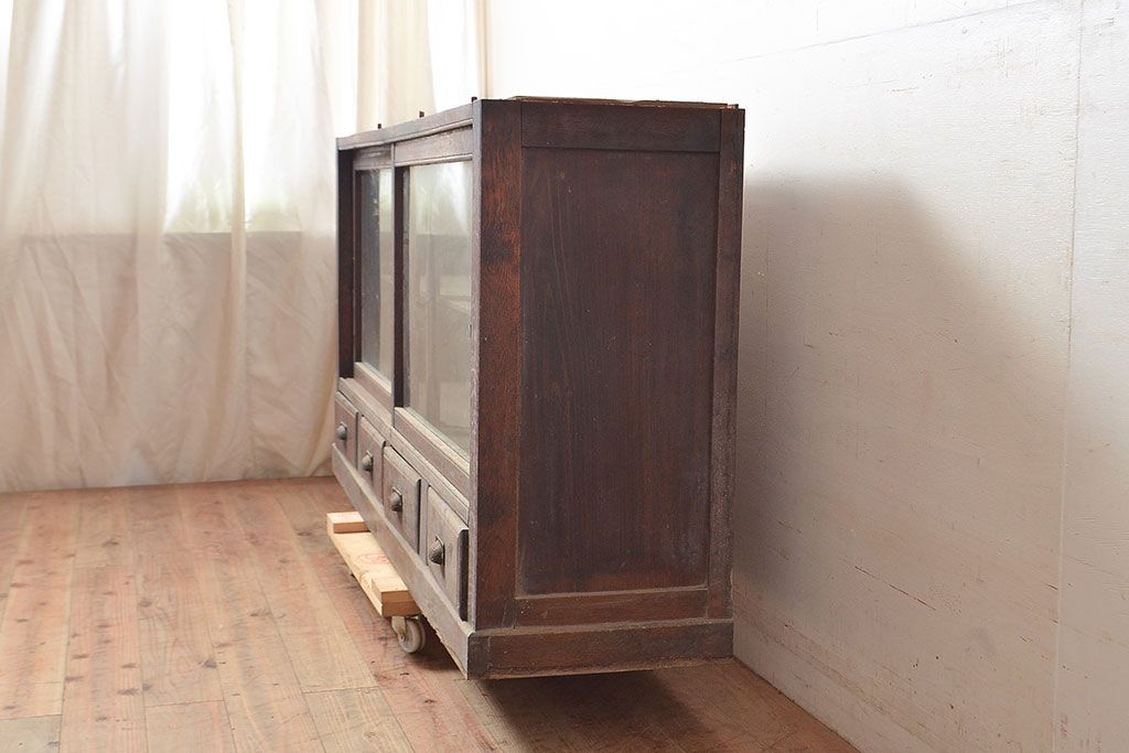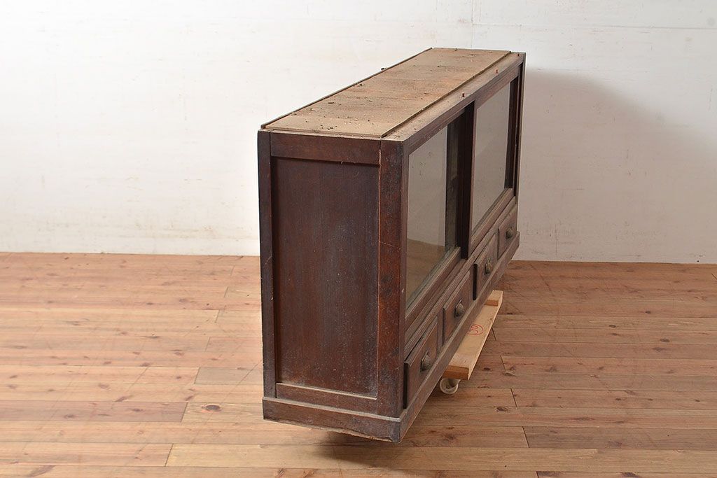 キャビネット・戸棚 > 和製アンティーク 引き出し付き 大正ロマンにおすすめ!深みのある木色が素敵なガラス戸棚(キャビネット、ガラスケース、収納棚、サイドボード)(R-048029)