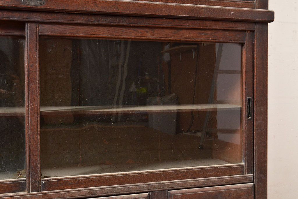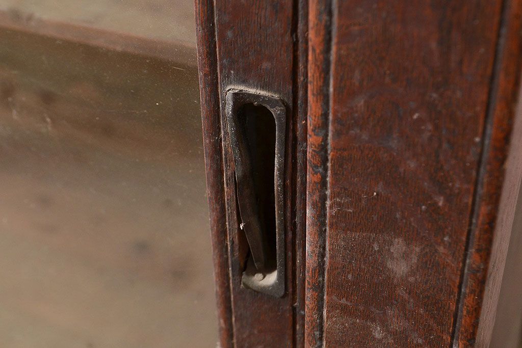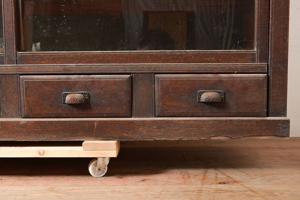 和製アンティーク 引き出し付き 大正ロマンにおすすめ!深みのある木色が素敵なガラス戸棚(キャビネット、ガラスケース、収納棚、サイドボード)(R-048029)