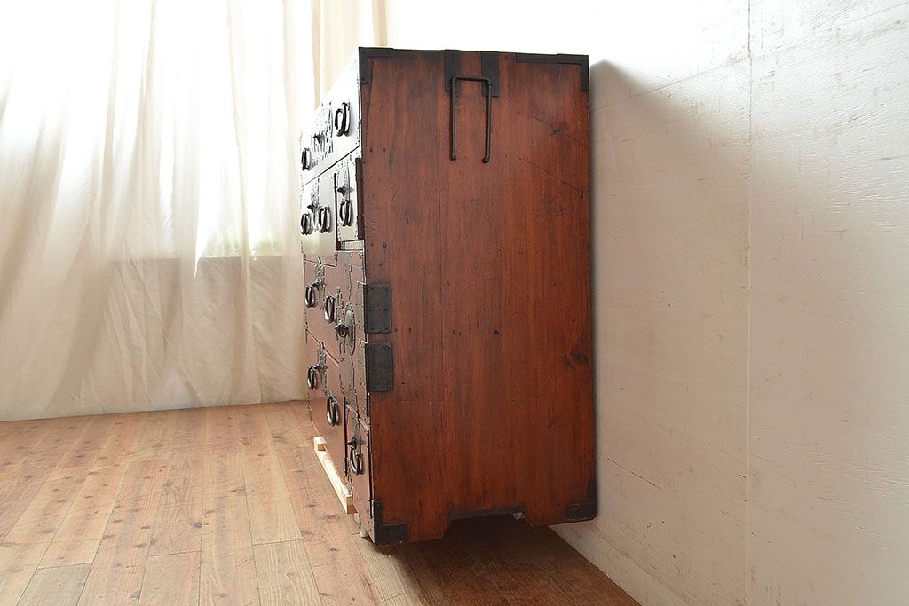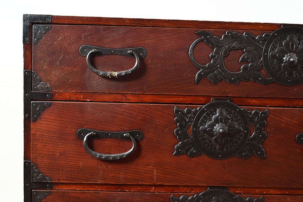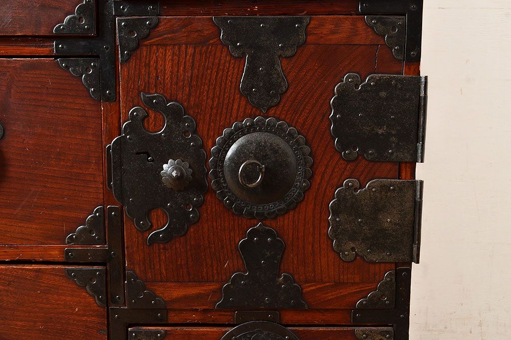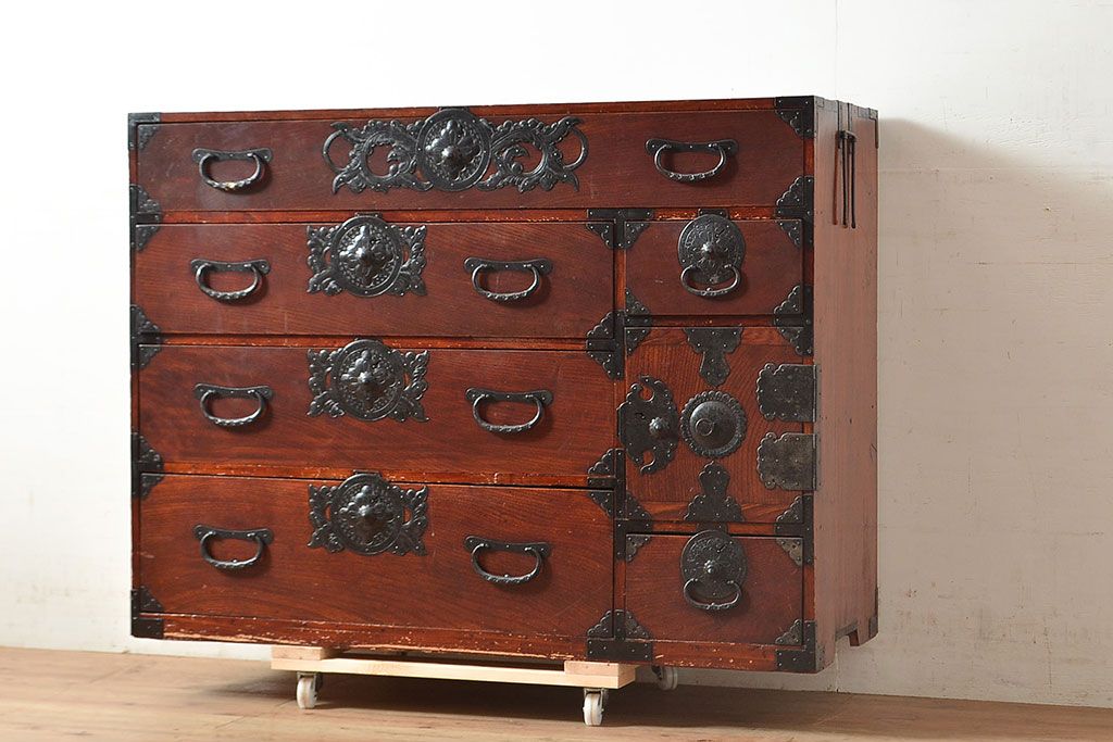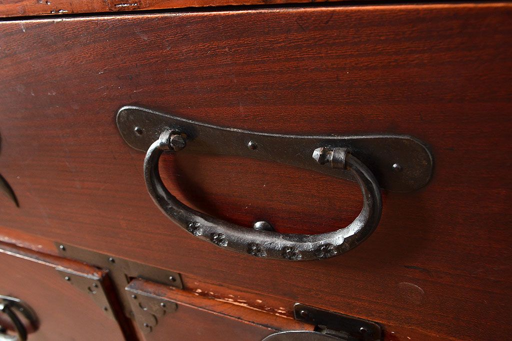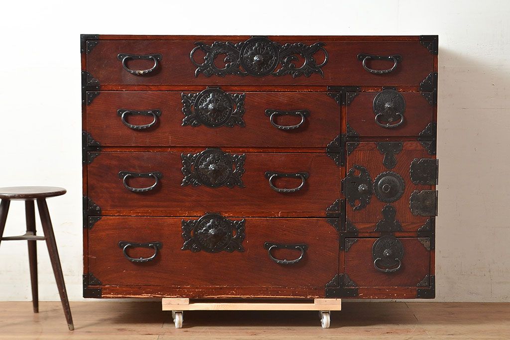 和箪笥> 衣装箪笥 > 和製アンティーク 前面ケヤキ材 漆塗り 風格漂う和の空間作りにぴったりの仙台箪笥(衣装箪笥、引き出し)(R-048186)