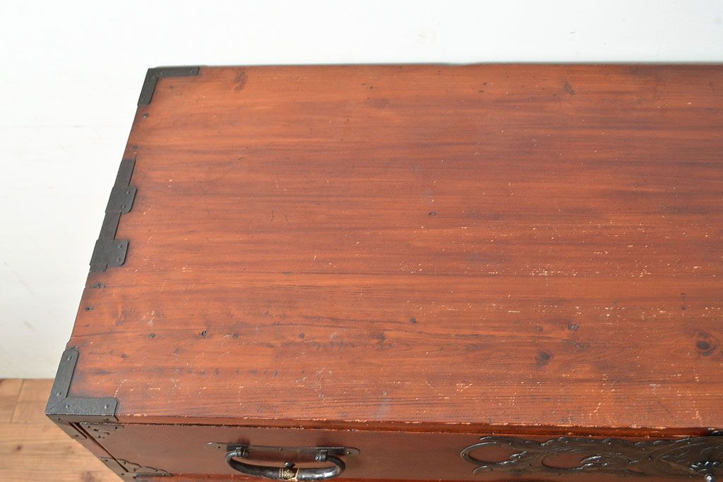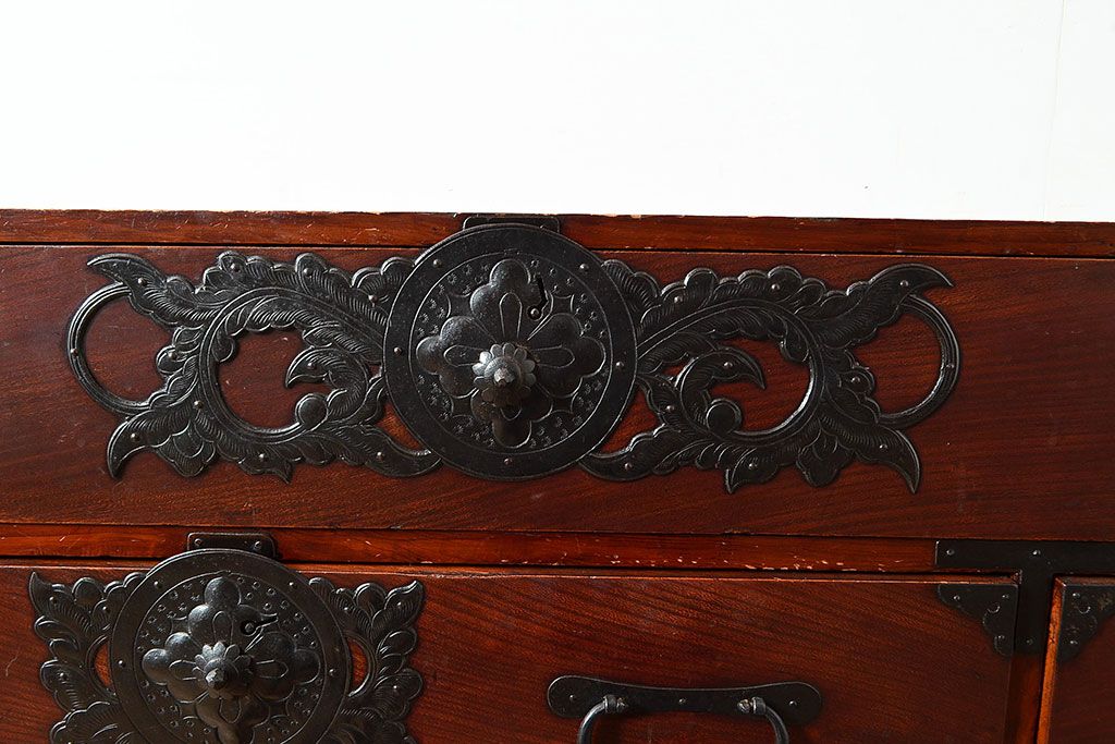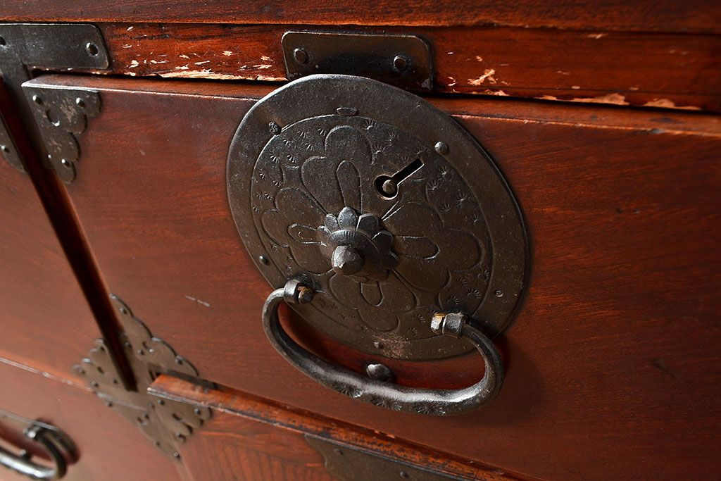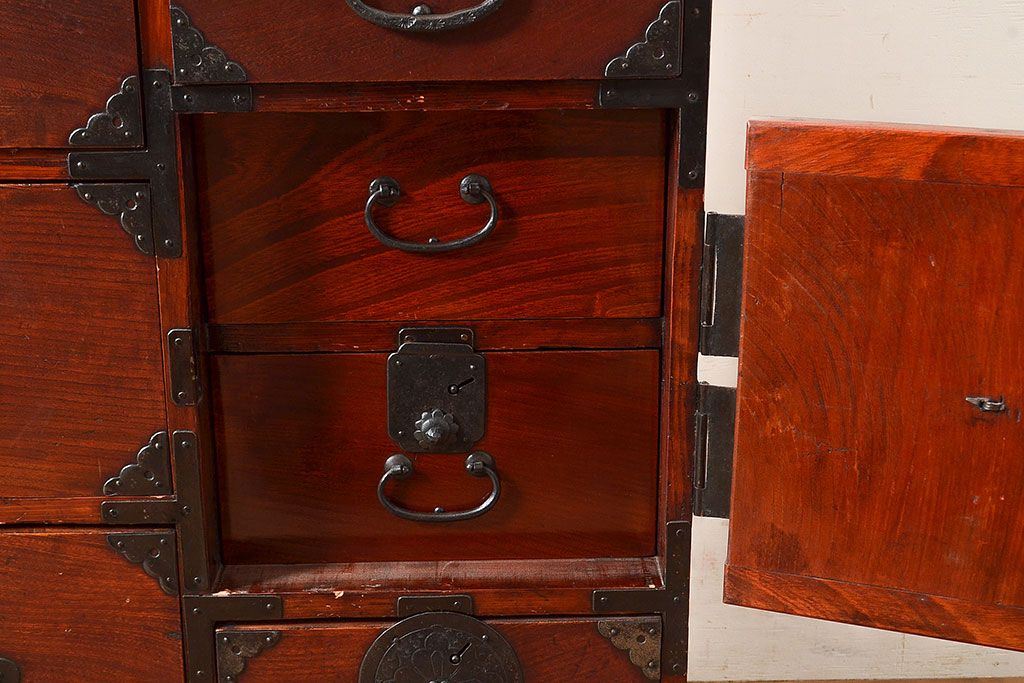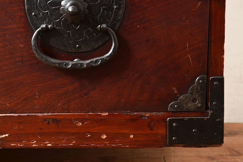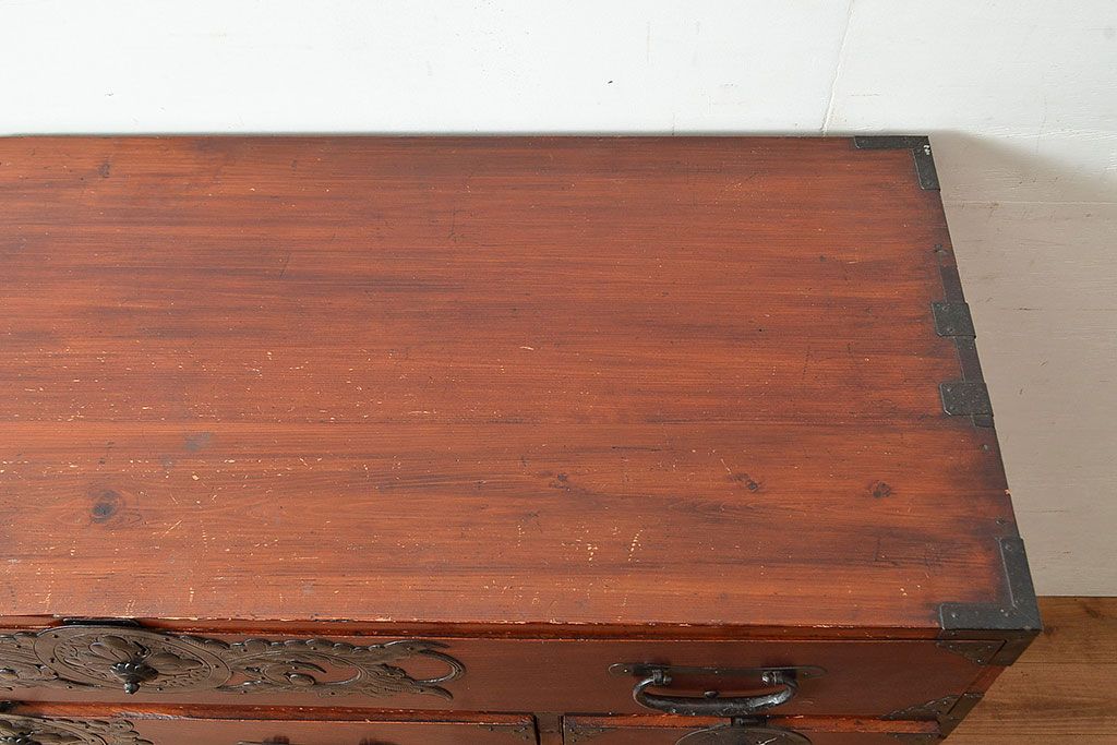 和箪笥> 衣装箪笥 > 和製アンティーク 前面ケヤキ材 漆塗り 風格漂う和の空間作りにぴったりの仙台箪笥(衣装箪笥、引き出し)(R-048186)