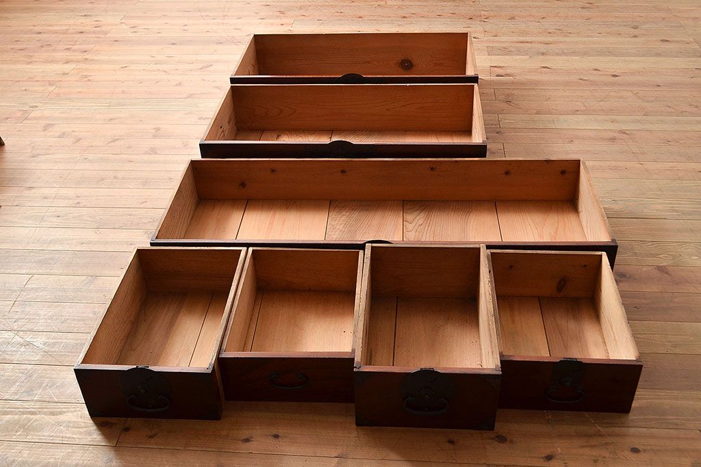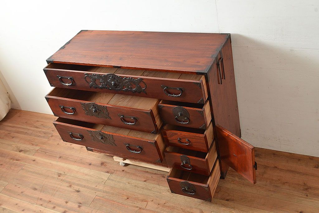 和製アンティーク 前面ケヤキ材 漆塗り 風格漂う和の空間作りにぴったりの仙台箪笥(衣装箪笥、引き出し)(R-048186)