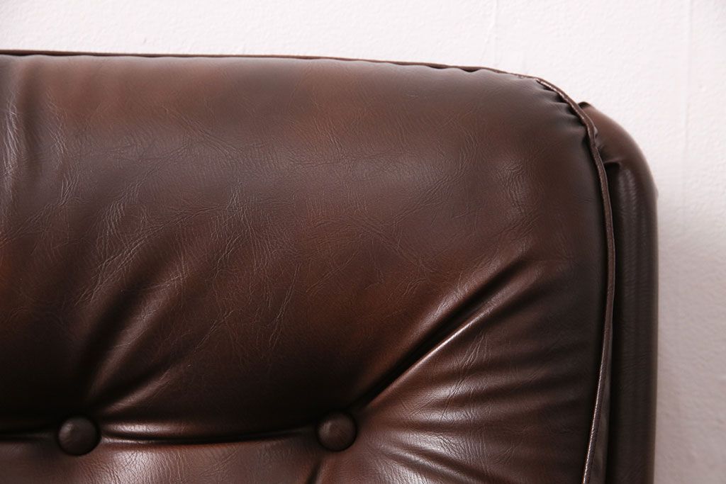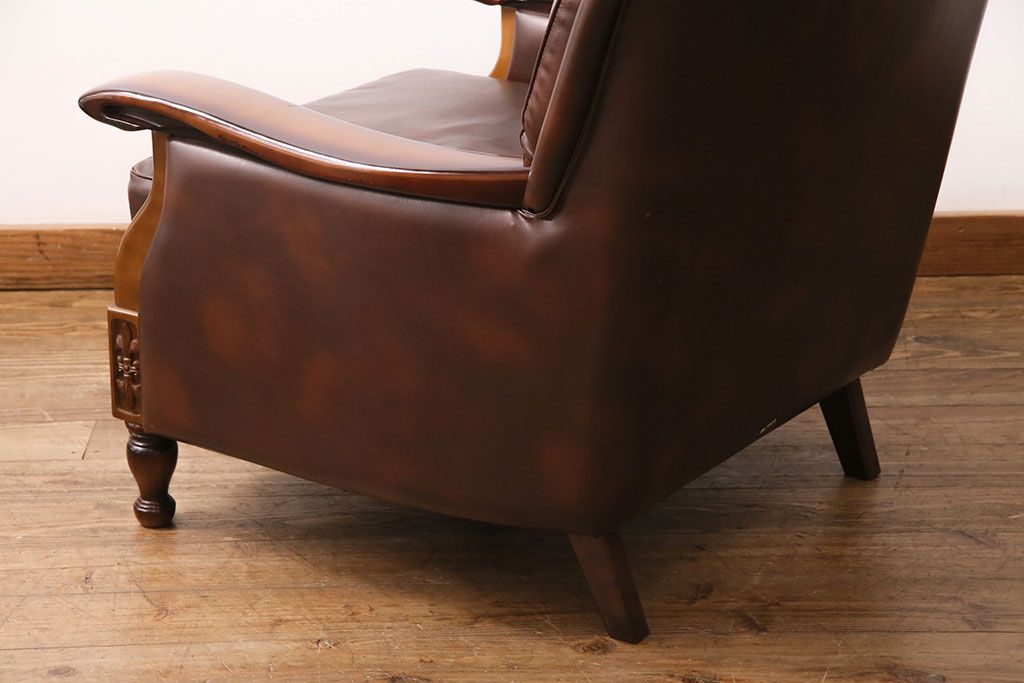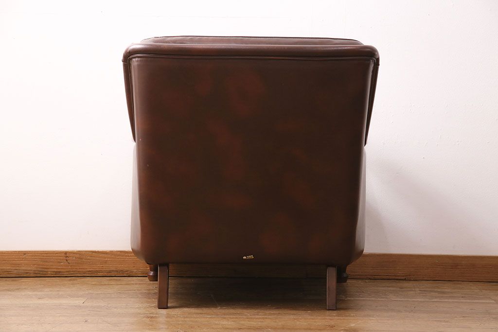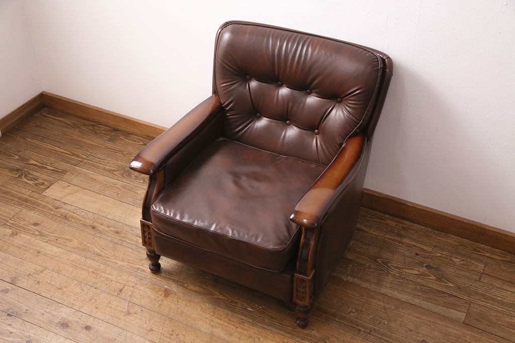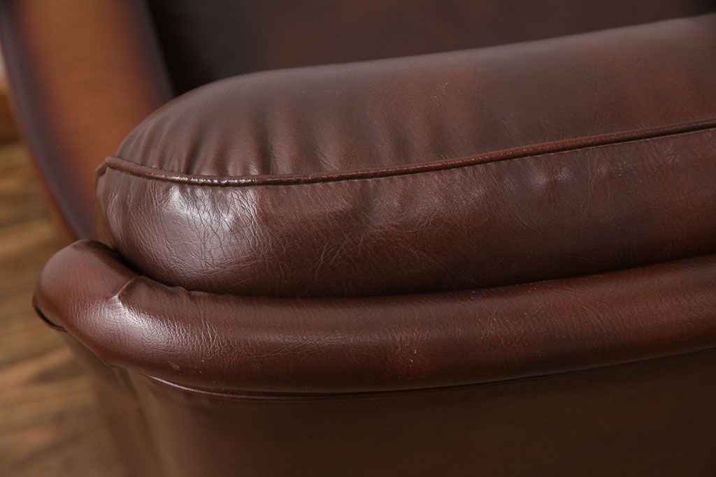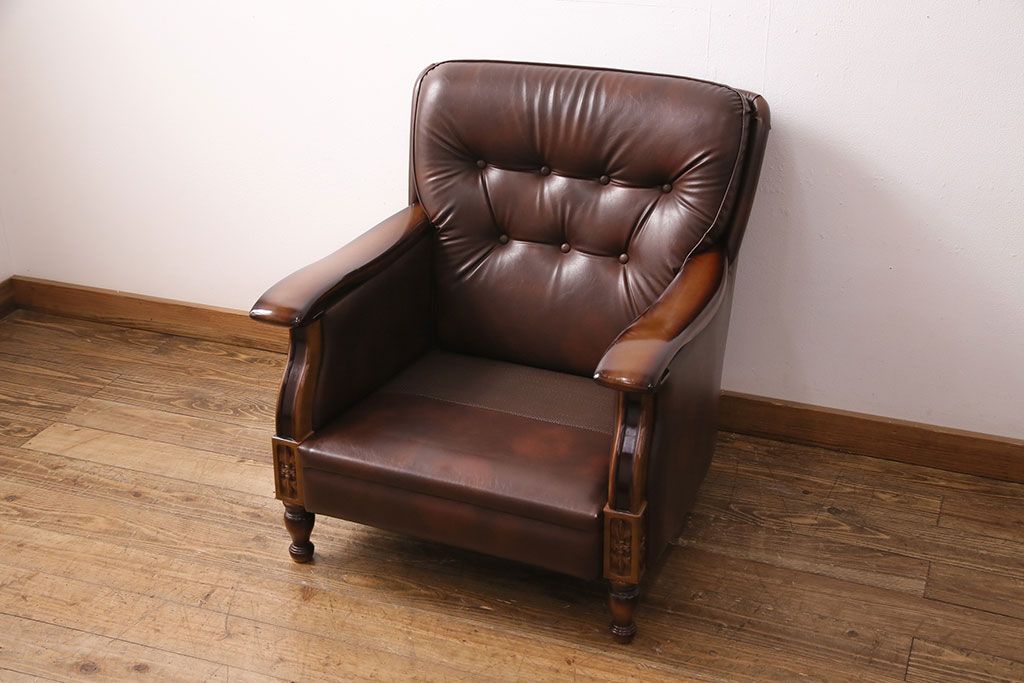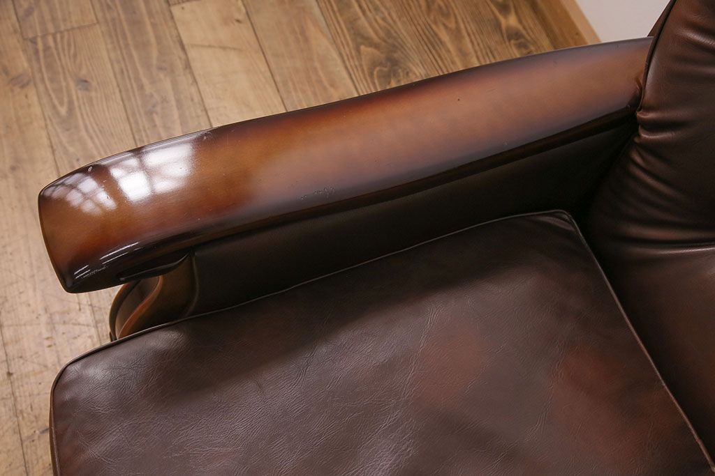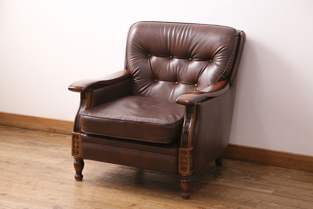 ヴィンテージ カリモク家具(karimoku) 渋い雰囲気が格好良いレトロソファ(一人掛け、アームソファ、合皮、ビンテージ)(R-049416)
