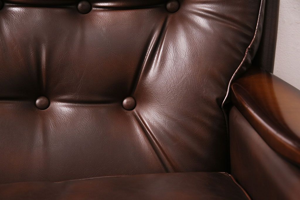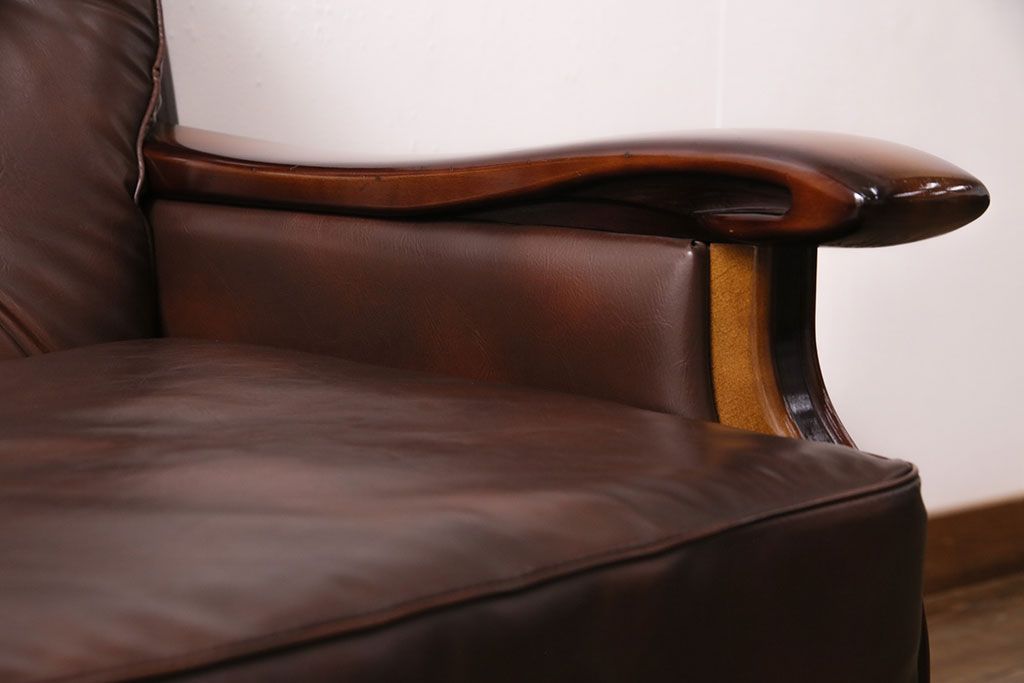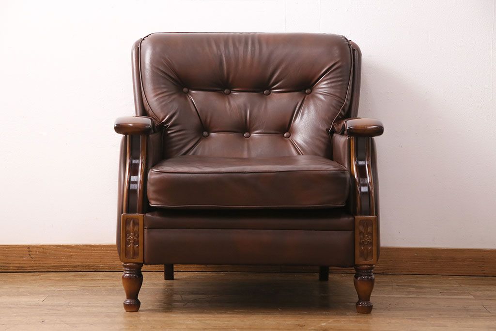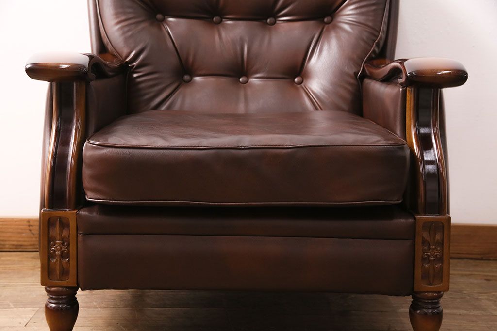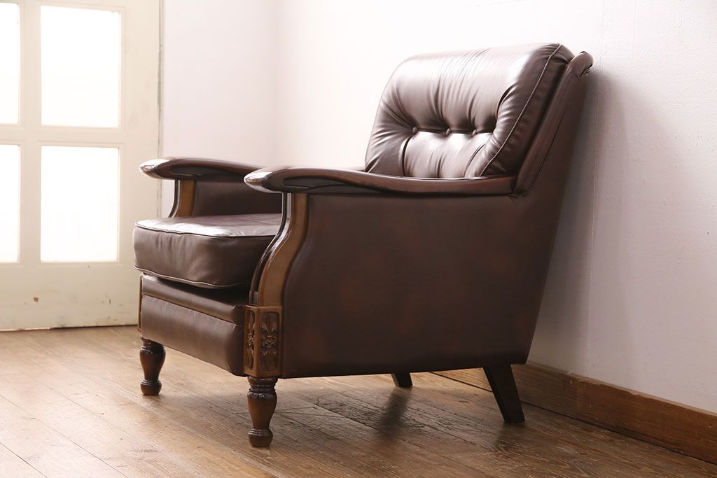 ソファ> 1人掛けソファ > ヴィンテージ カリモク家具(karimoku) 渋い雰囲気が格好良いレトロソファ(一人掛け、アームソファ、合皮、ビンテージ)(R-049416)