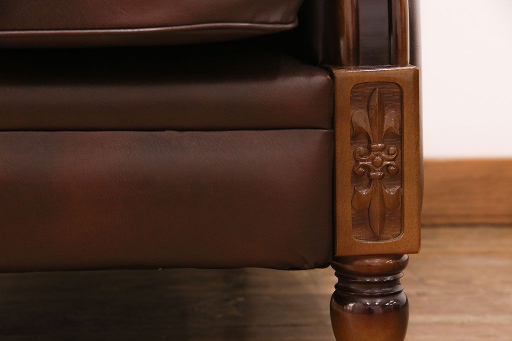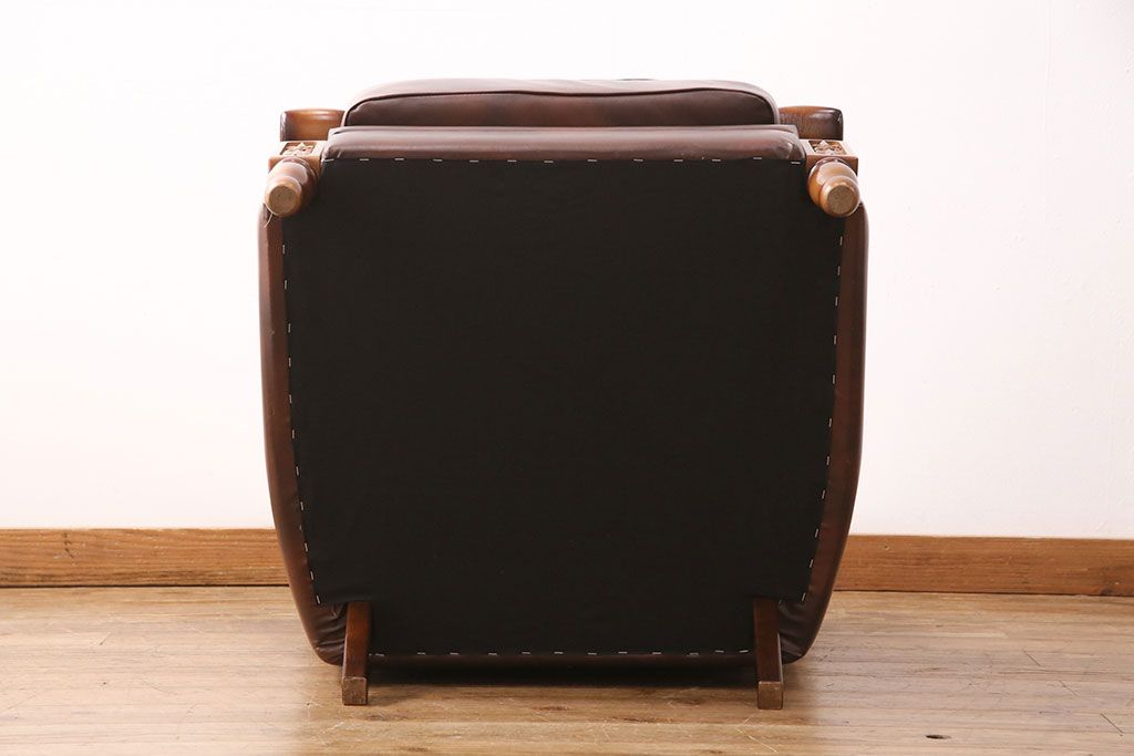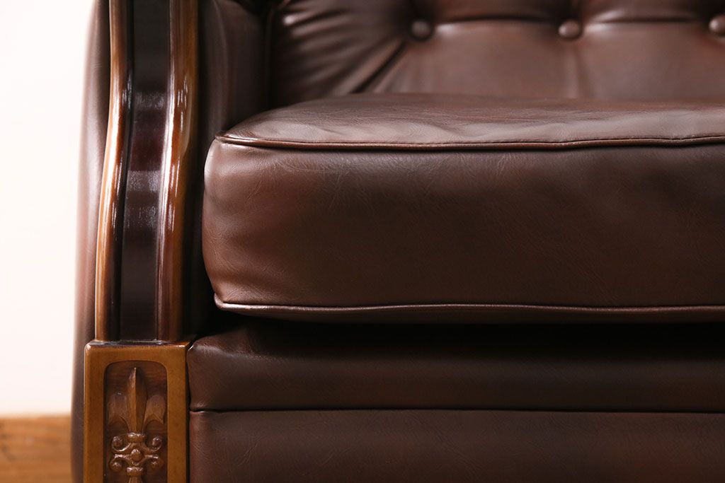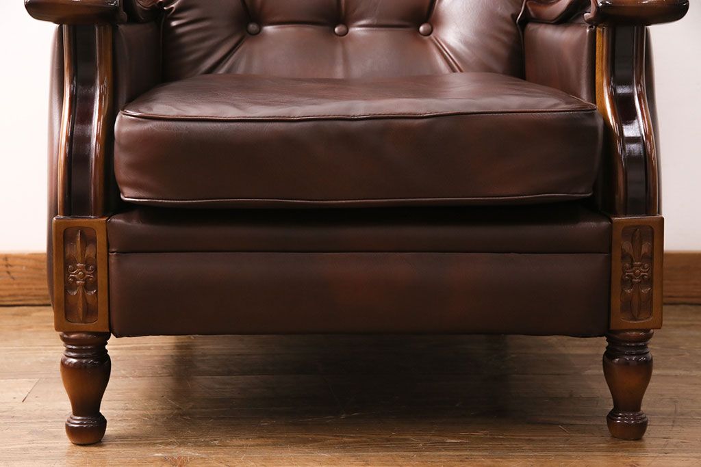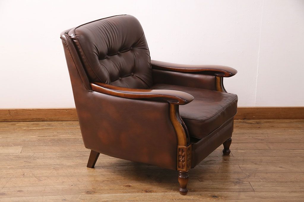ソファ> 1人掛けソファ > ヴィンテージ カリモク家具(karimoku) 渋い雰囲気が格好良いレトロソファ(一人掛け、アームソファ、合皮、ビンテージ)(R-049416)