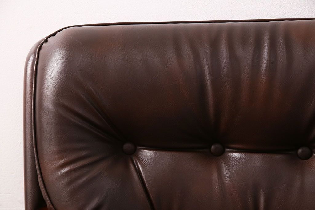 ヴィンテージ カリモク家具(karimoku) 渋い雰囲気が格好良いレトロソファ(一人掛け、アームソファ、合皮)(R-049416)です。