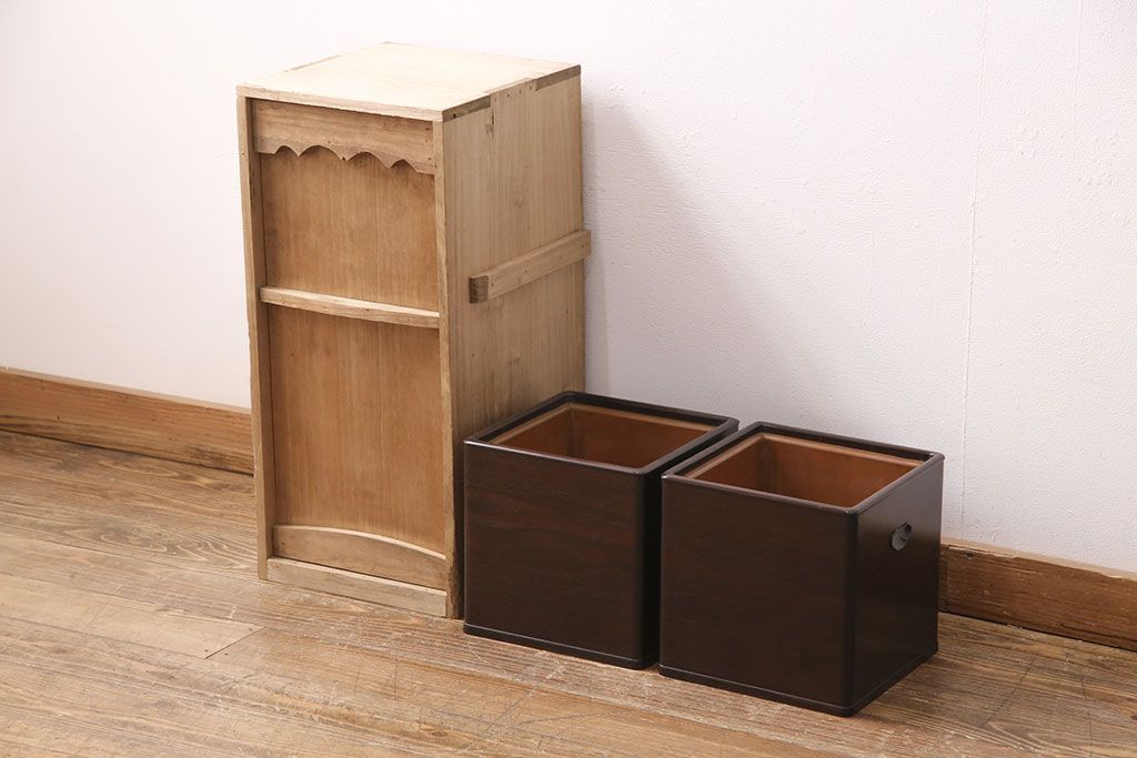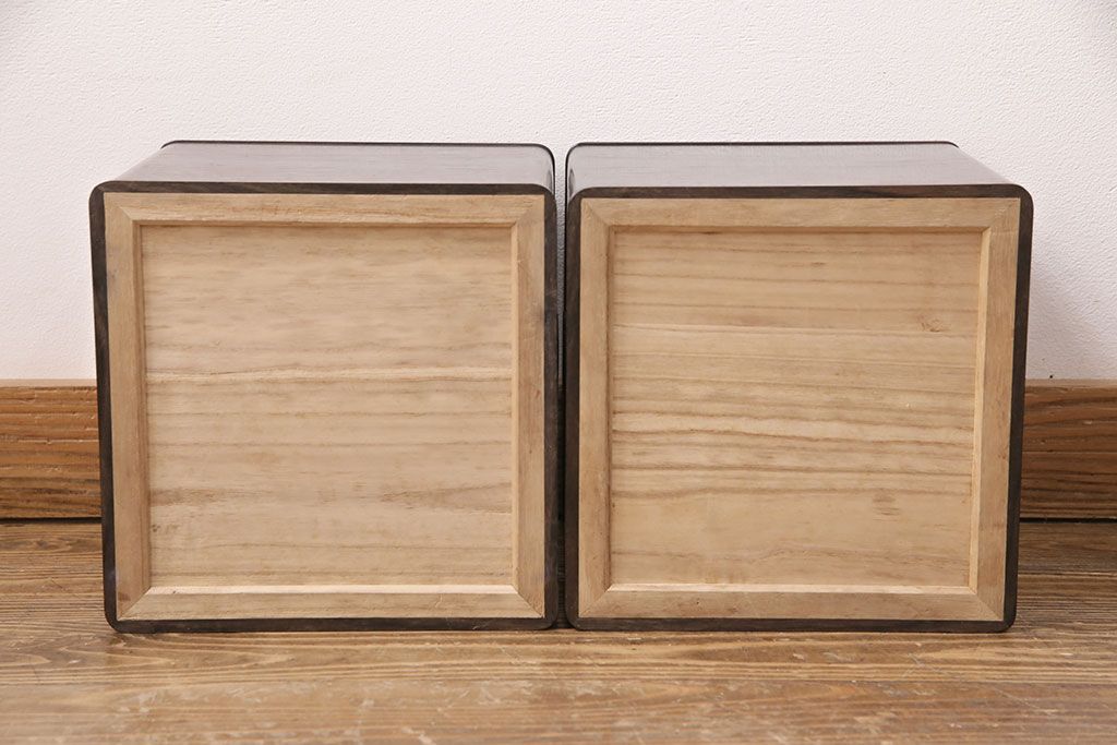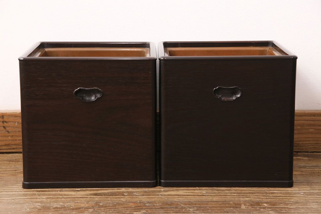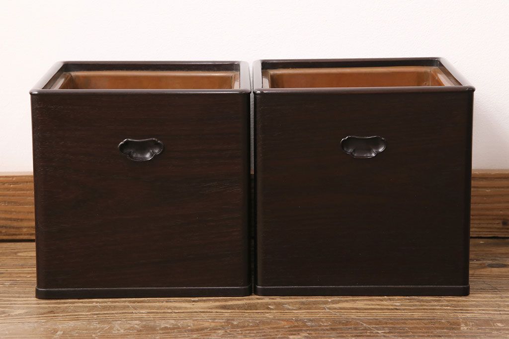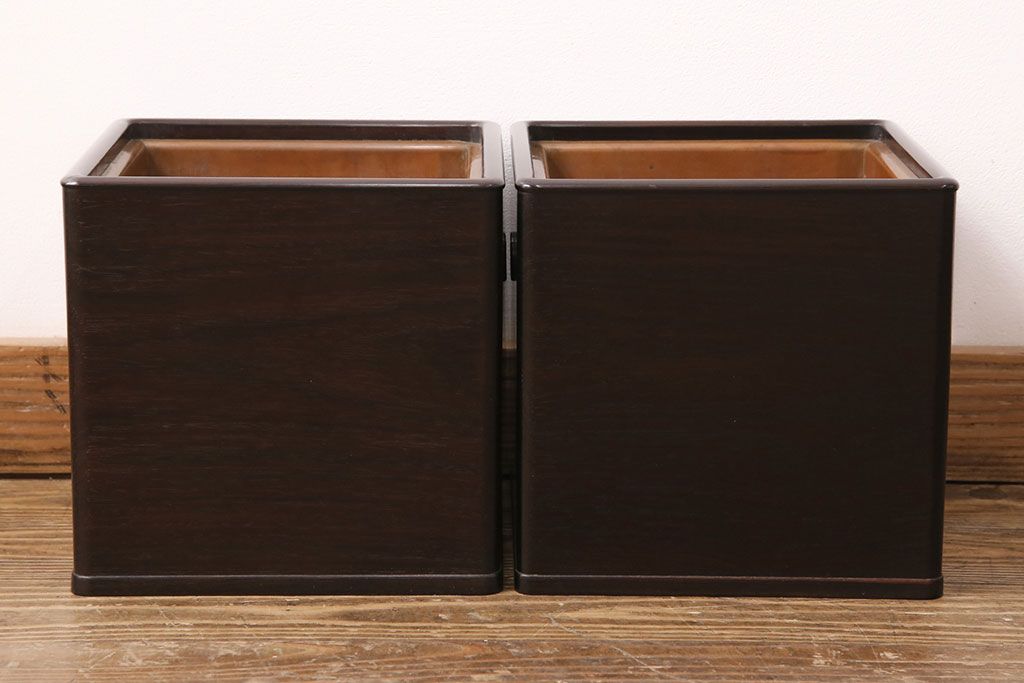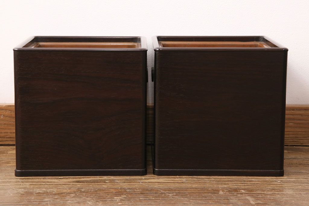 和製アンティーク 指物工芸品 美品 外箱付き!紫檀(シタン)材の深みを帯びた色合いが美しい角火鉢2個セット(木製火鉢)(R-049385)です。