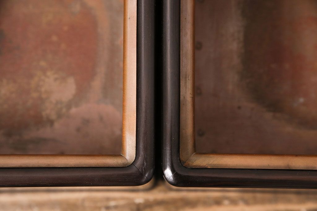 民芸家具 > 和製アンティーク 指物工芸品 美品 外箱付き!紫檀(シタン)材の深みを帯びた色合いが美しい角火鉢2個セット(木製火鉢)(R-049385)