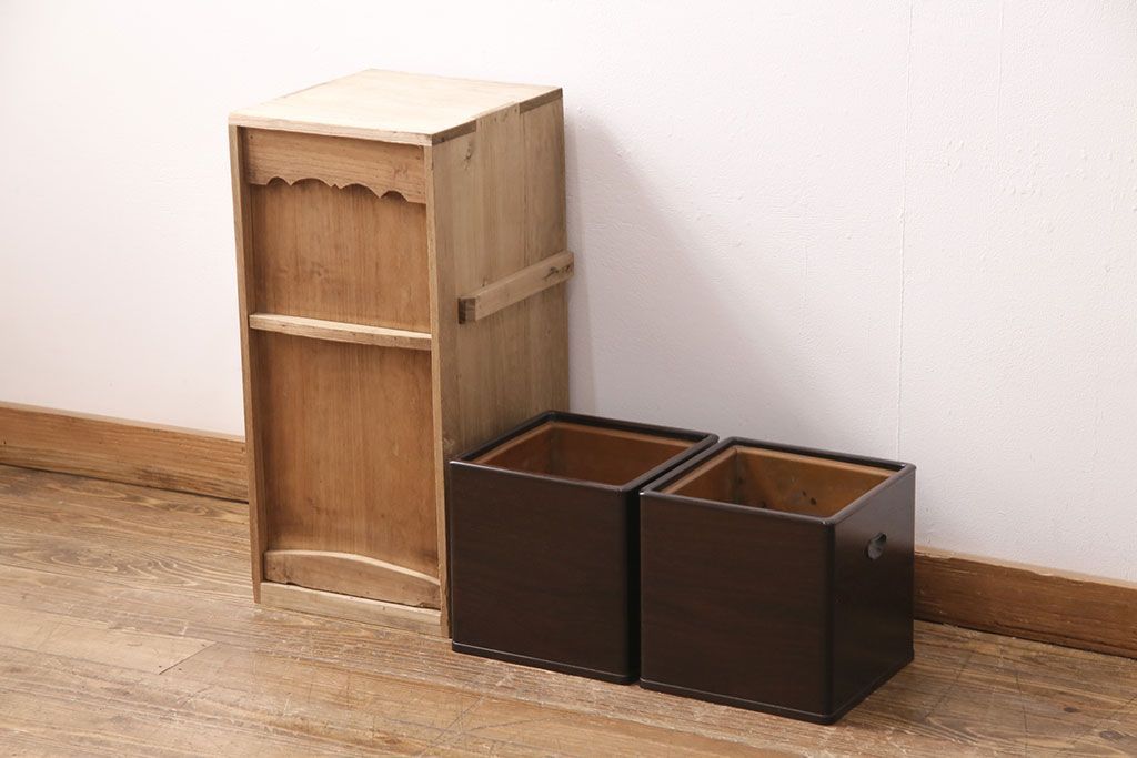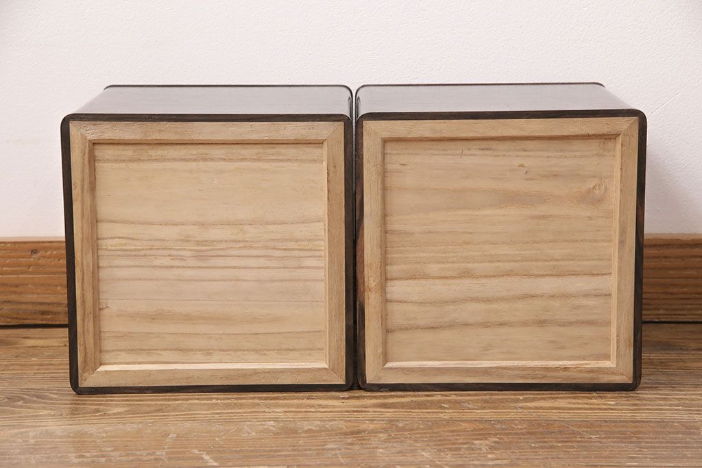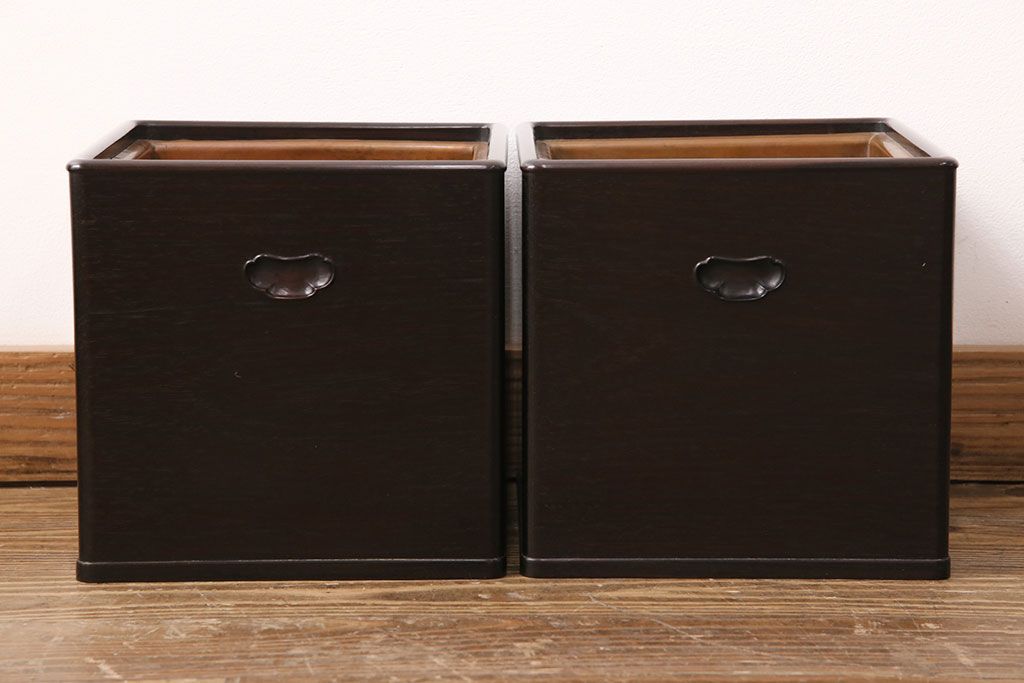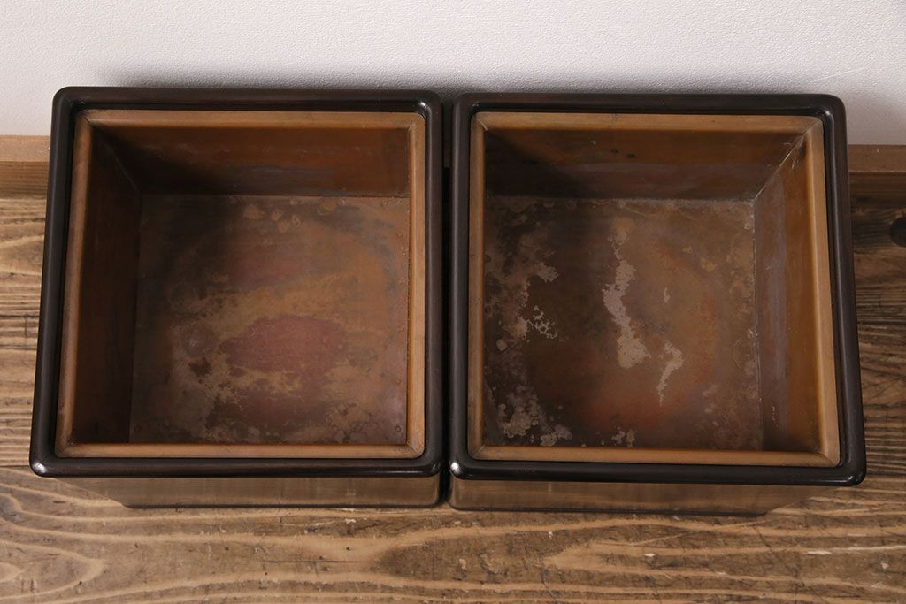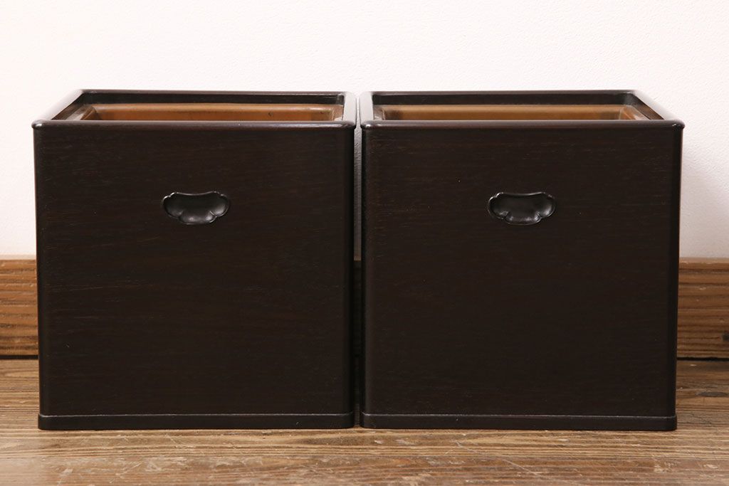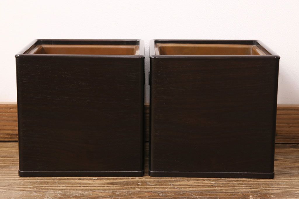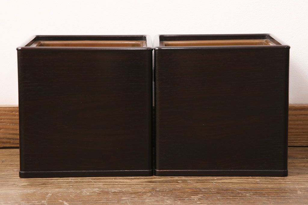 火鉢> 木製火鉢 > 和製アンティーク 指物工芸品 美品 外箱付き!紫檀(シタン)材の深みを帯びた色合いが美しい角火鉢2個セット(木製火鉢)(R-049386)