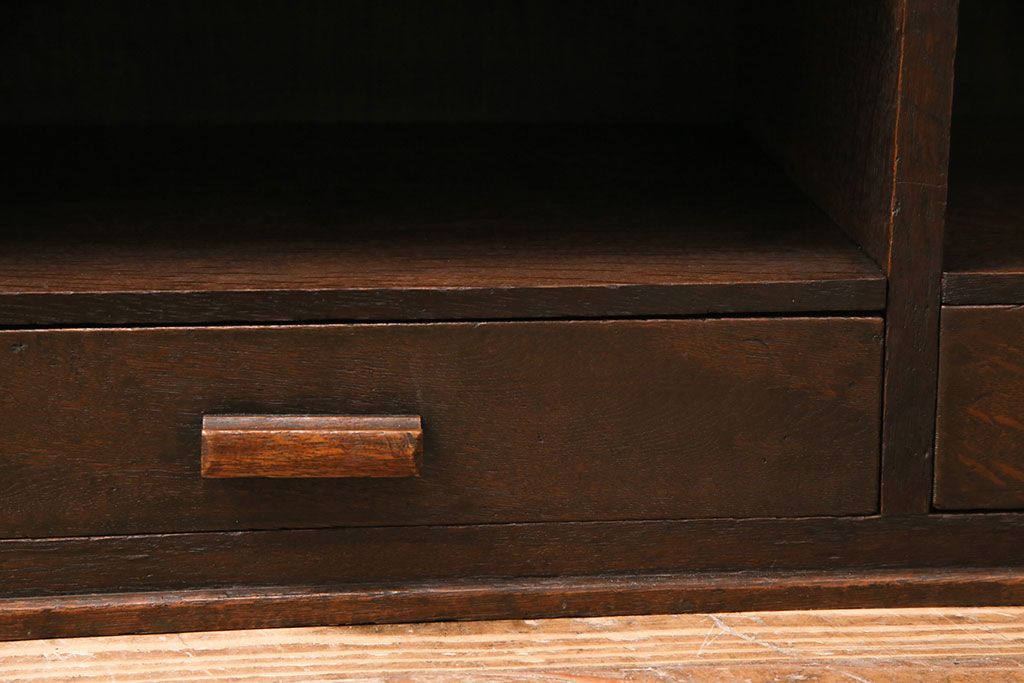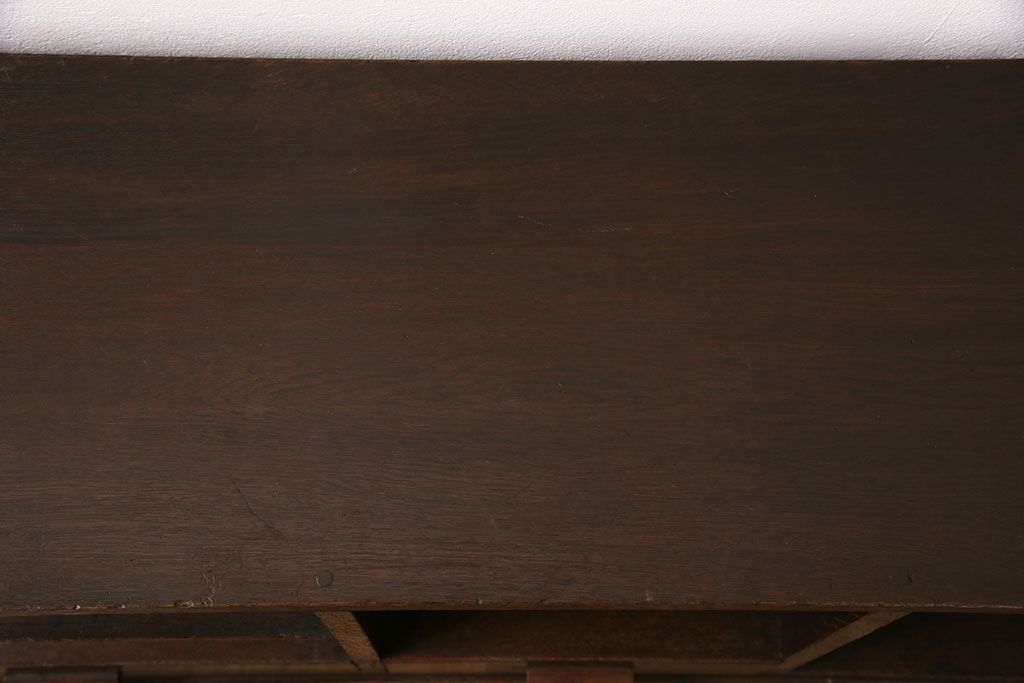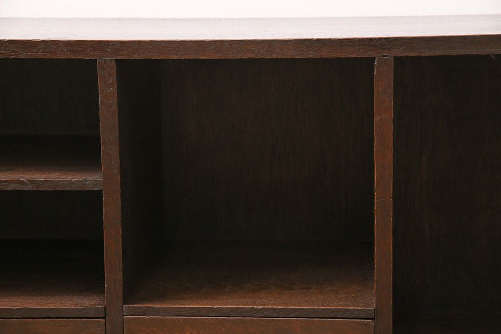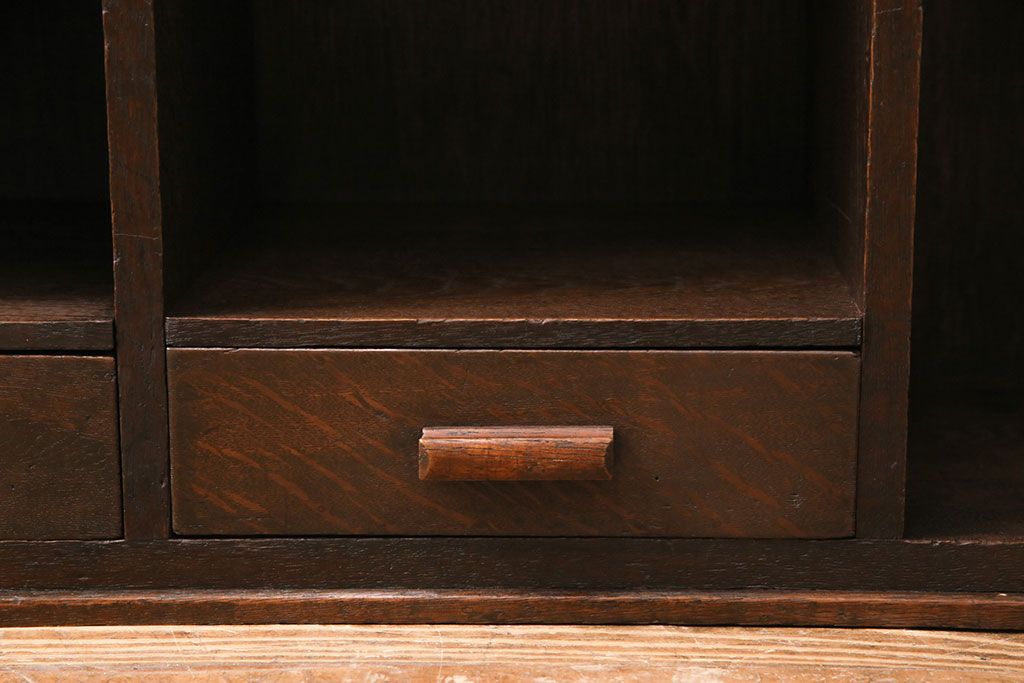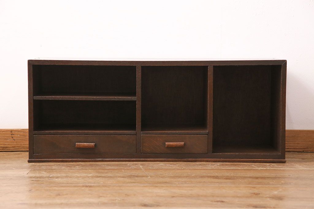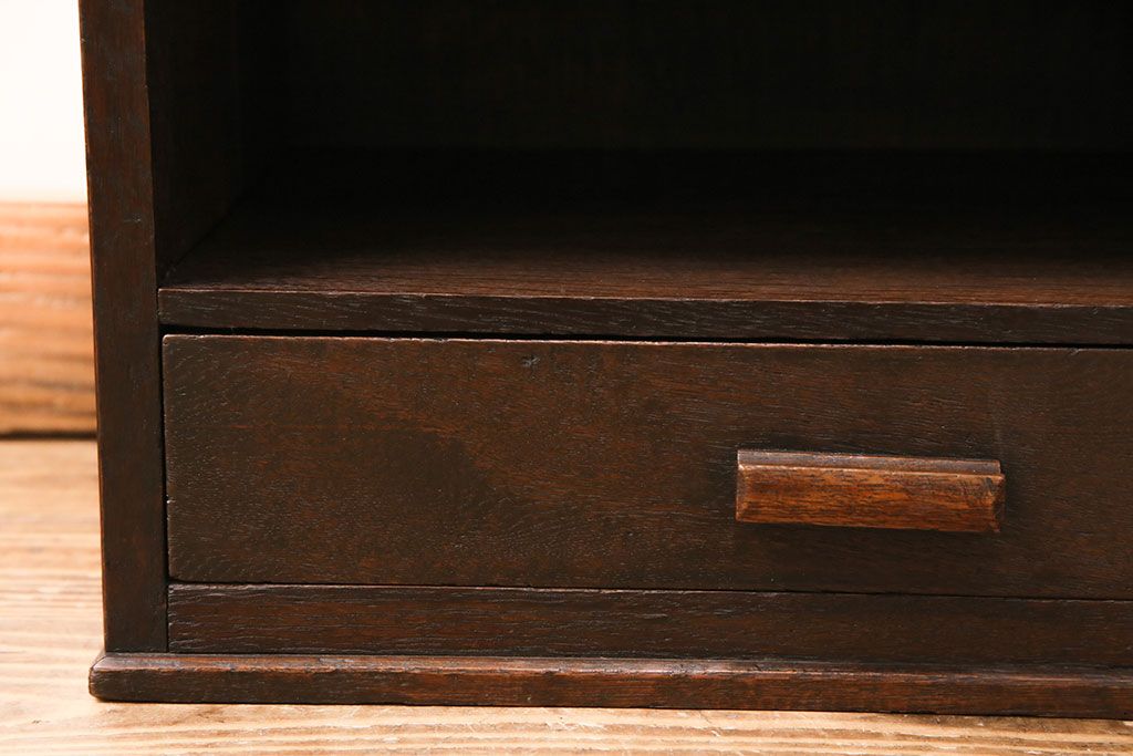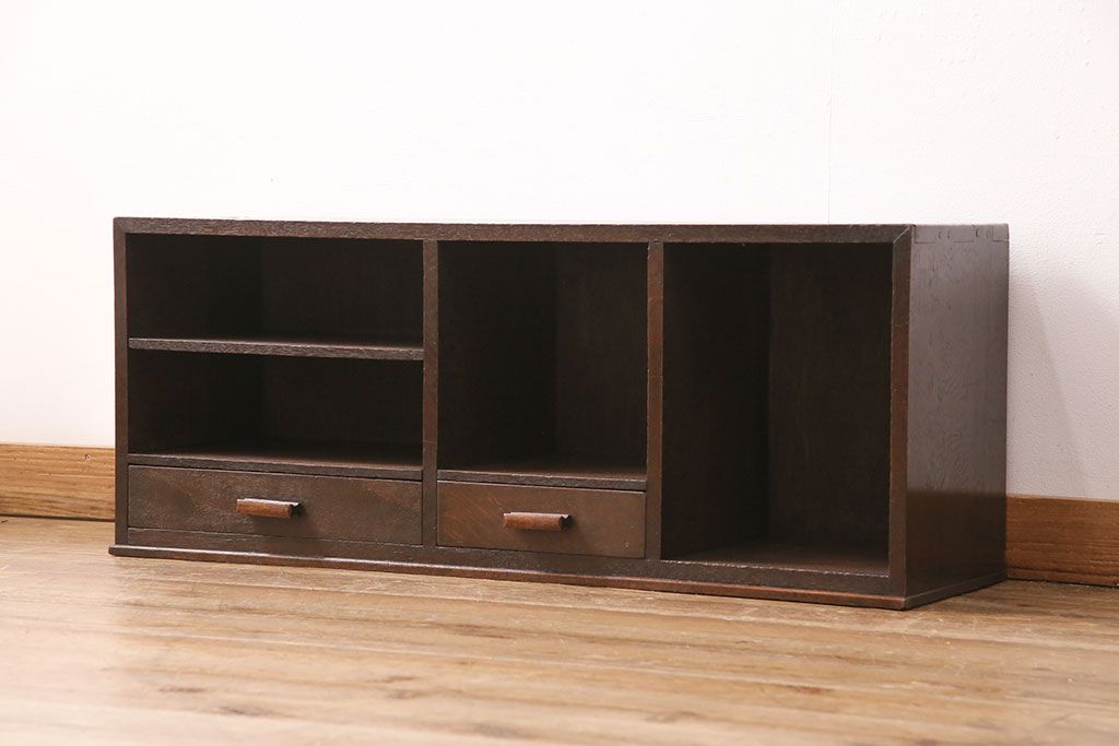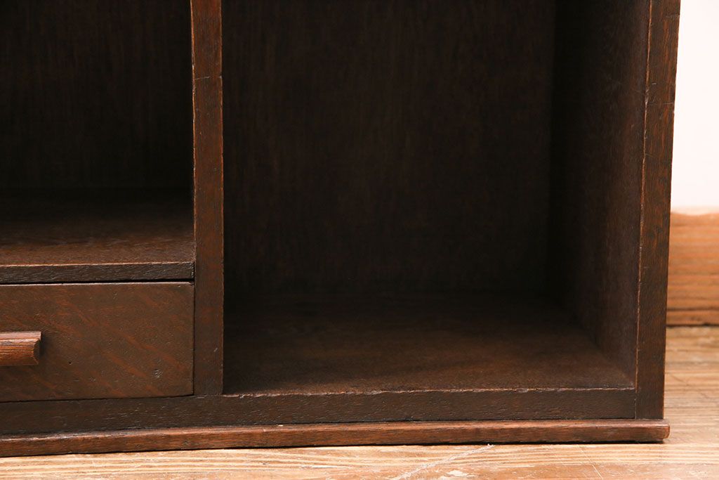 和製アンティーク 総ナラ材 デスクやカウンターの上にも置けるレトロな収納棚(卓上収納棚、本棚)(R-049380)