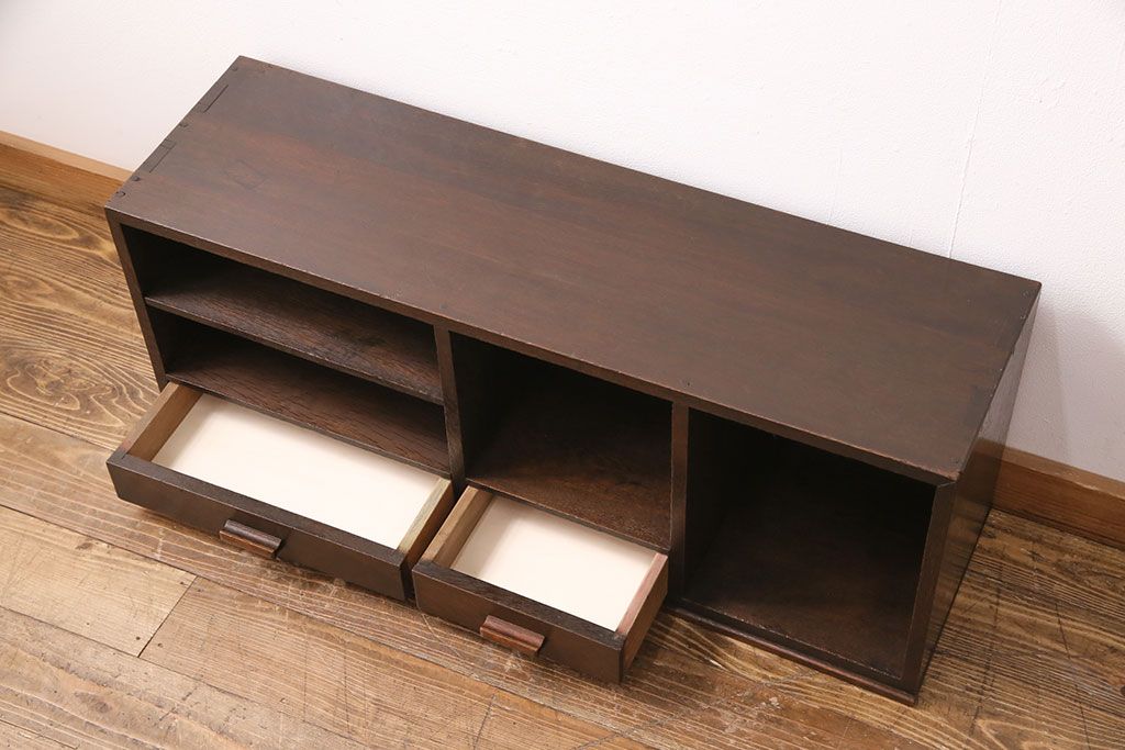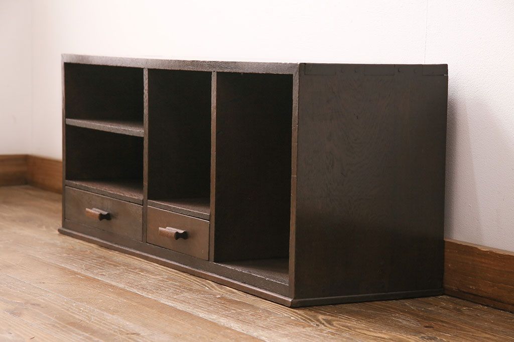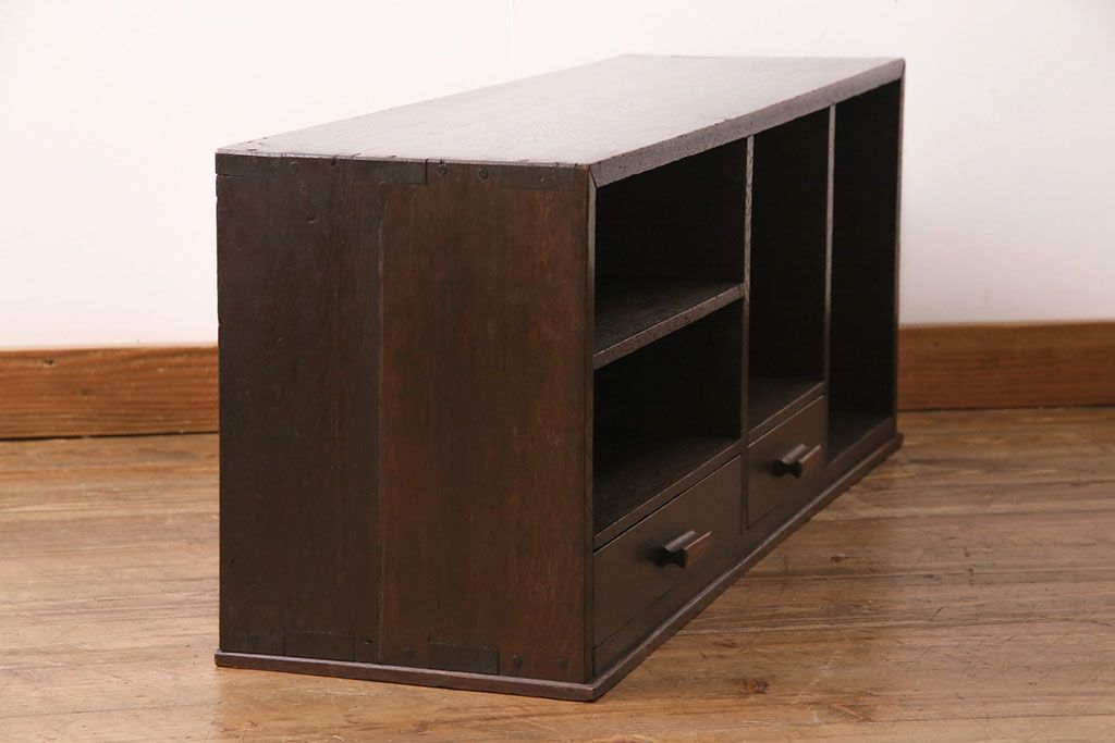 和製アンティーク 総ナラ材 デスクやカウンターの上にも置けるレトロな収納棚(卓上収納棚、本棚)(R-049380)です。