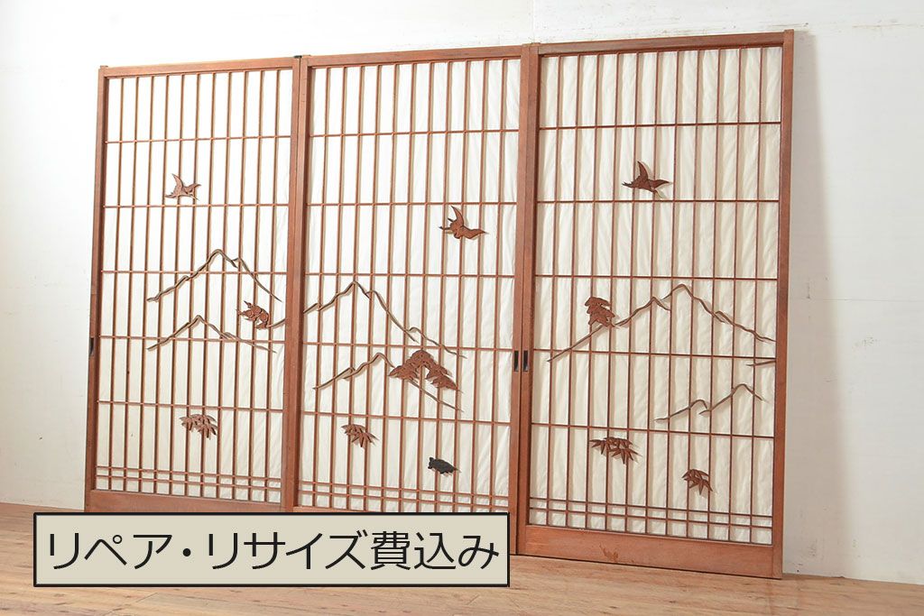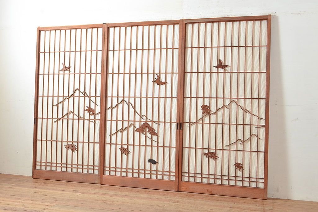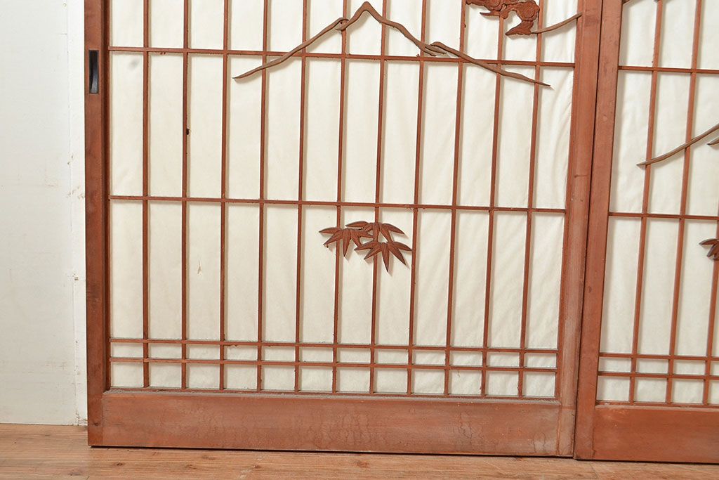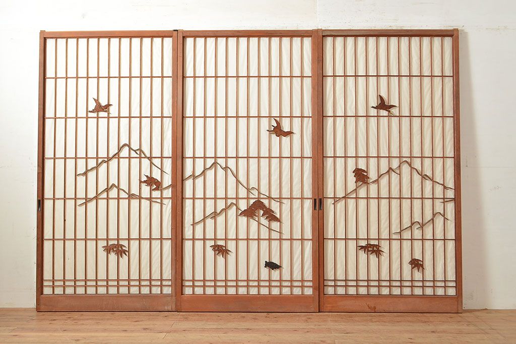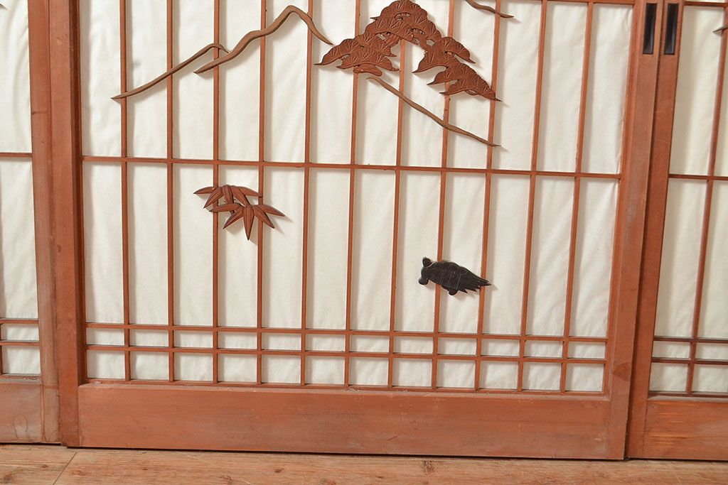 アンティーク建具 鶴亀・松竹梅 縁起のいい細工が魅力の障子戸3枚セット(建具、引き戸)(R-049157)です。