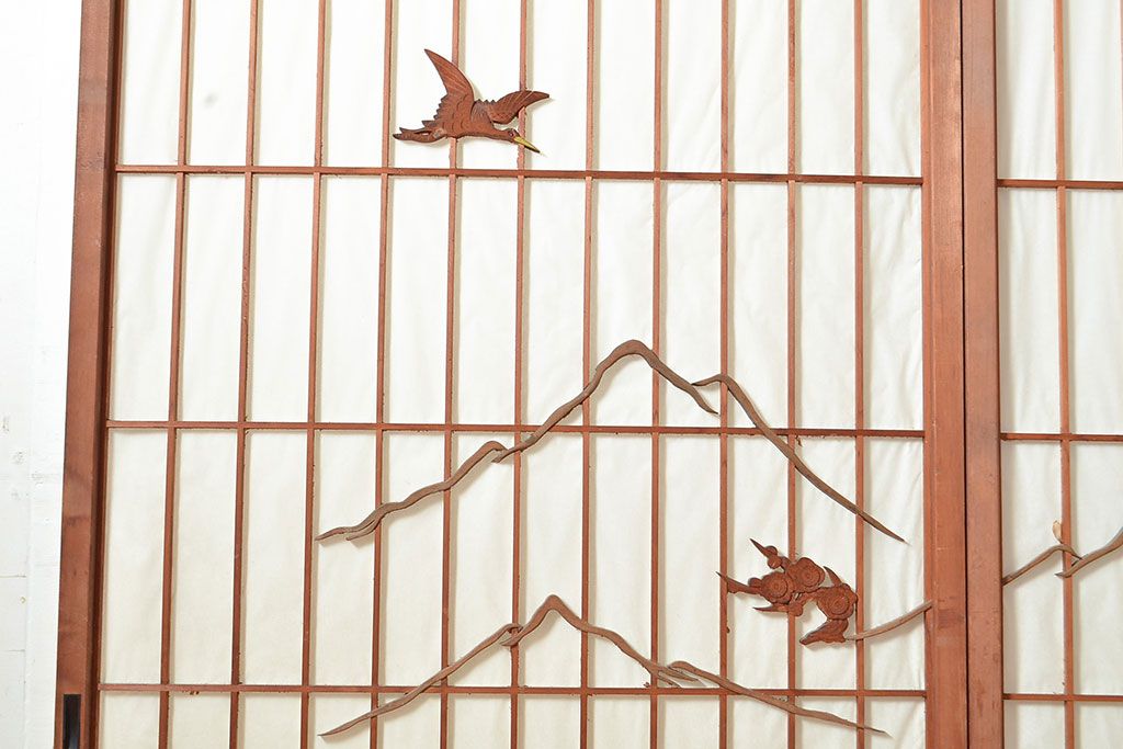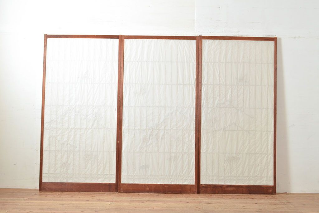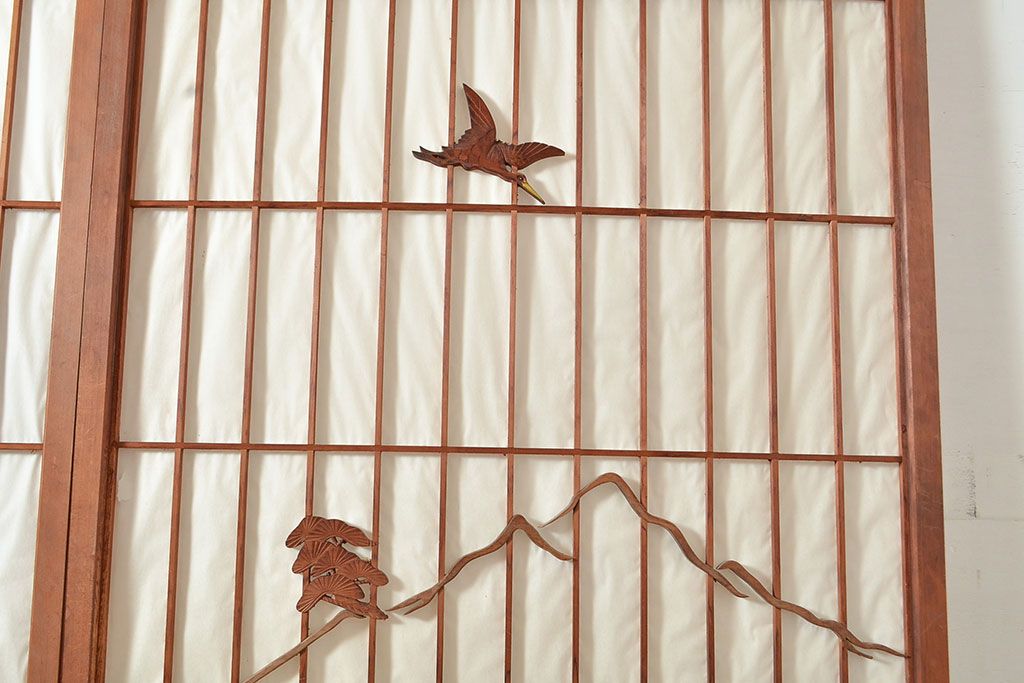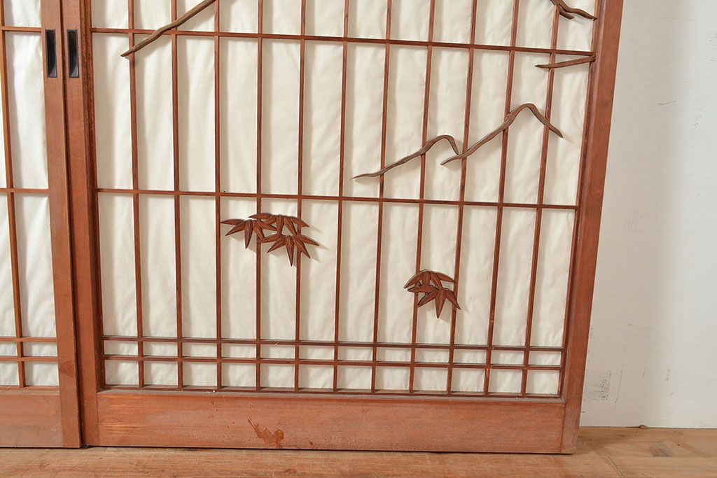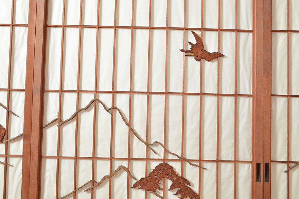 アンティーク建具 鶴亀・松竹梅 縁起のいい細工が魅力の障子戸3枚セット(建具、引き戸)(R-049157)です。