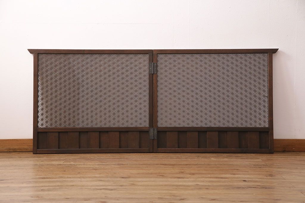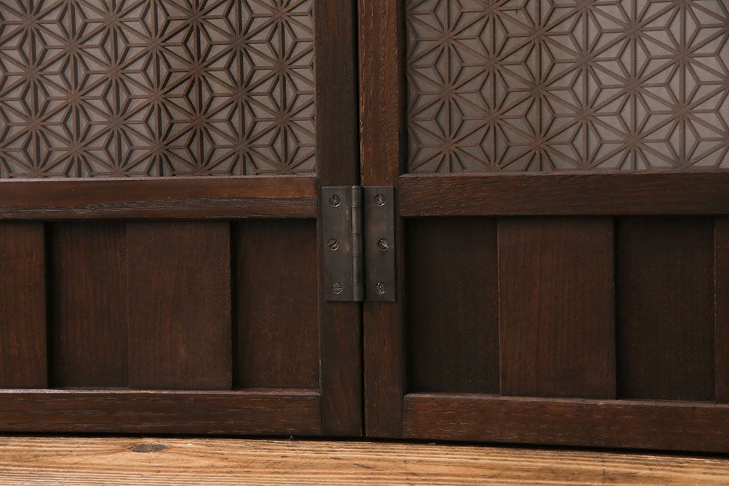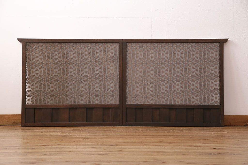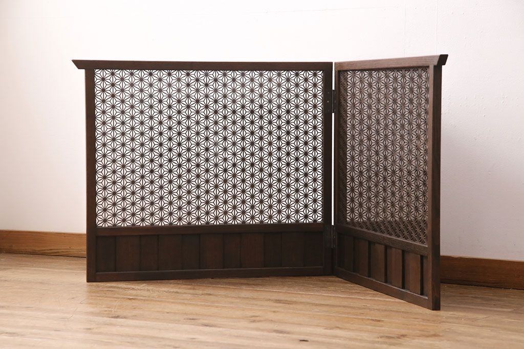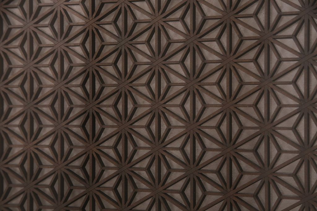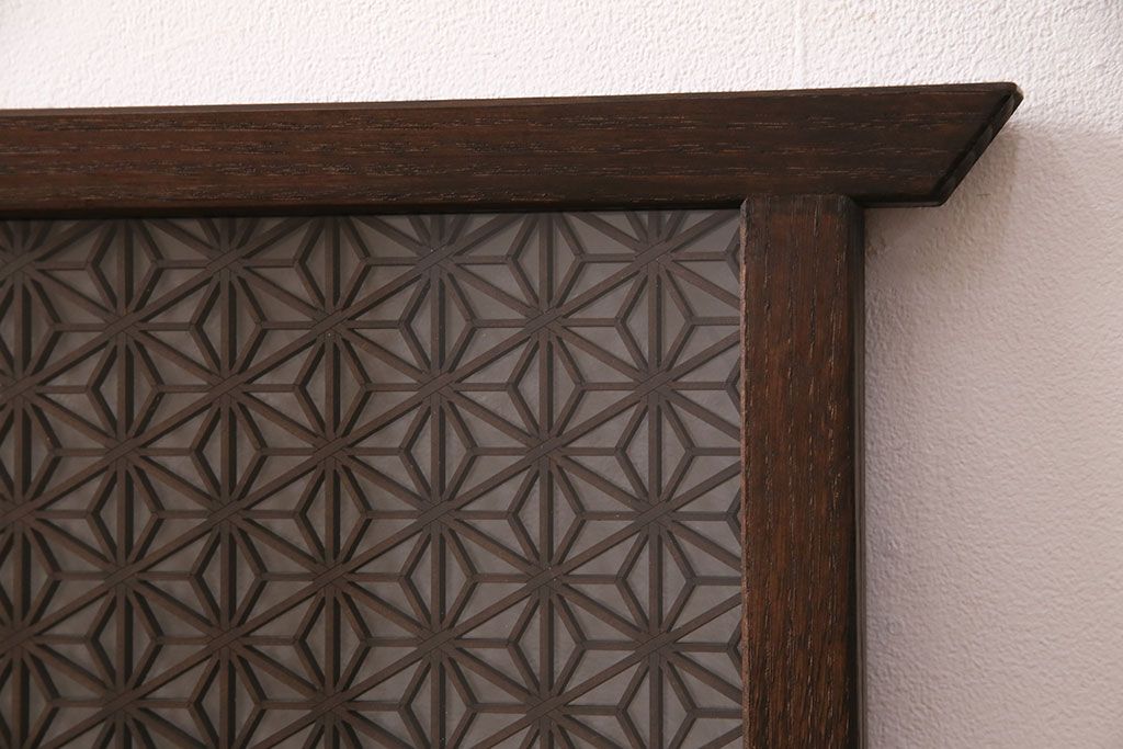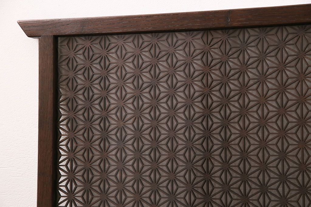 フルオーダー家具実績 > 麻の葉模様のレーザー組子入り衝立を新規製作!両面にクリアガラスを組み入れ。濃い茶色で着色し仕上げ。(パーテーション、つい立て)