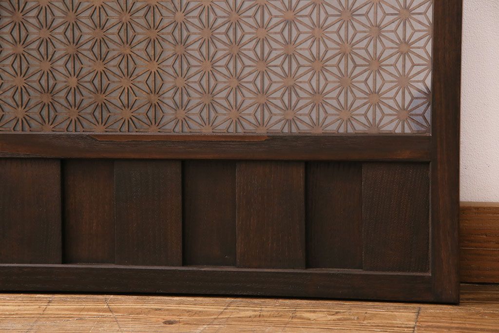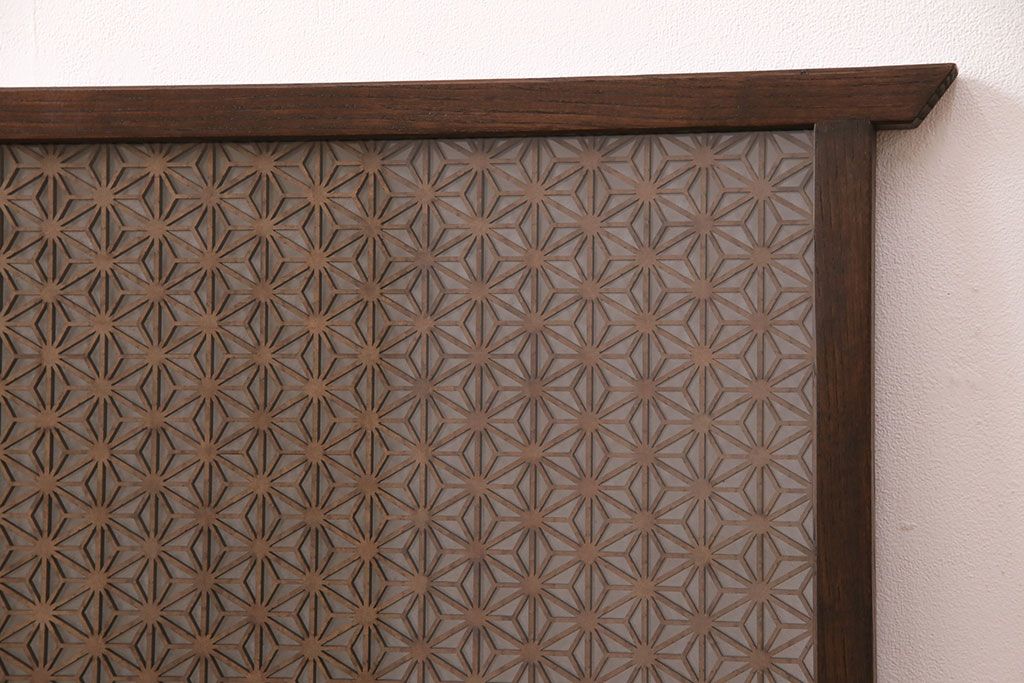 衝立・パーテーション > 麻の葉模様のレーザー組子入り衝立を新規製作!両面にクリアガラスを組み入れ。濃い茶色で着色し仕上げ。(パーテーション、つい立て)
