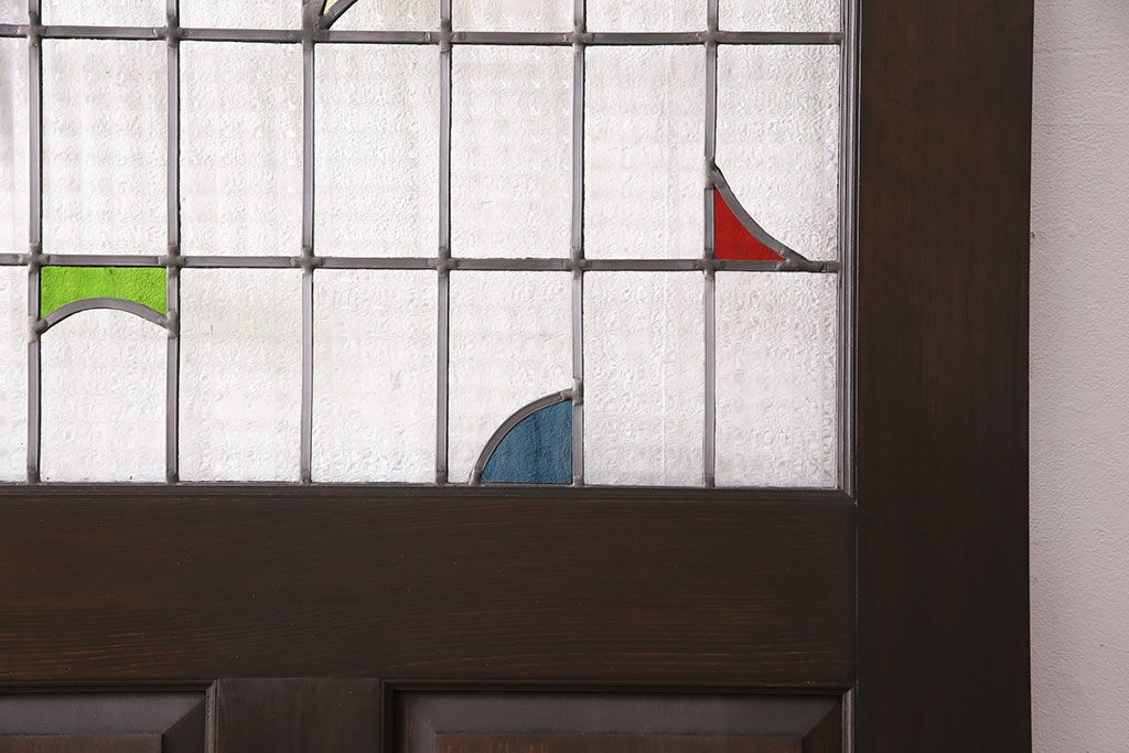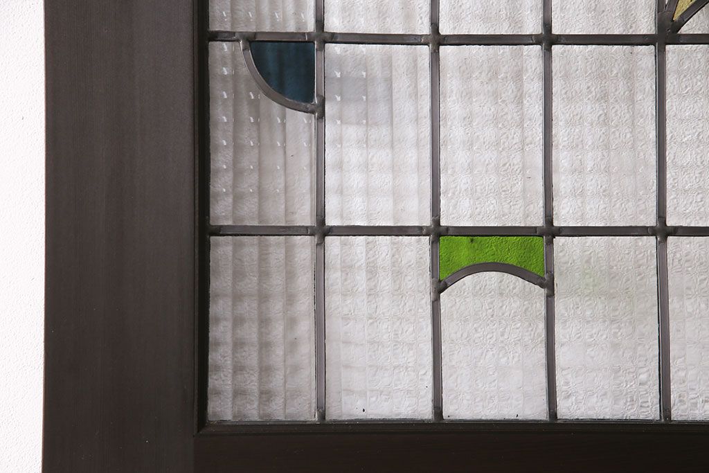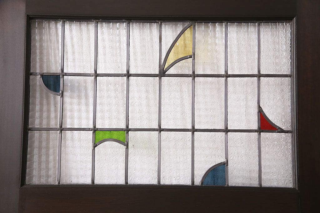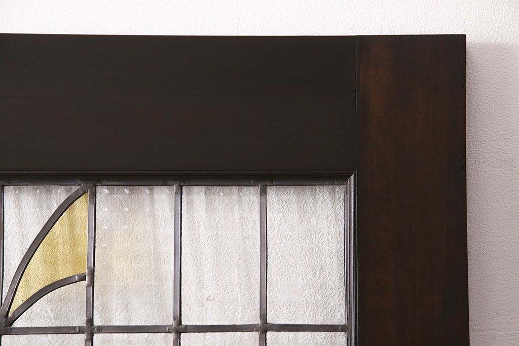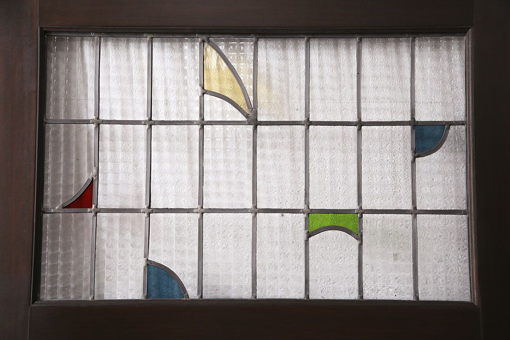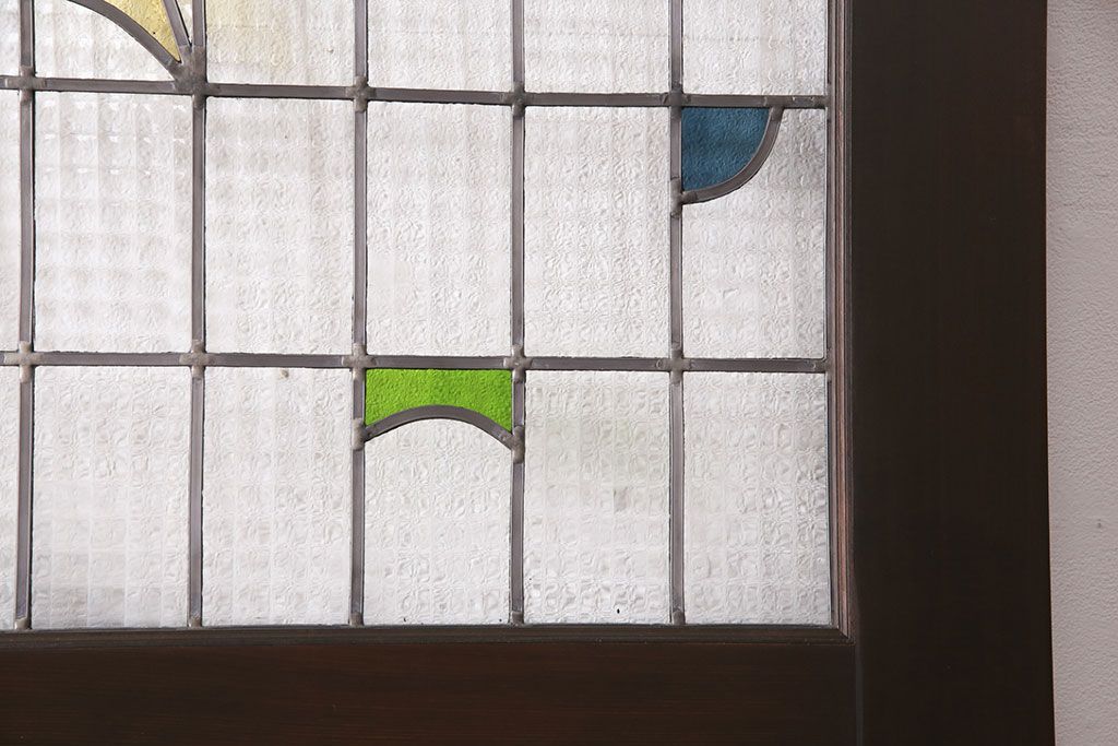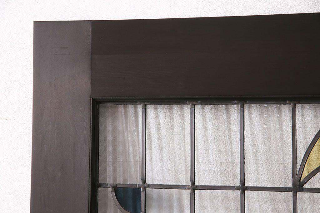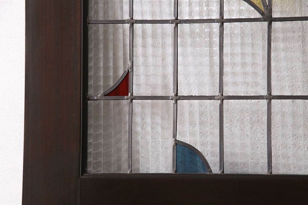 ステンドグラス > ステンドグラス入りの引き戸を新規製作!オリジナルデザインのステンドグラスを組み入れ。引き手を取り付け。木枠を新たに製作。濃い茶色で着色し仕上げ。(建具)
