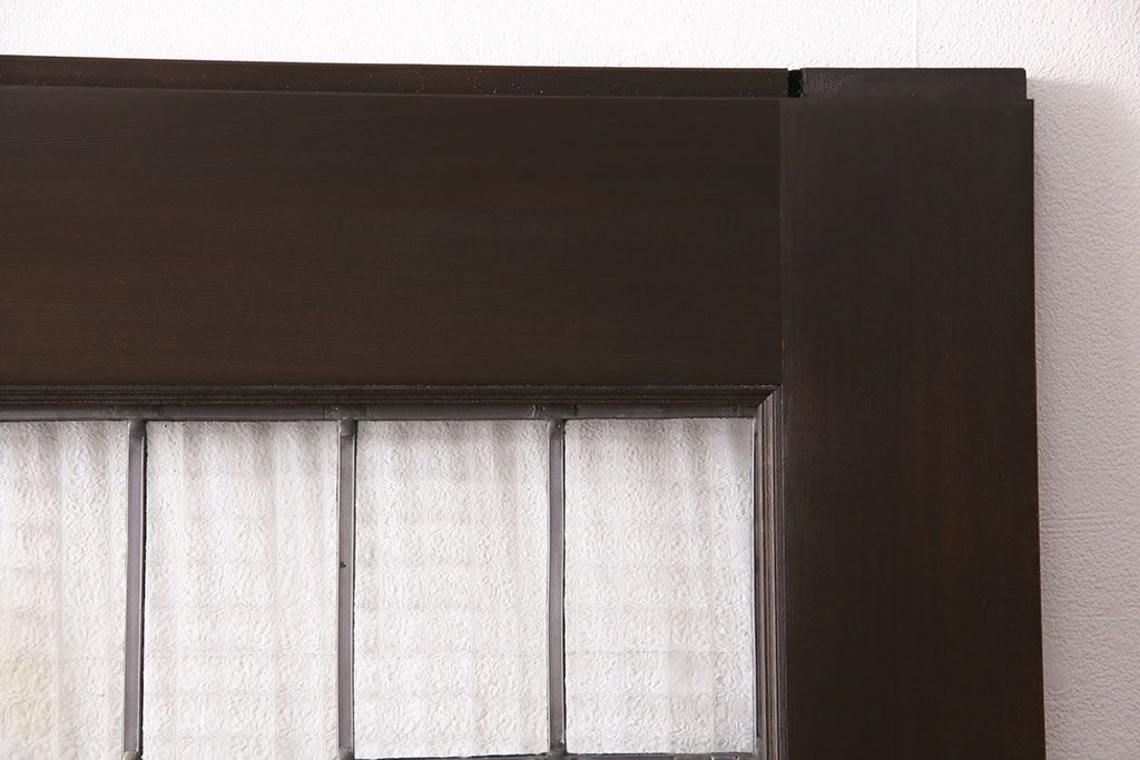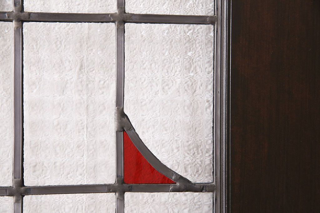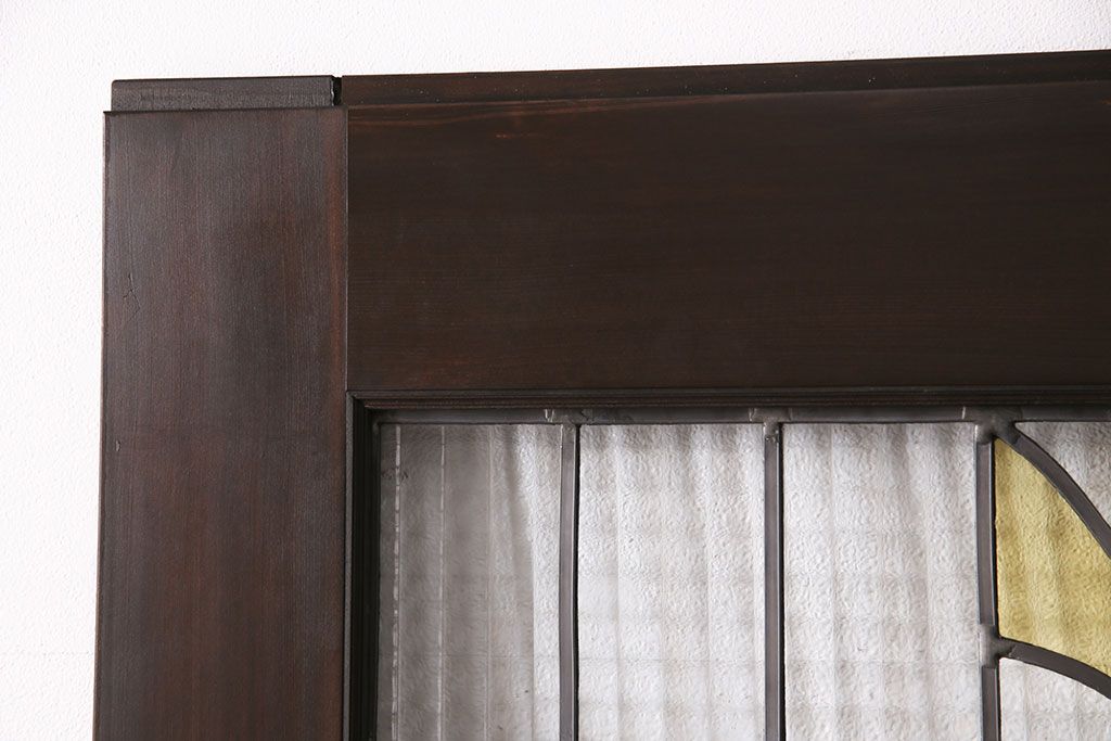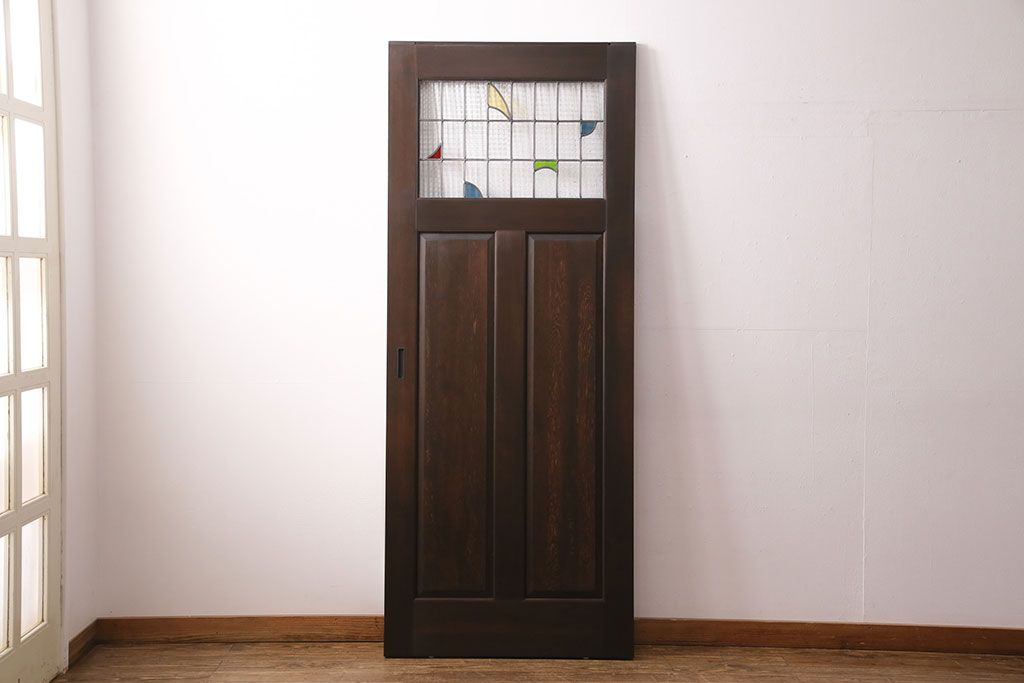 ステンドグラス入りの引き戸を新規製作!オリジナルデザインのステンドグラスを組み入れ。引き手を取り付け。木枠を新たに製作。濃い茶色で着色し仕上げ。(建具)
