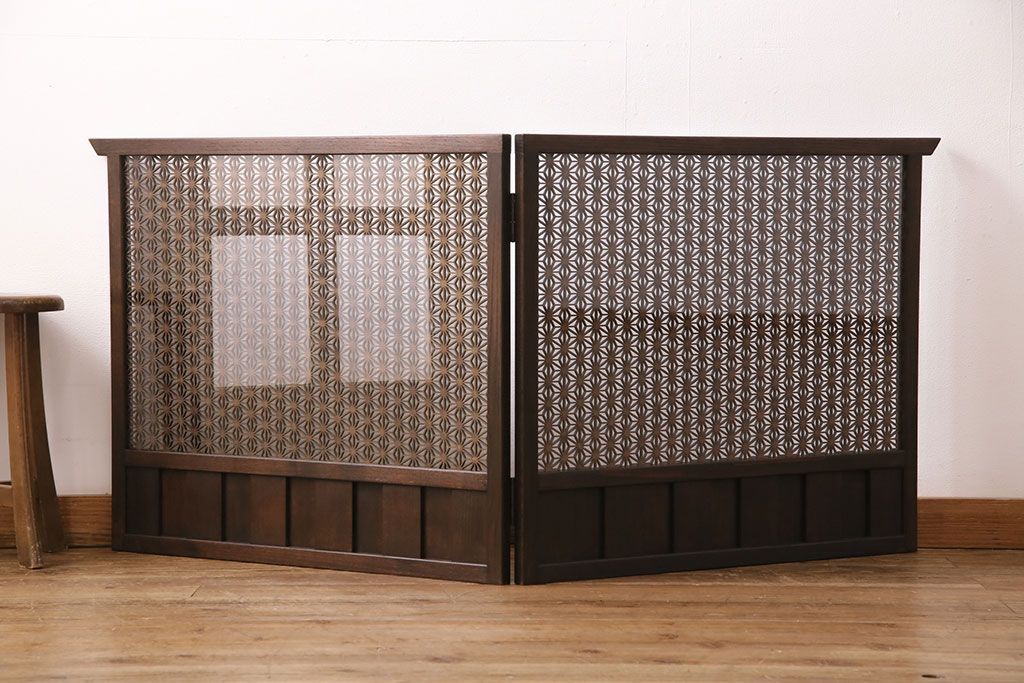 ラフジュ工房オリジナル 両面ガラス 麻の葉紋様の組子が上品な印象を高める衝立(つい立て、仕切り、パーテーション)(R-049150)