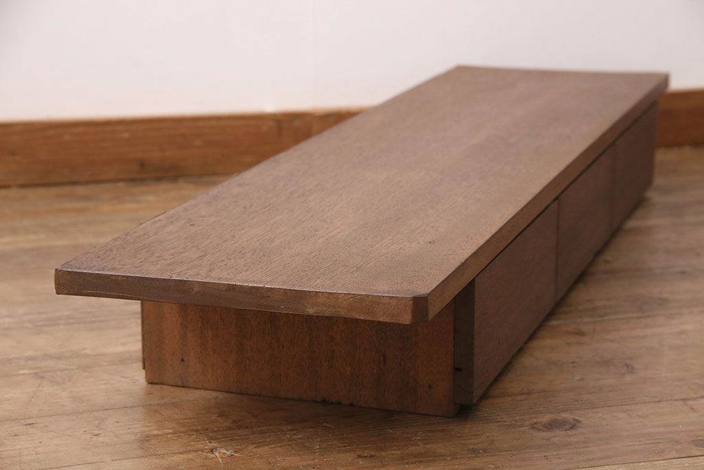 和製アンティーク 天板一枚板! 素朴な佇まいが味わい深いローボード(テレビ台、裁ち板、飾り台、置き床、棚)(R-049407)