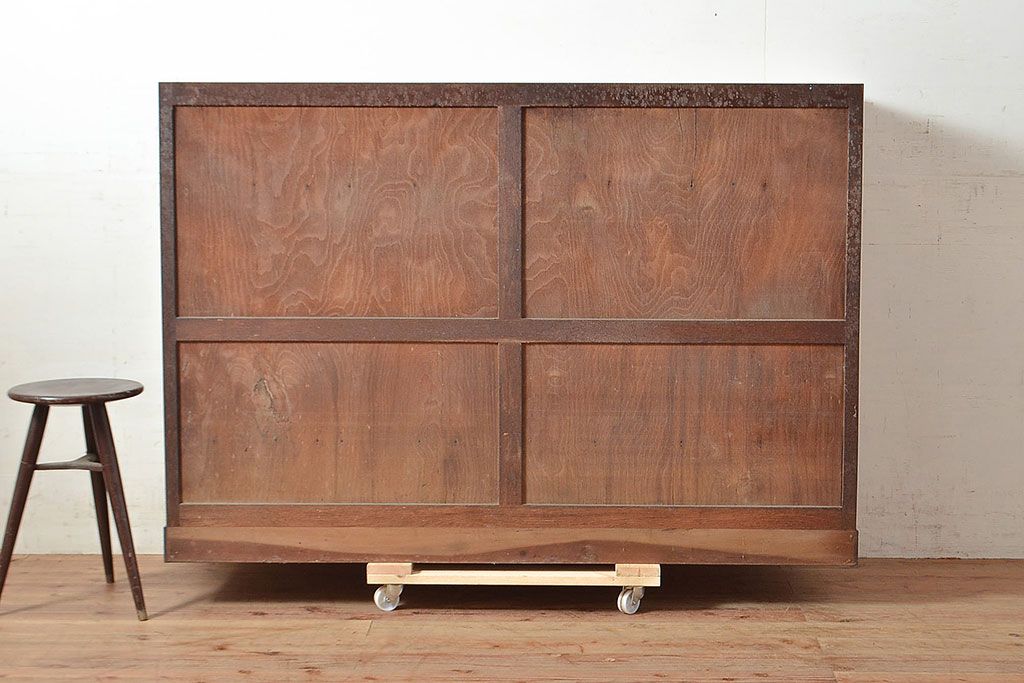 ラフジュ工房> キャビネット・戸棚> 食器棚・カップボード > 和製アンティーク ナラ材 模様ガラスがポイント!便利な作業台が付いたレトロな食器棚(収納棚、サイドボード、キャビネット)(R-048954)