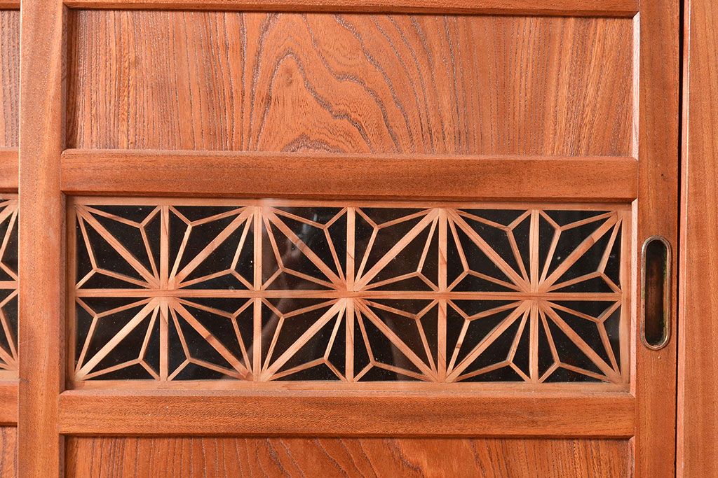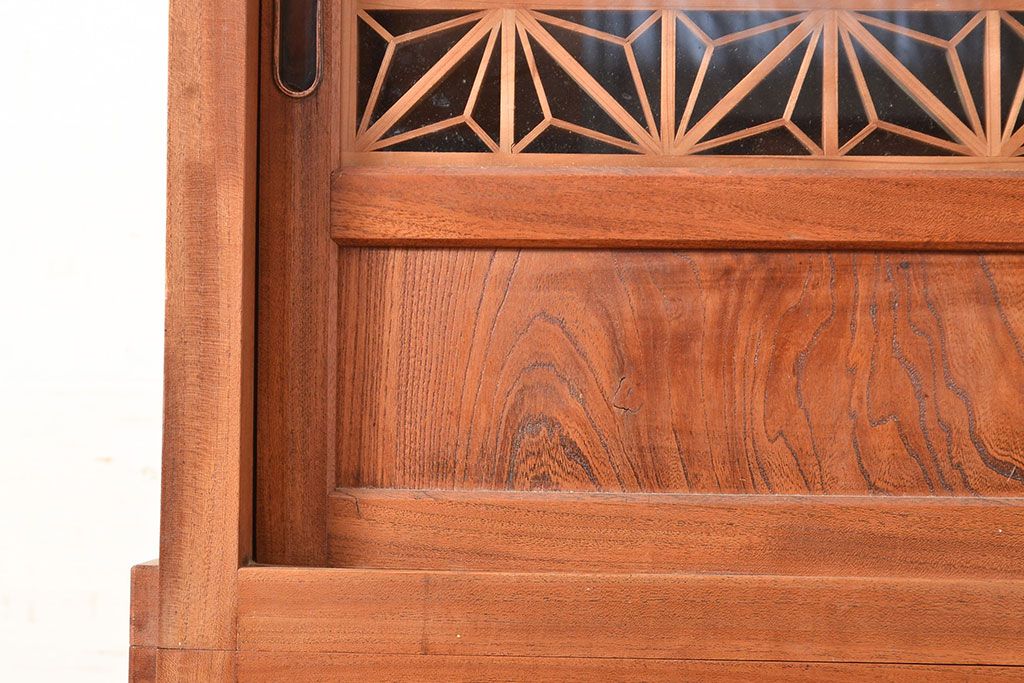 和箪笥> 水屋箪笥 > 和製アンティーク 前面ケヤキ材 麻の葉の組子がアクセントになった、和の趣きを感じさせる箪笥サイドボード(関東水屋箪笥、キャビネット、収納棚)(R-049151)
