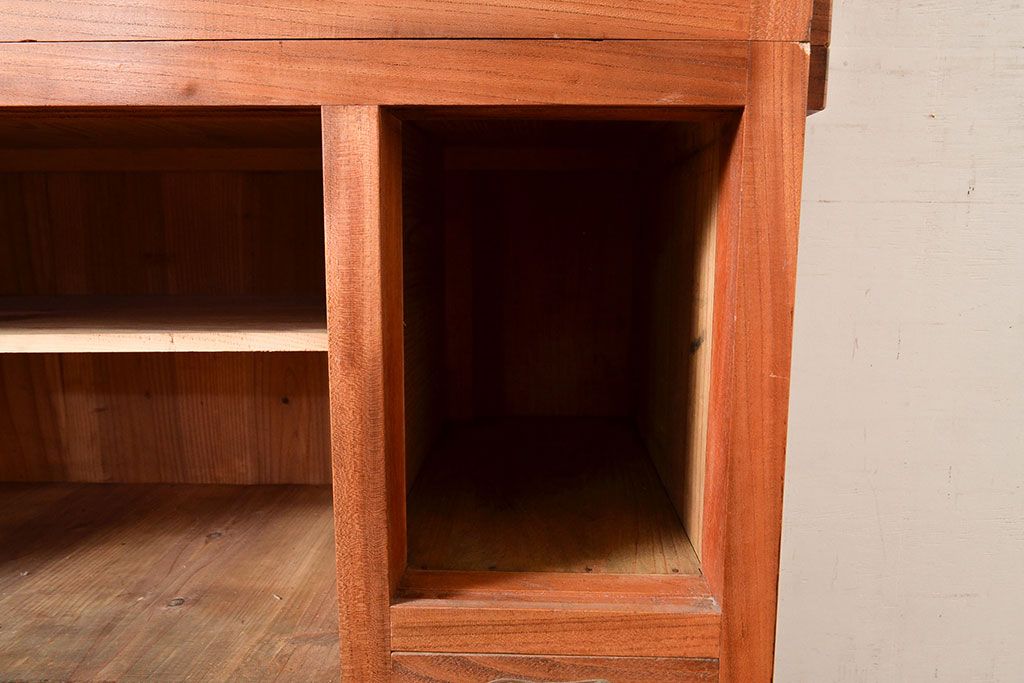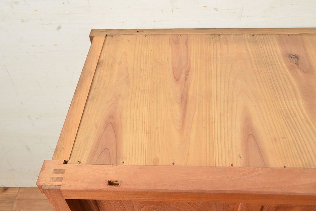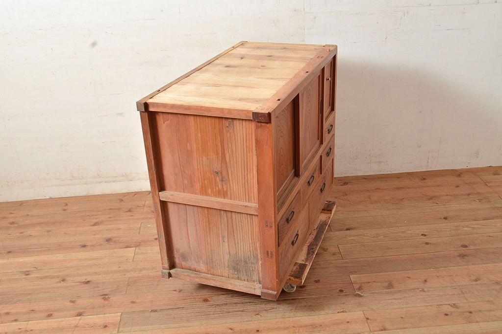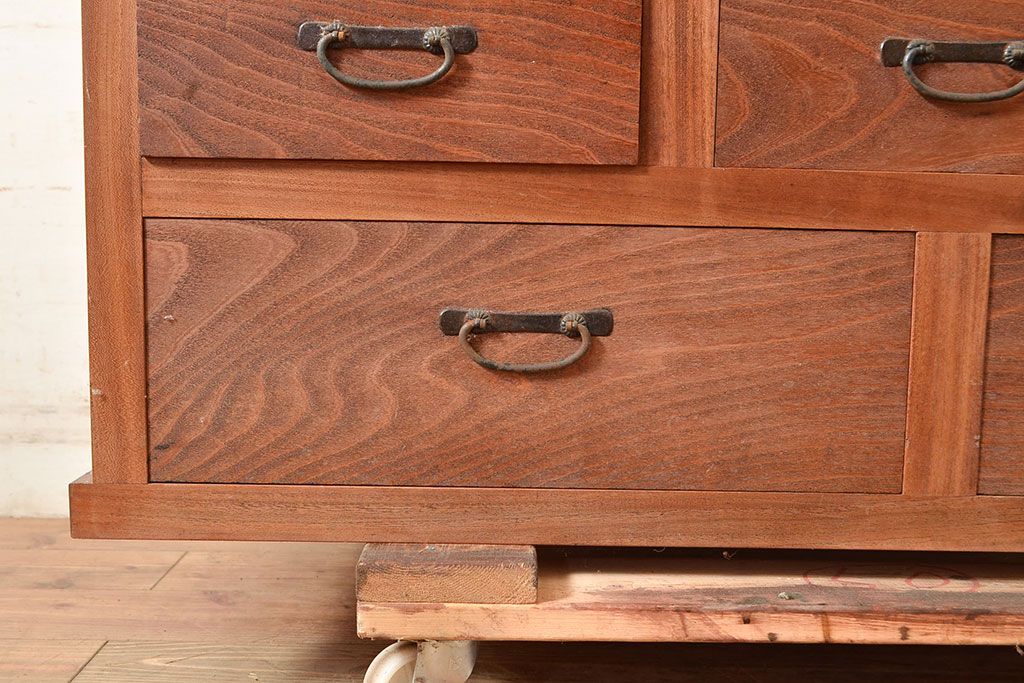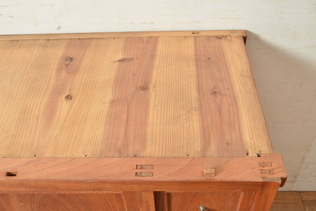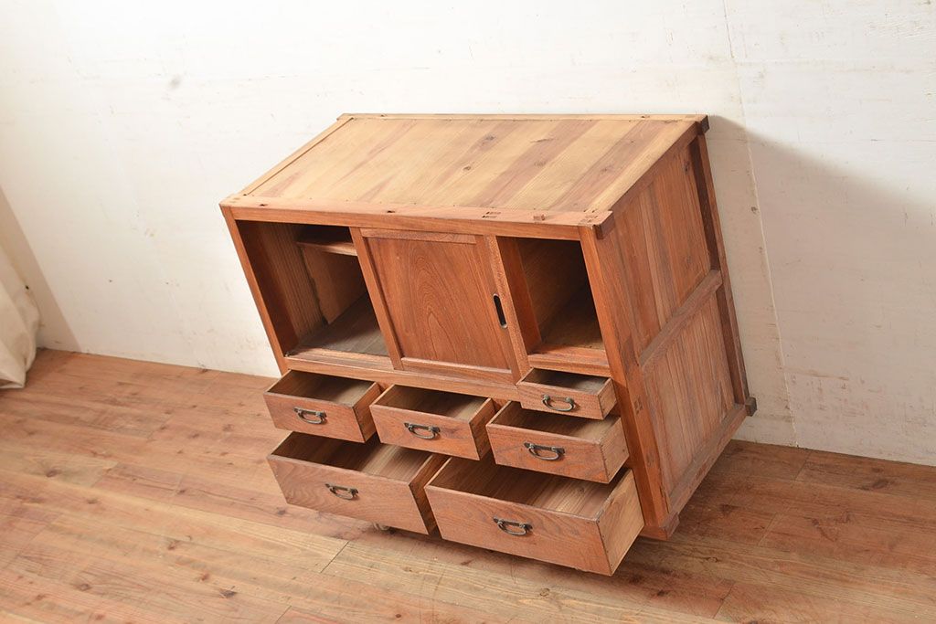 和製アンティーク 前面ケヤキ材 和の趣きを感じさせる、赤味がかった色合いが魅力の箪笥サイドボード(関東水屋箪笥、キャビネット、収納棚)(R-049152)